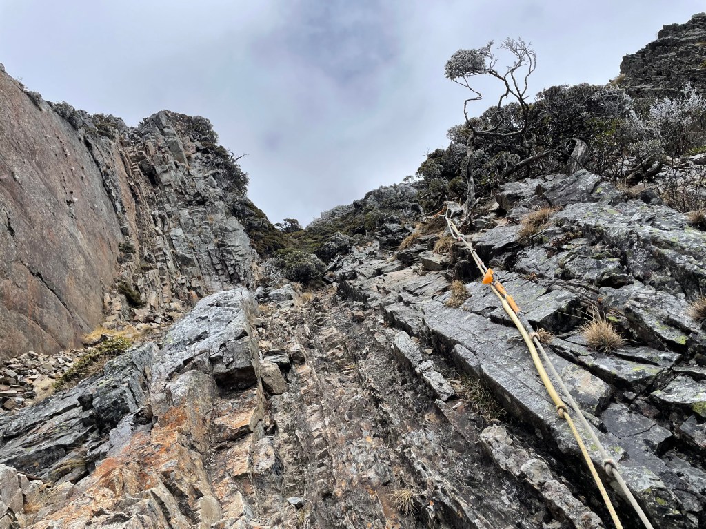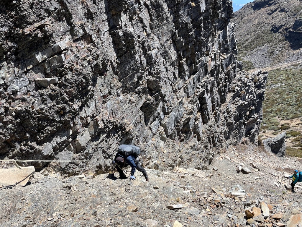 上圖:山壁橫渡,然而這已經是穆特勒布山四面唯一能走的一條路