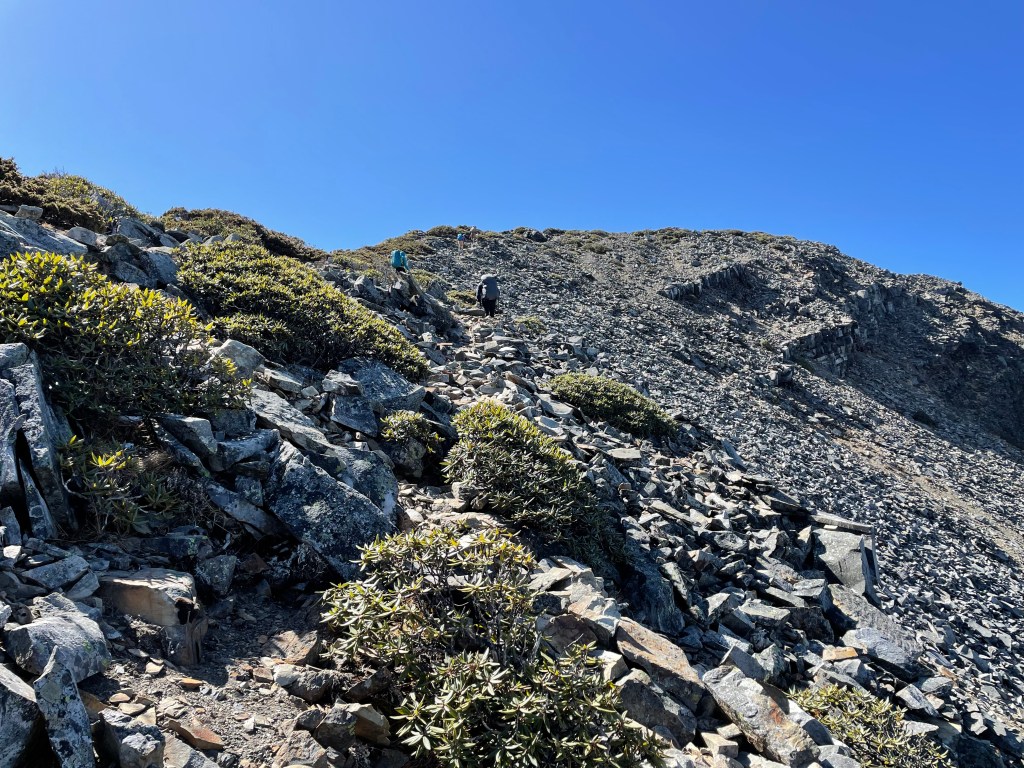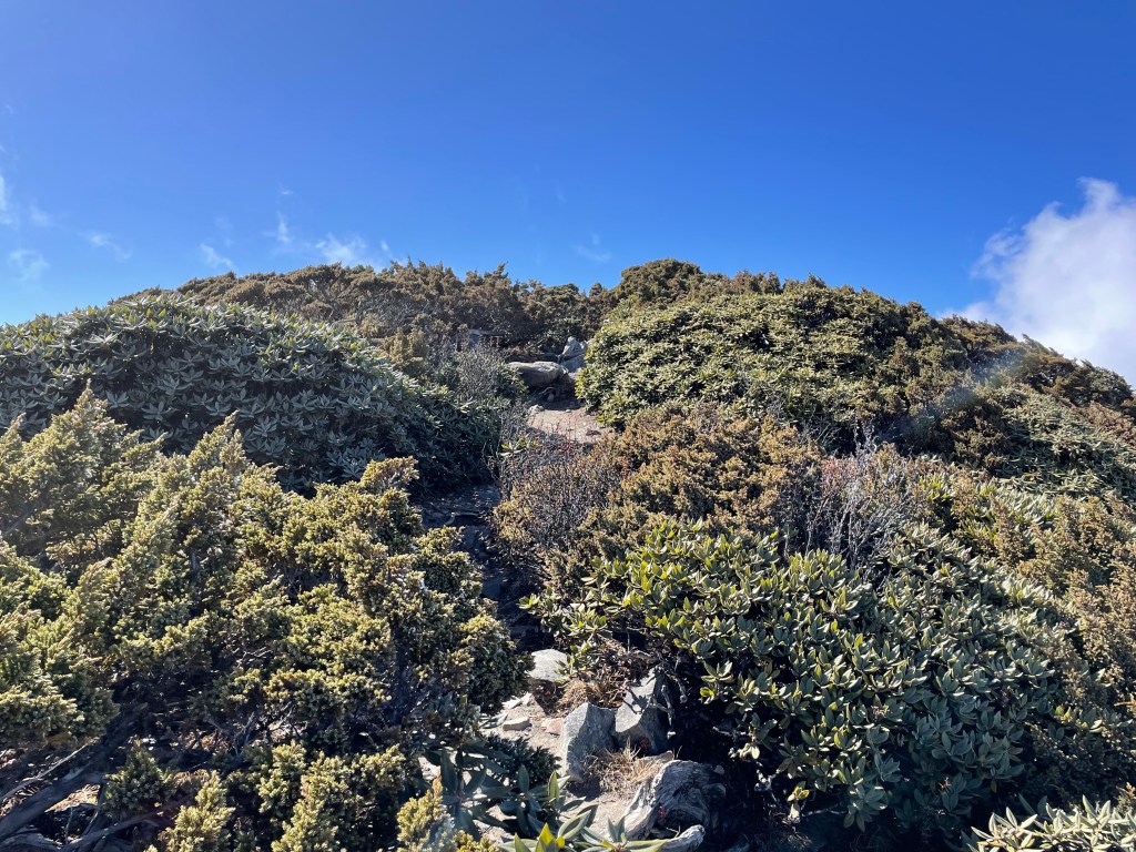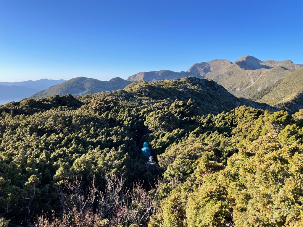 上圖:稜線路除了灌木叢偶爾會刮到外,路徑基本上都清楚且好走