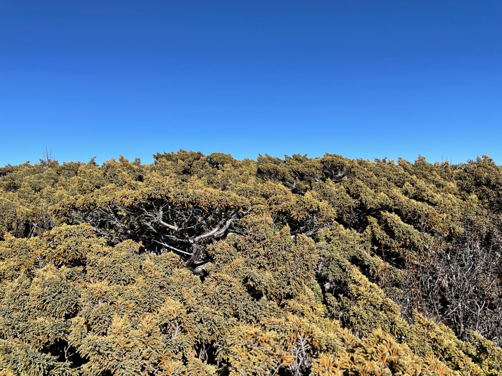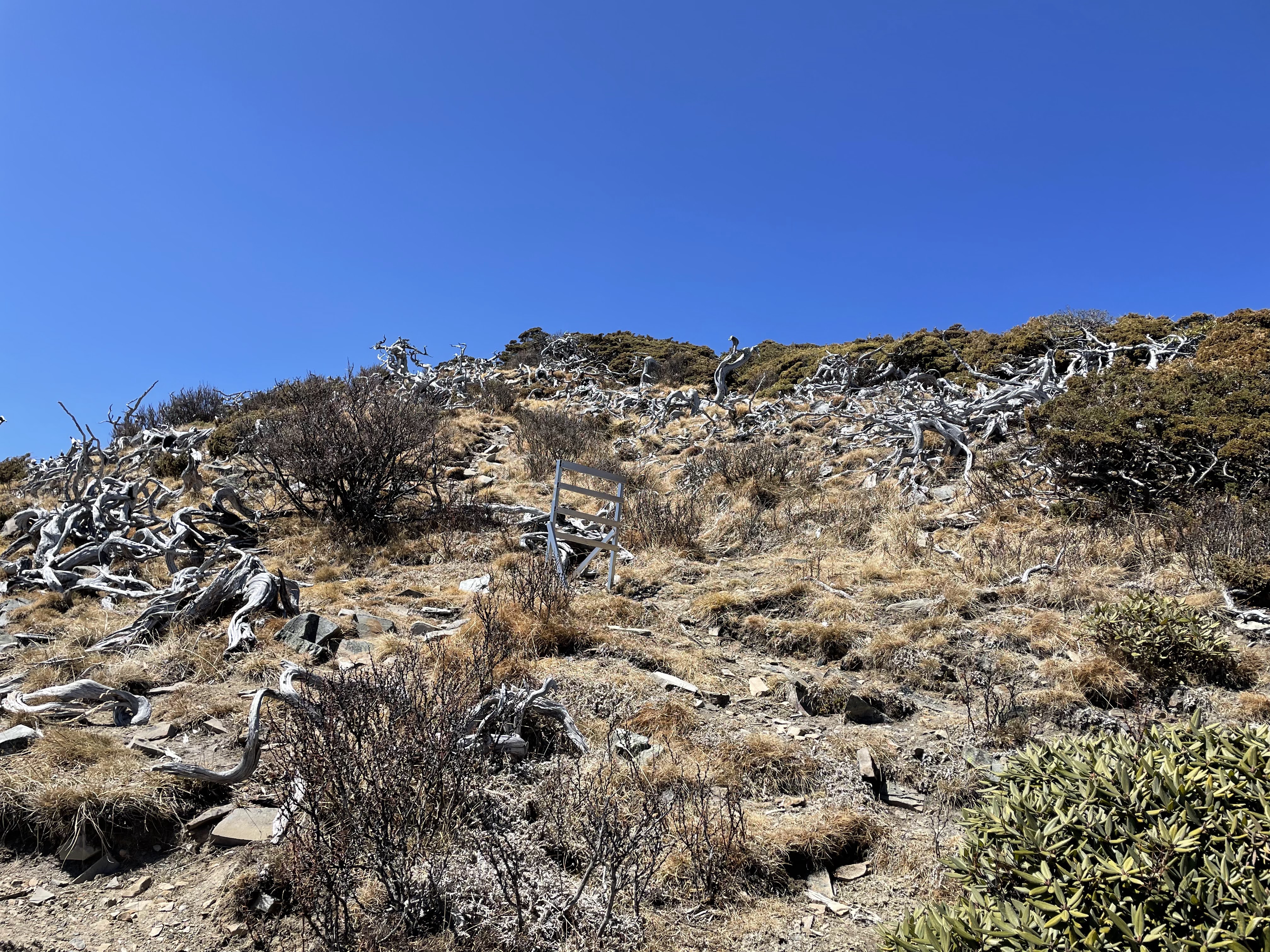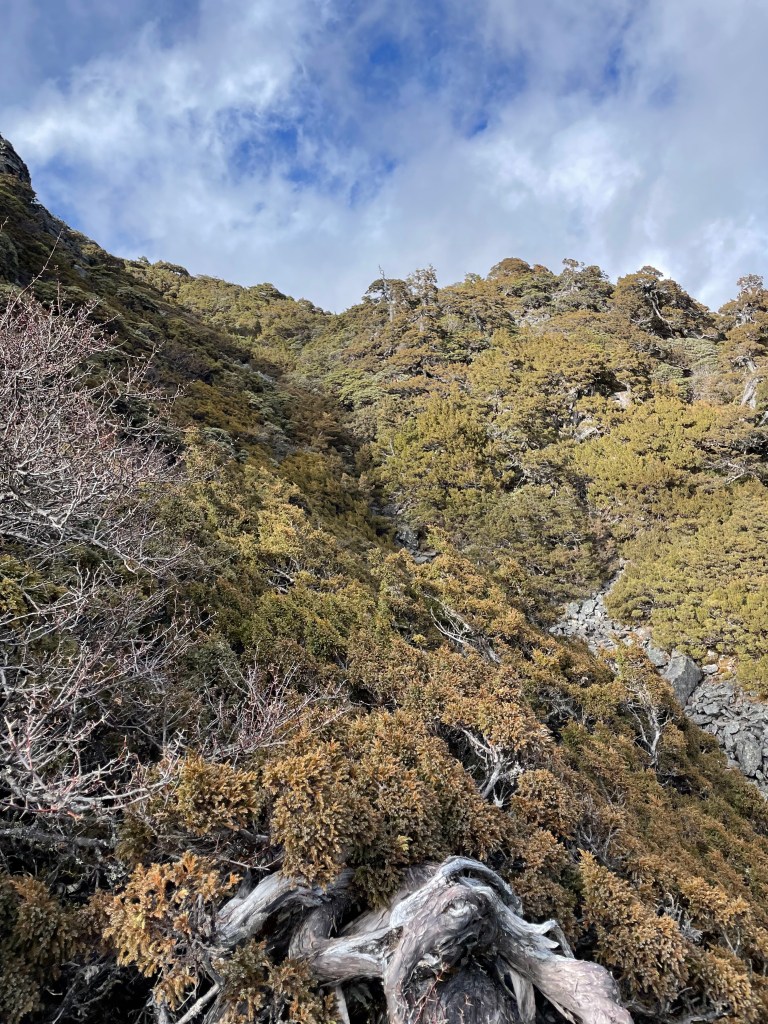 回望那些蜷曲死去的玉山圓柏,我想這裡便是黑洞吧!時間彷彿停止了流逝,右圖是我2020年第一次踏足雪山的景象