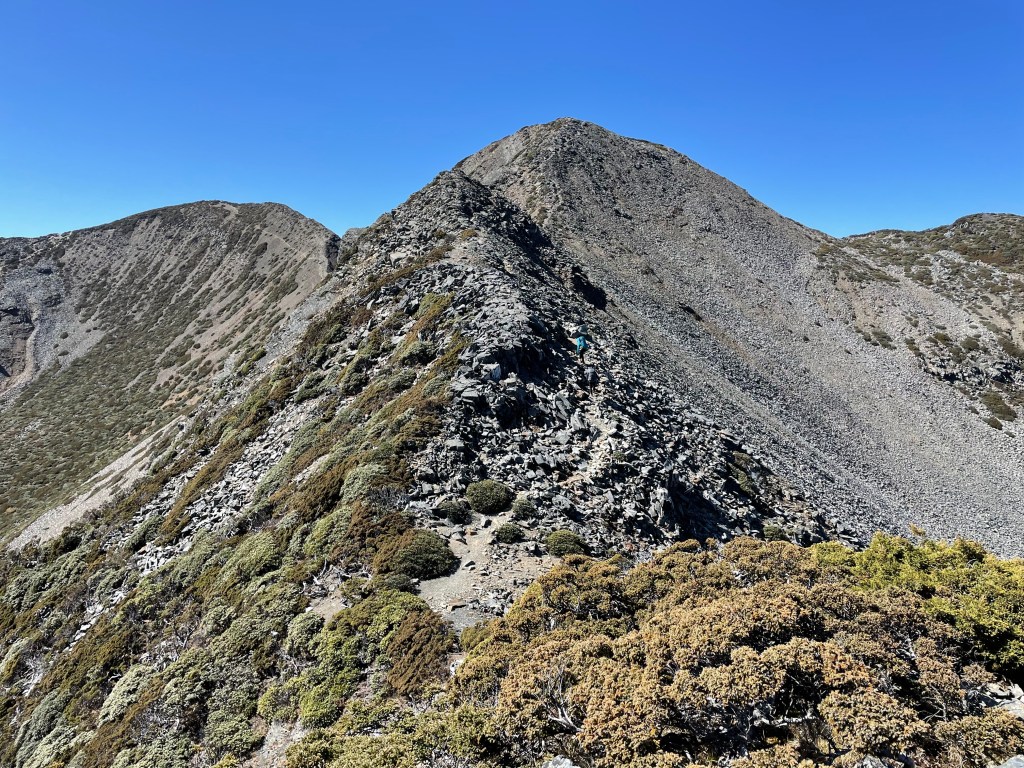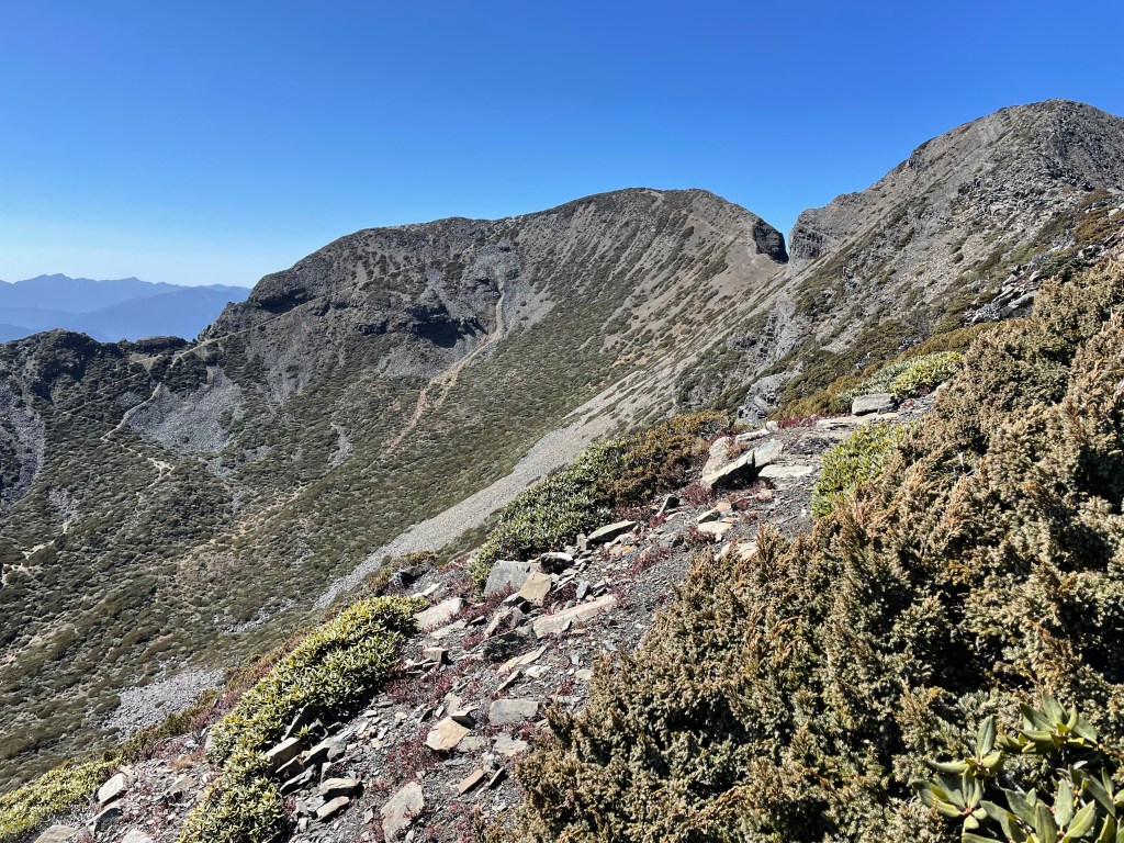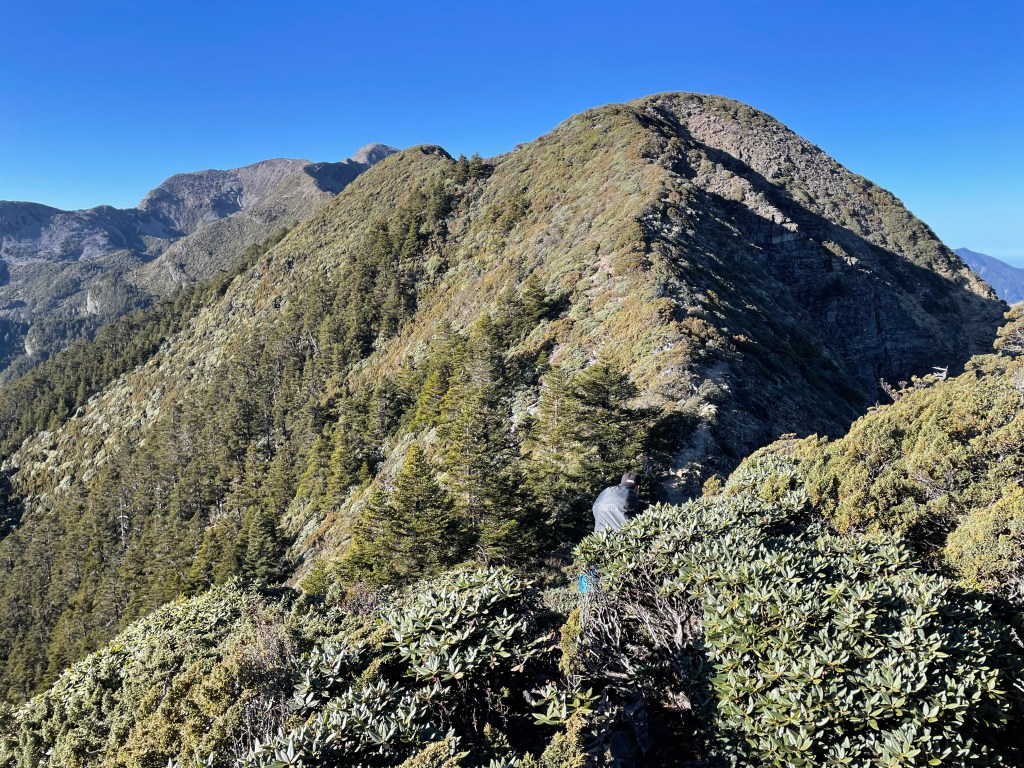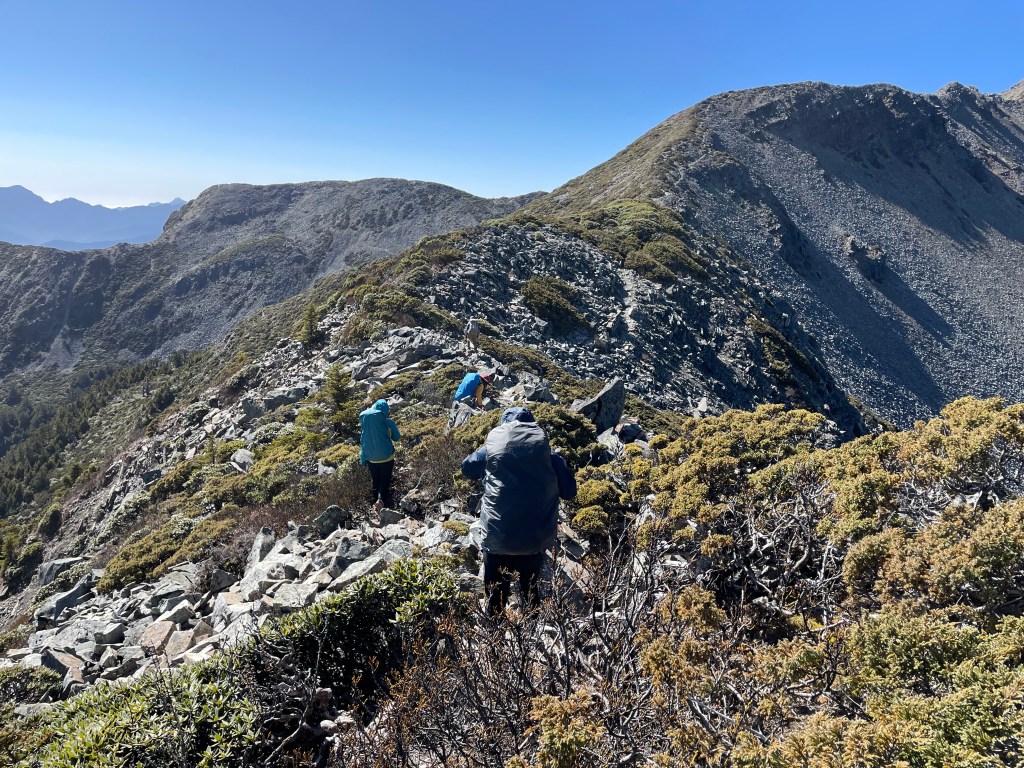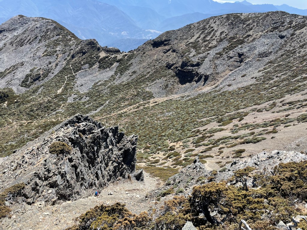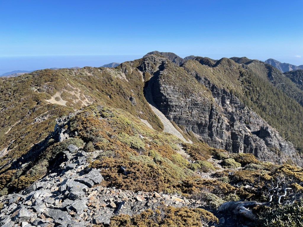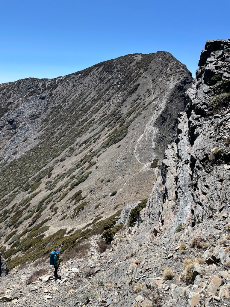 上圖:剛剛穆南劍溝下來的海拔,全部都要再次吃回來,但撐完這一段就是美麗的稜線了