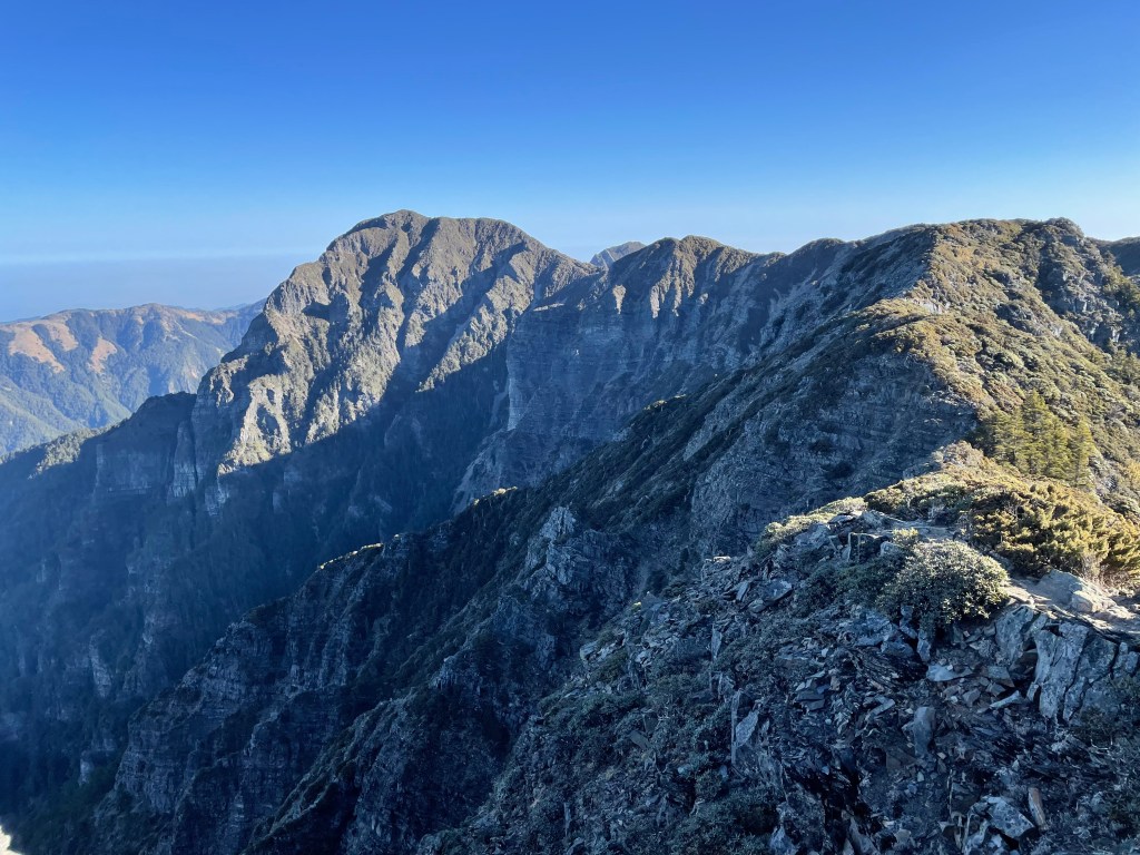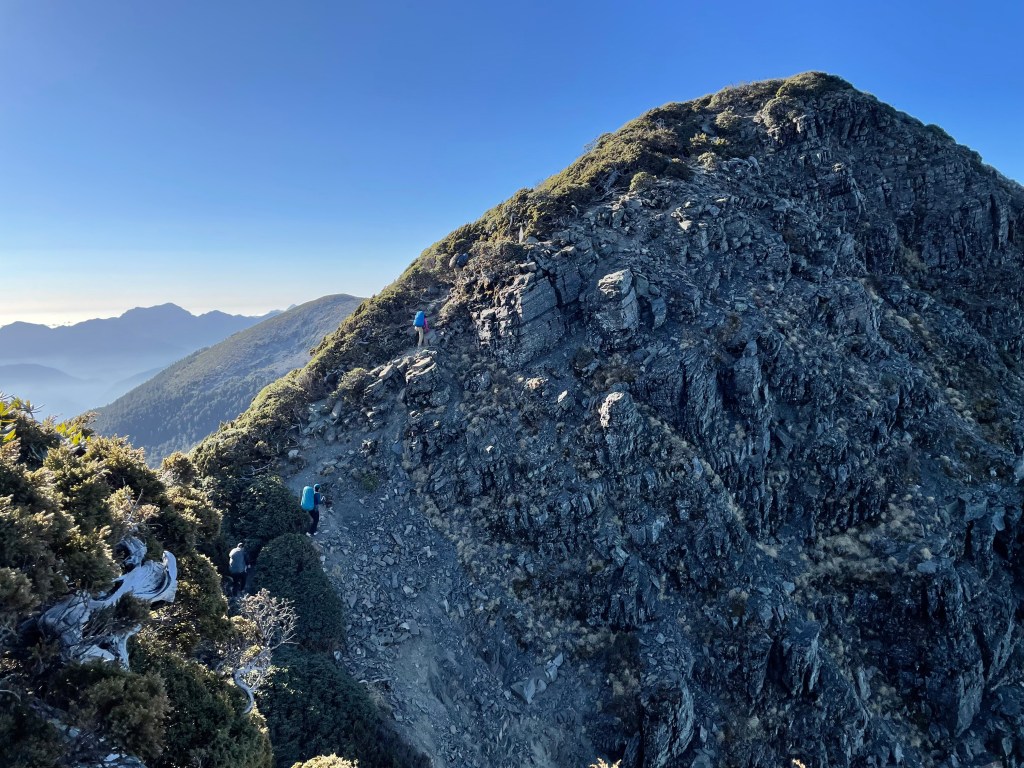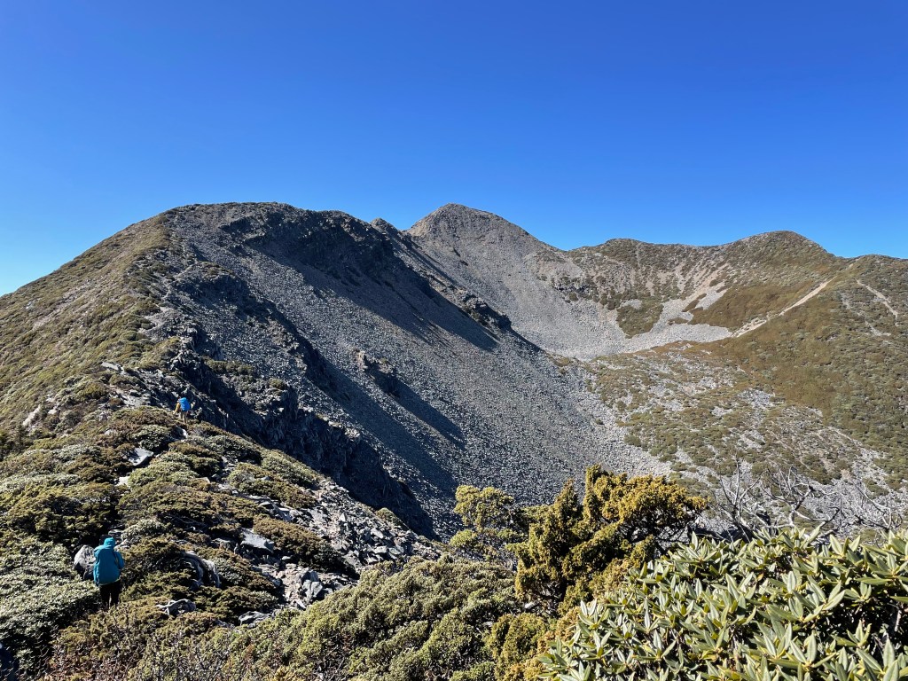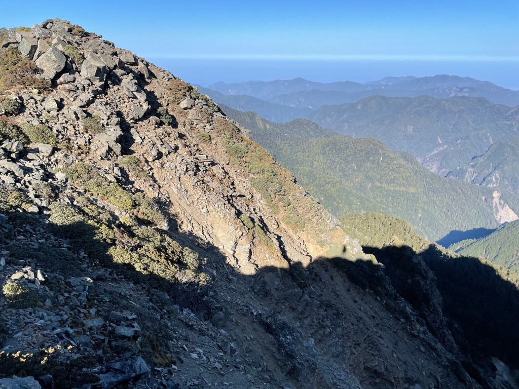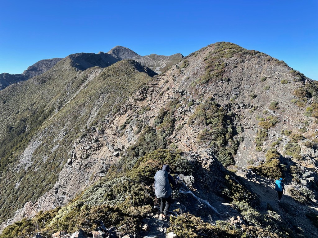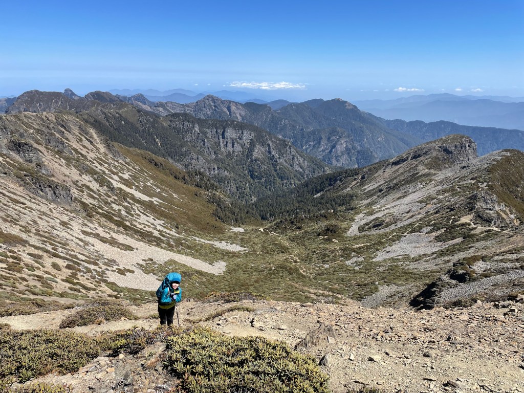 上圖:剛剛穆南劍溝下來的海拔,全部都要再次吃回來,但撐完這一段就是美麗的稜線了
