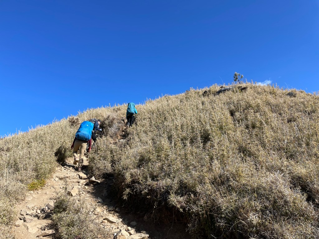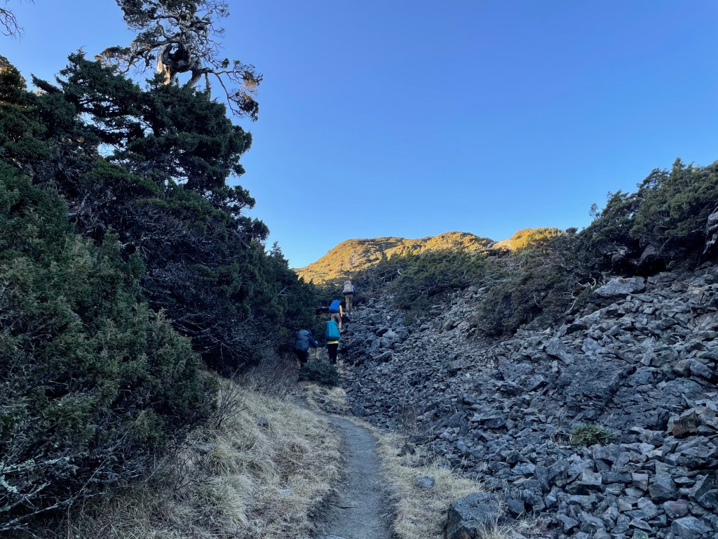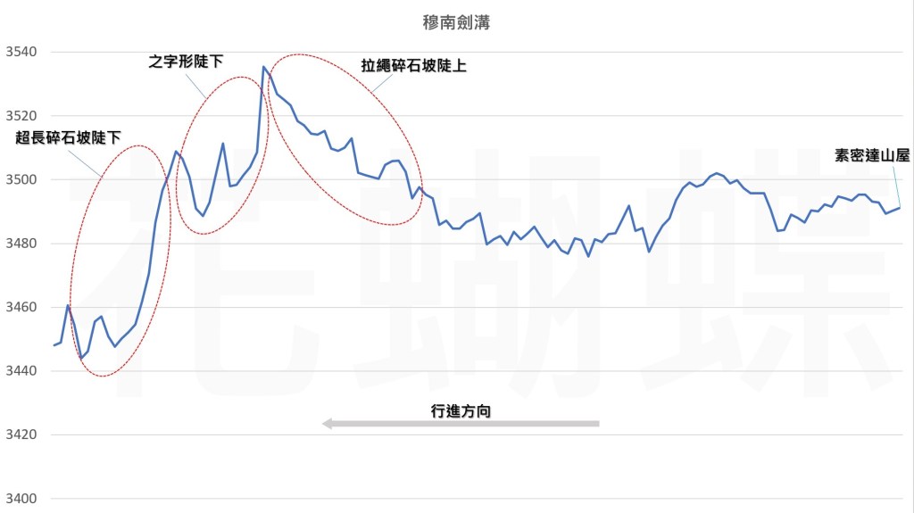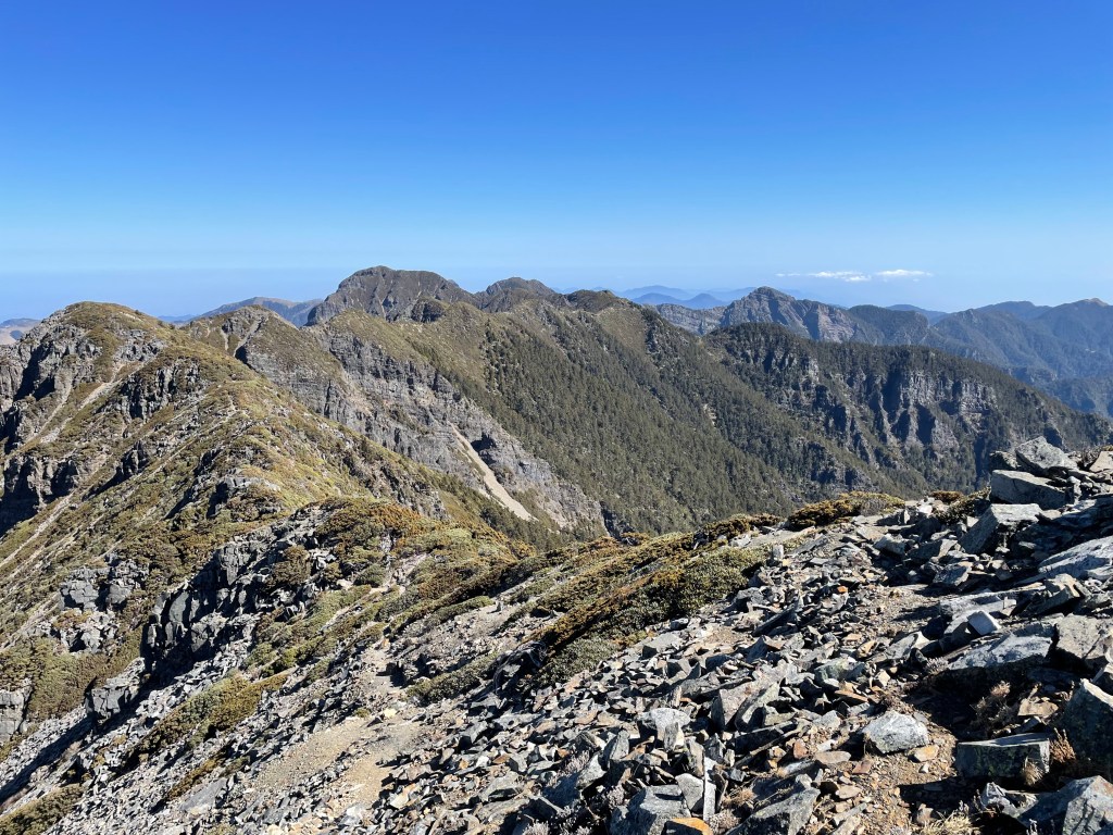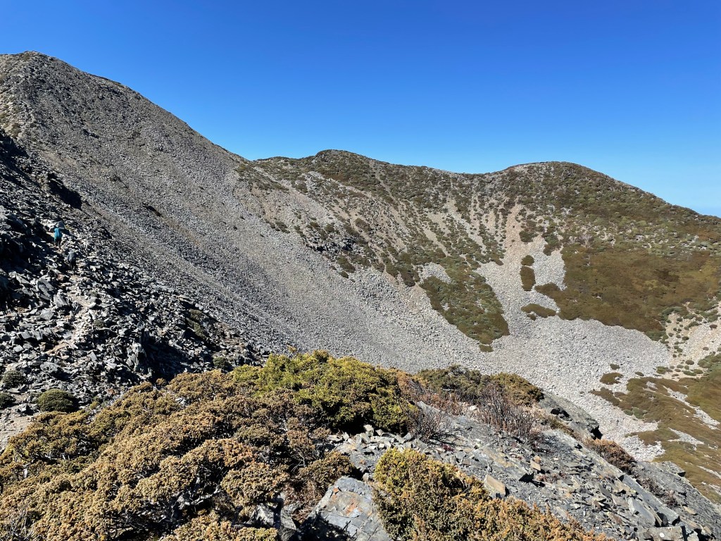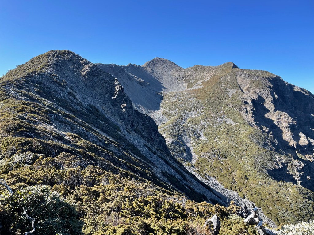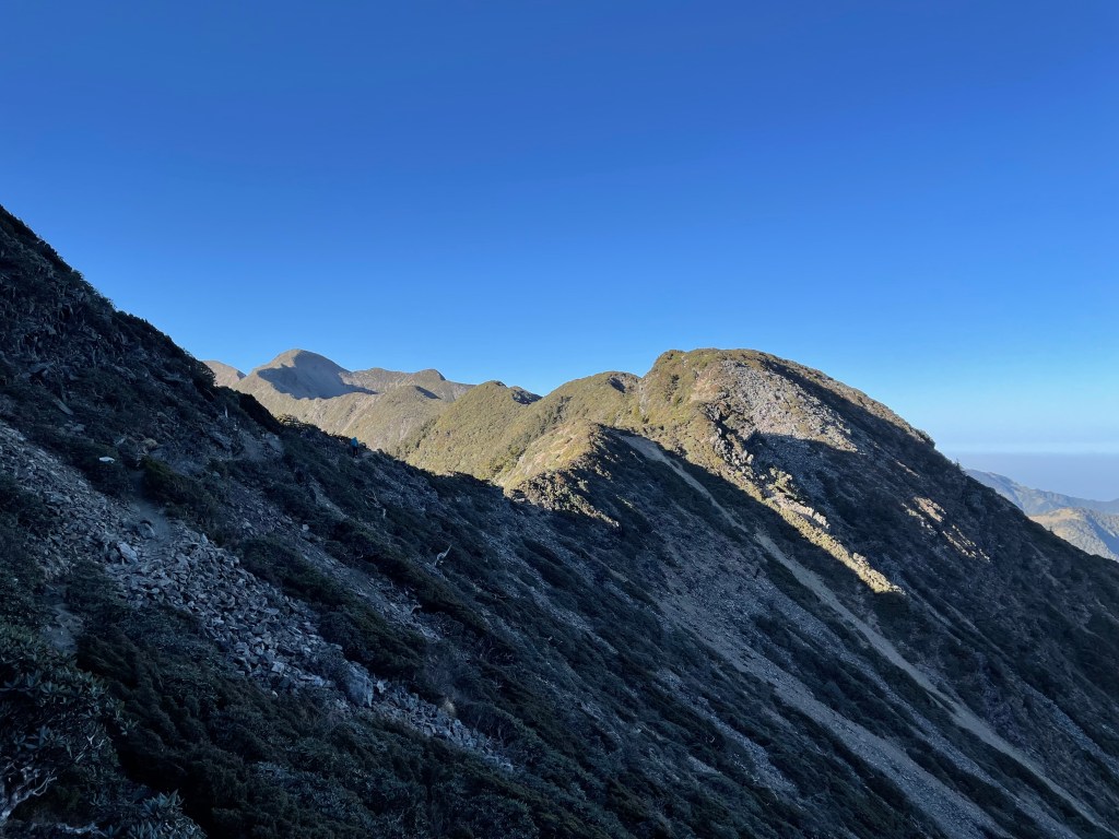 上圖:剛剛穆南劍溝下來的海拔,全部都要再次吃回來,但撐完這一段就是美麗的稜線了