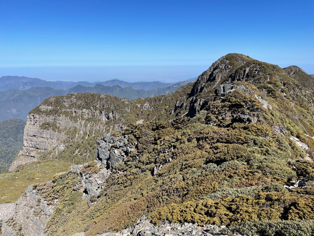 上圖:下完北稜角之後就要再一次把剛剛的高度全部補回來,有種何必呢~的感覺,從這裡還可以看到遠方淡淡的西巒大山