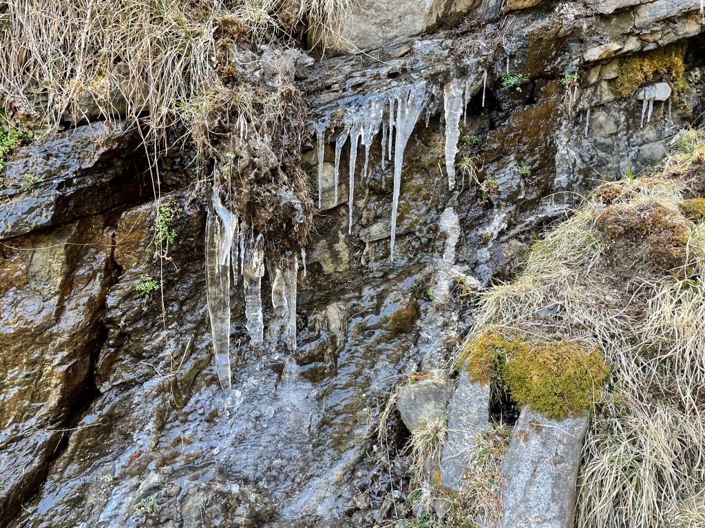 上圖:之前就聽過黑森林裡8.8K的岩壁水源容易結冰,果然此時岩壁上高掛許多冰柱