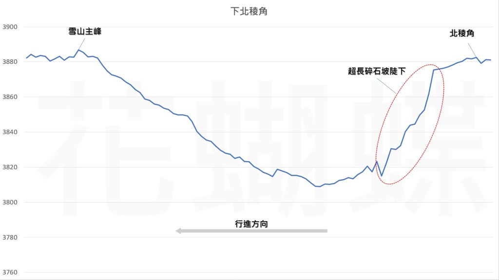 上圖:海拔一路上到H3525m左右,路徑就會由西轉南,此時便要踏上往雪北的稜線,一路風光明媚了