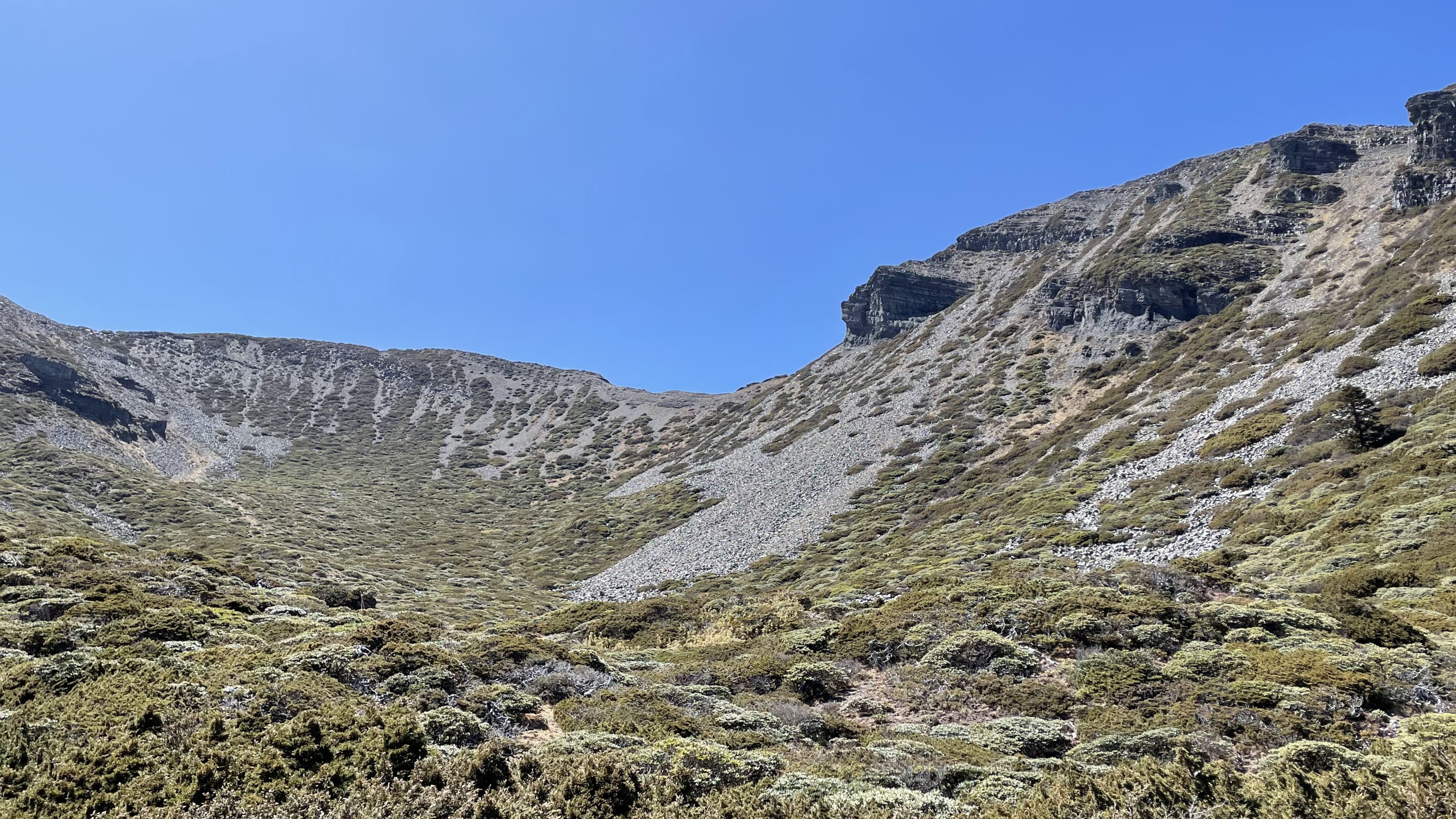 上圖:步道上竟然還有未融化的殘冰,可見雪山圈谷真是個天選之地