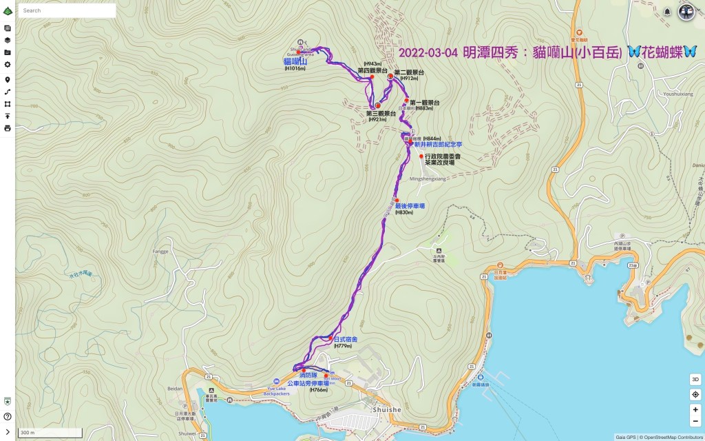 此次重點是第二天(2022.03.05)要走過大水 路線,亦即由日月潭加德宮起登,經過坑山、大尖山及水社大山的縱走,前一天(2022.03.04)中午我們就抵達到了日月潭,想想,不如利用這一天的下午,先去拜訪貓囒山與後尖山兩座,隔天再走過大水,就可以在兩天內完成了明潭四秀。有關過大水的路線記錄請參考:2022-03-05 明潭四秀:過大水7連峰縱走 🦋花蝴蝶🦋 。
