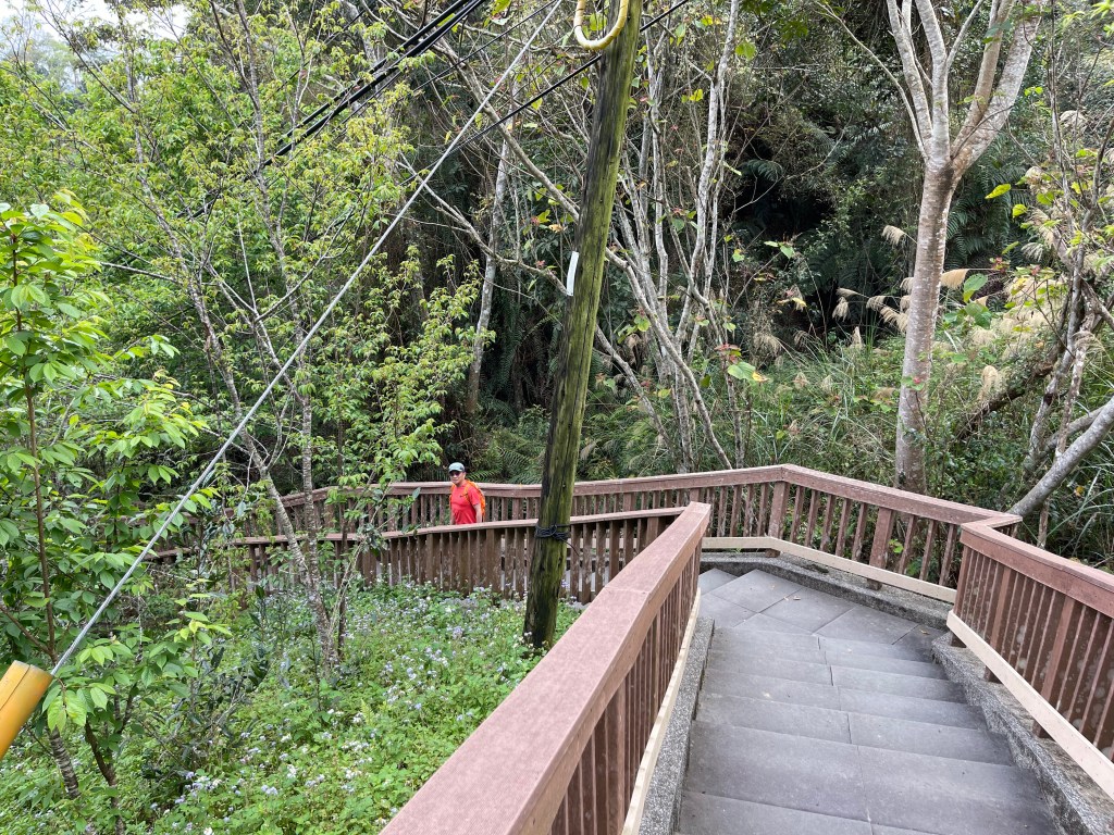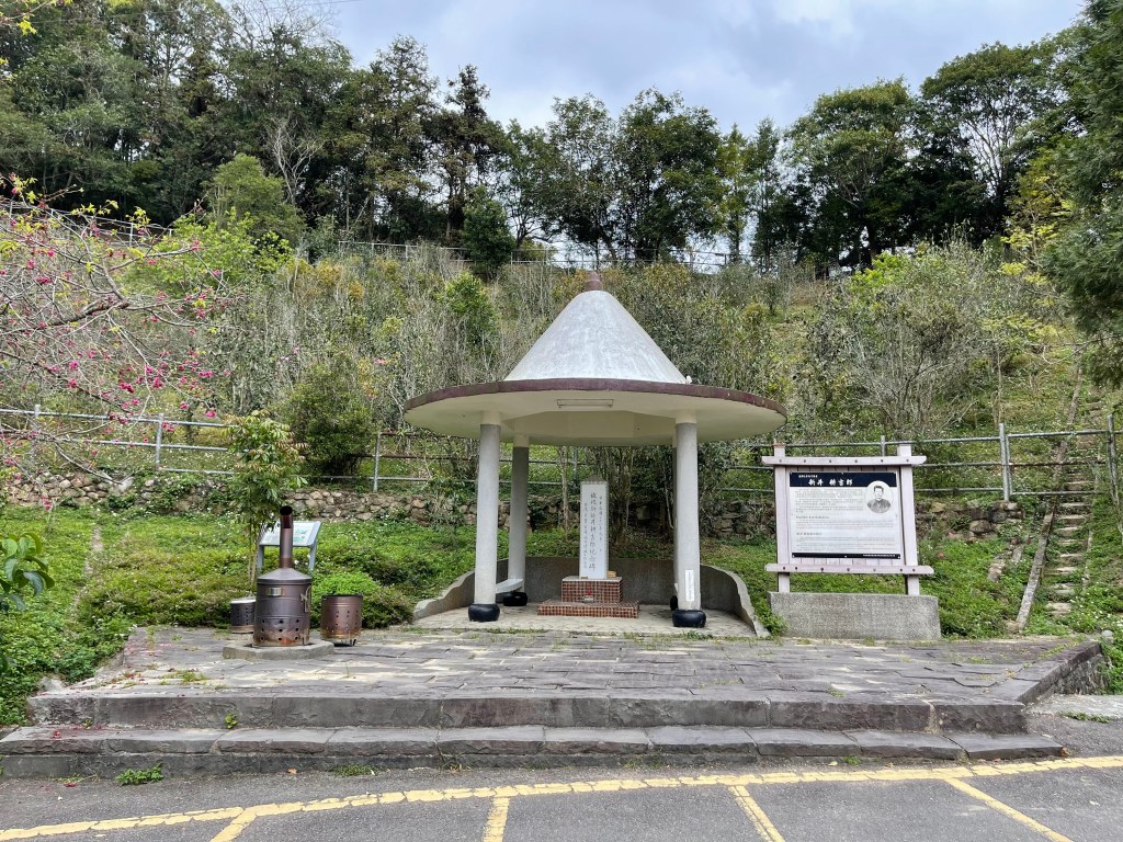 影片:走到了新井耕吉郎紀念亭 ,紀念亭的左側階梯就是貓囒山步道。13:39