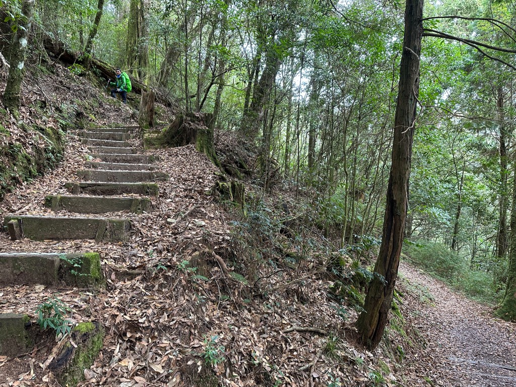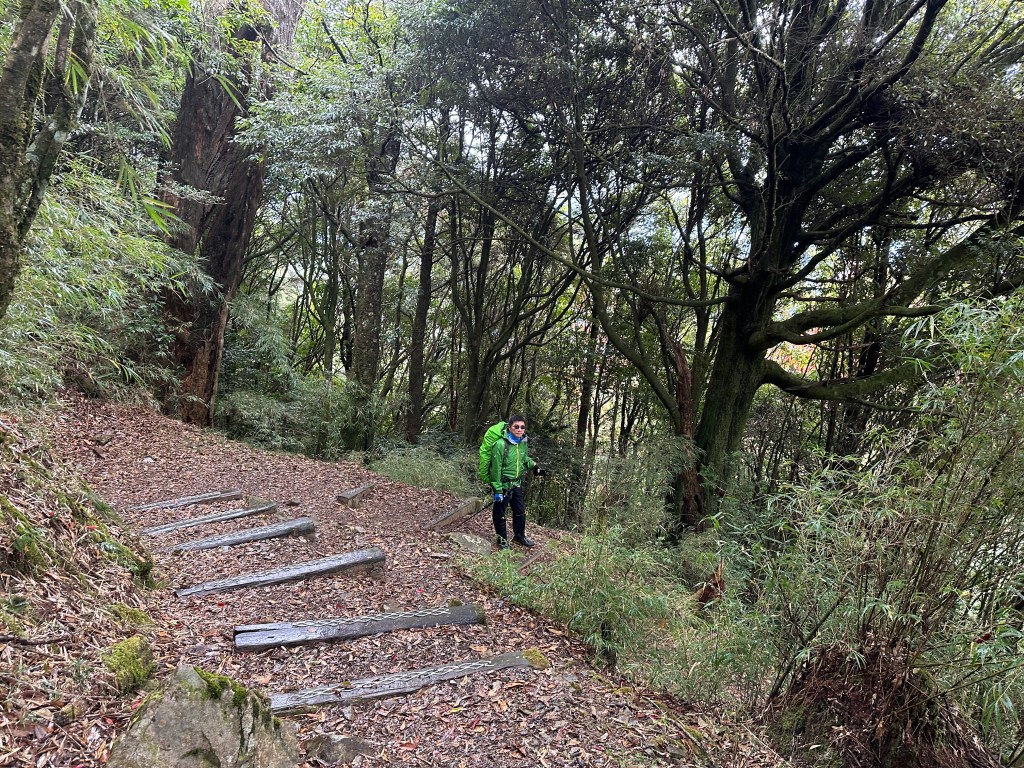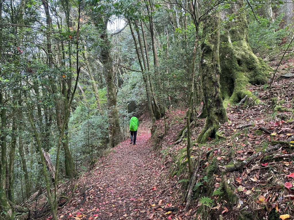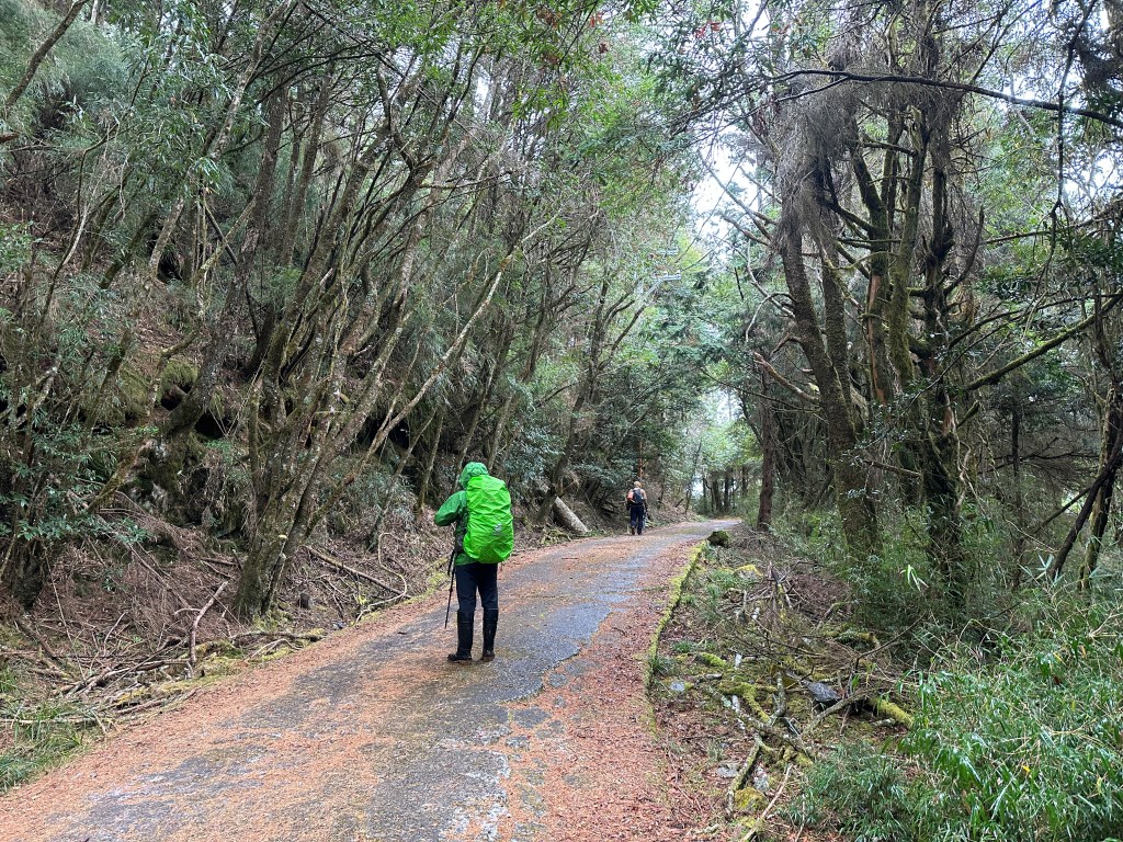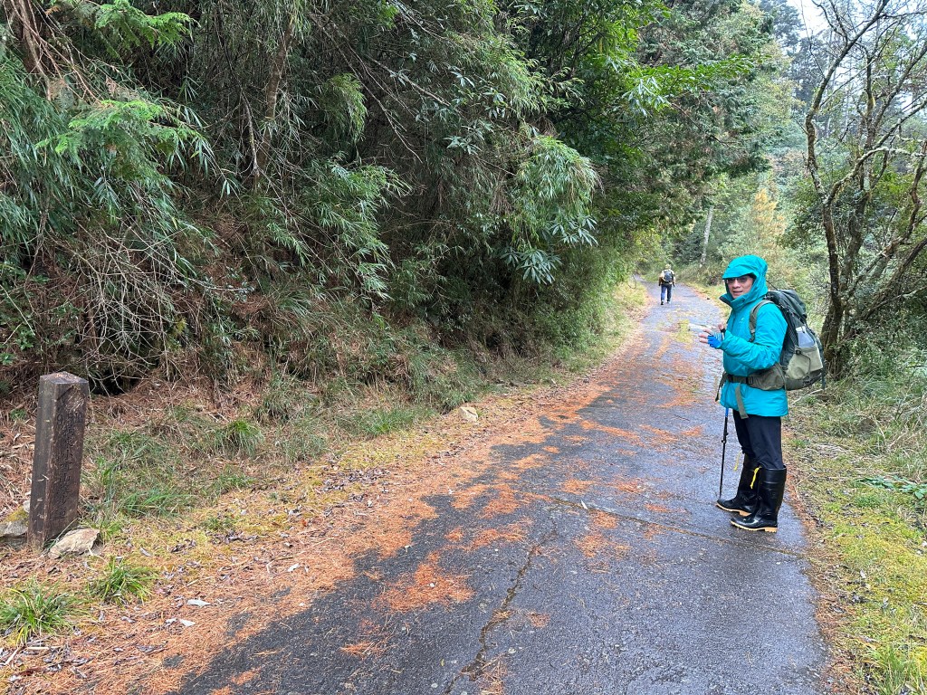 今天整日天冷還兼下雨,7度C到11度C,整天走的路徑都是林相優美,步道、林道也都整理得安全無虞,加上不時都可以看到遠處的山巒及近身的神木,且不少林道路段都有落葉灑落,相信在天氣較佳的條件下,絕對是一條值得推薦的路線。但今天我們所走的過程中,也有少部份的路線是需要注意的: