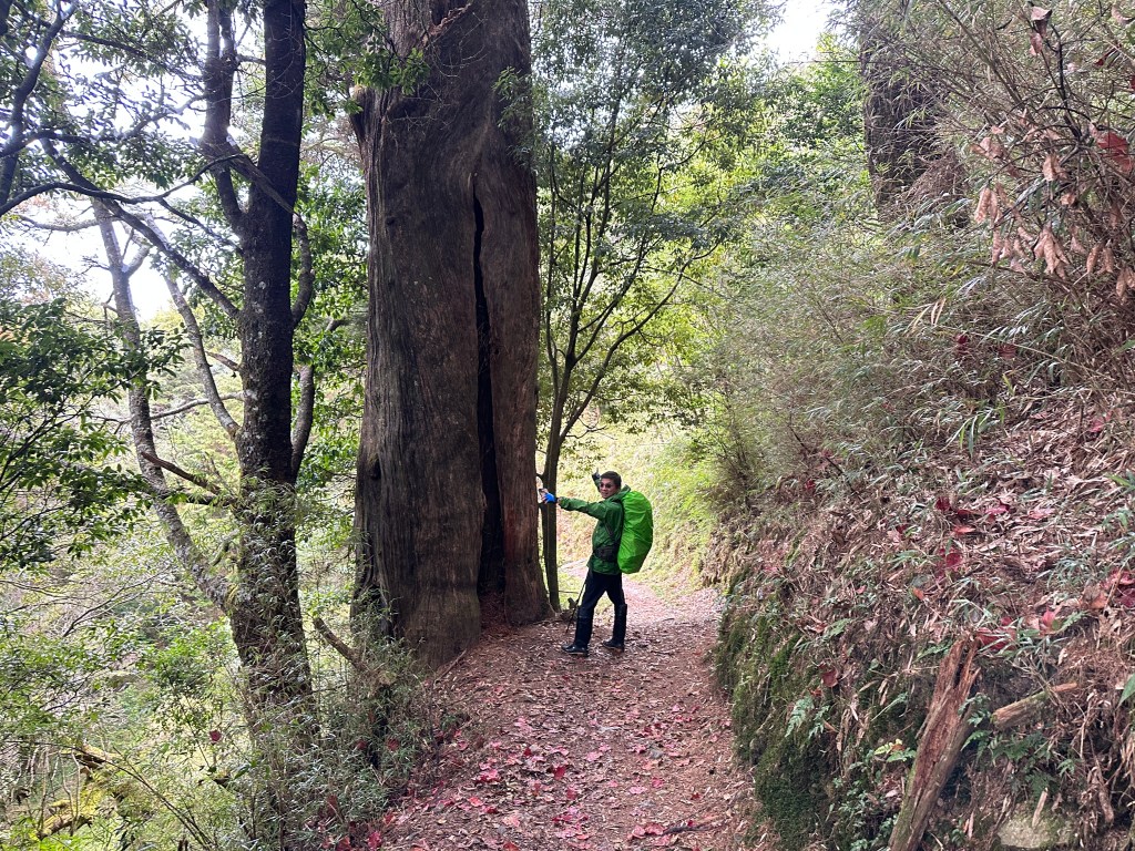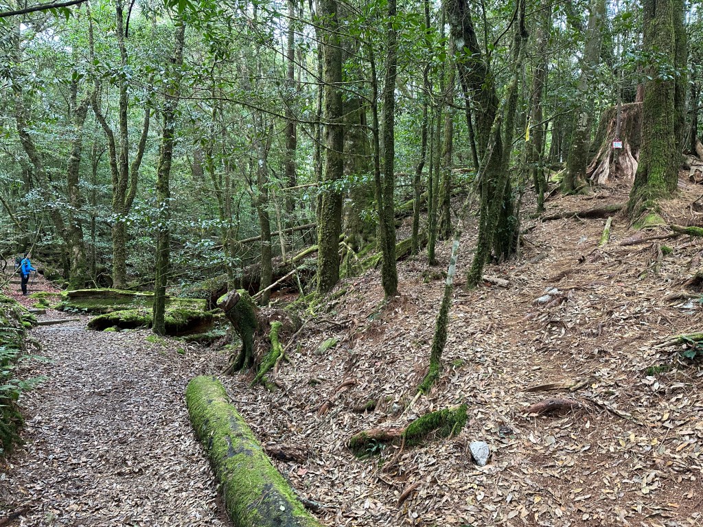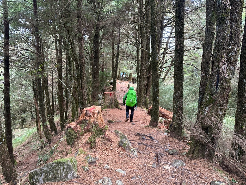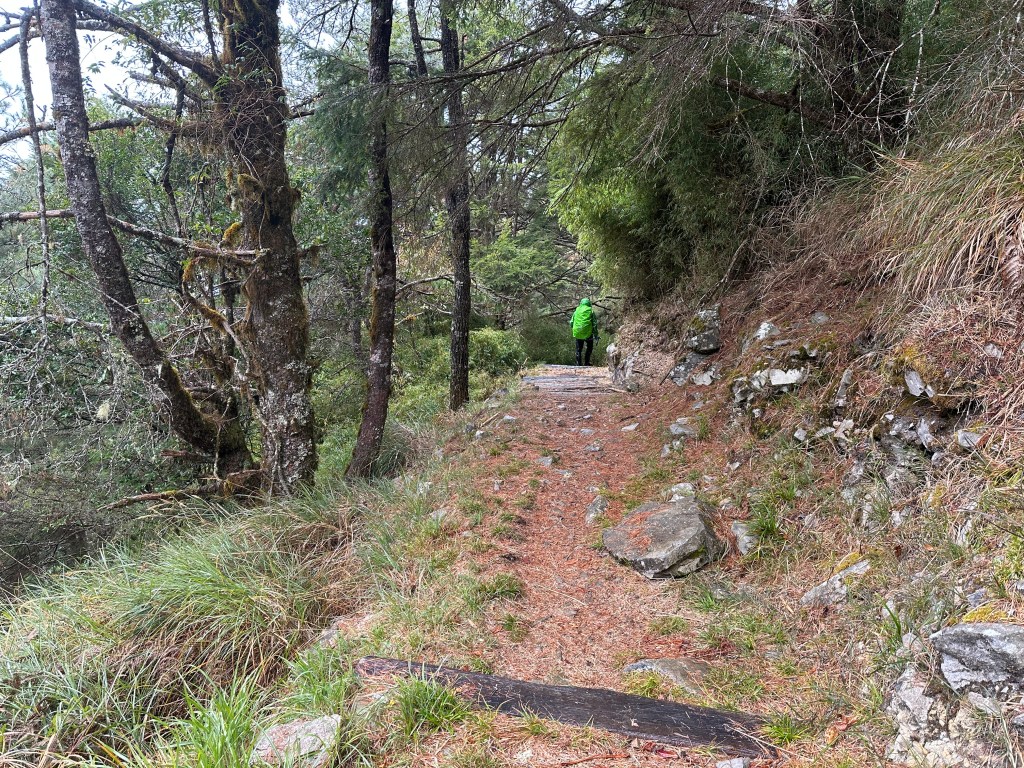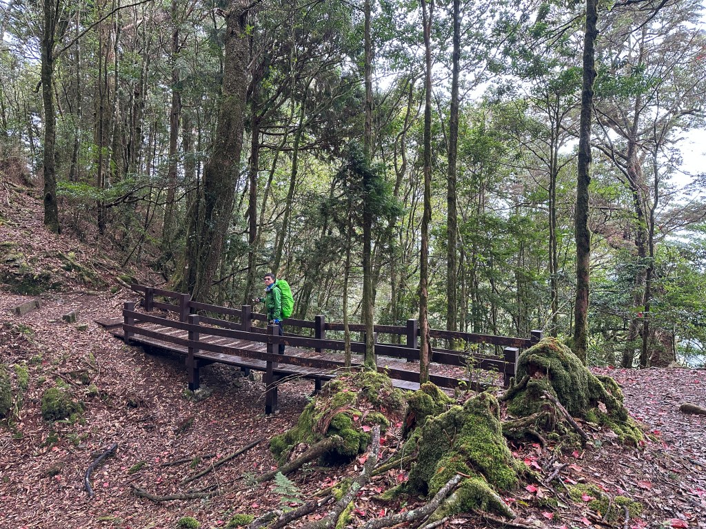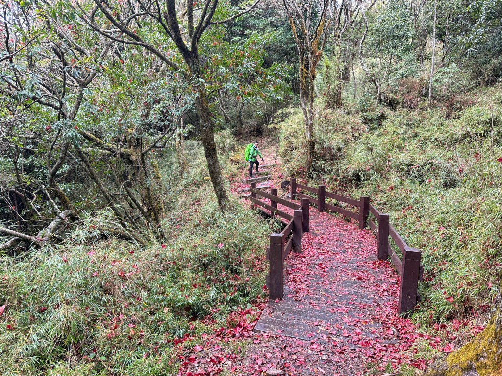 今天整日天冷還兼下雨,7度C到11度C,整天走的路徑都是林相優美,步道、林道也都整理得安全無虞,加上不時都可以看到遠處的山巒及近身的神木,且不少林道路段都有落葉灑落,相信在天氣較佳的條件下,絕對是一條值得推薦的路線。但今天我們所走的過程中,也有少部份的路線是需要注意的: