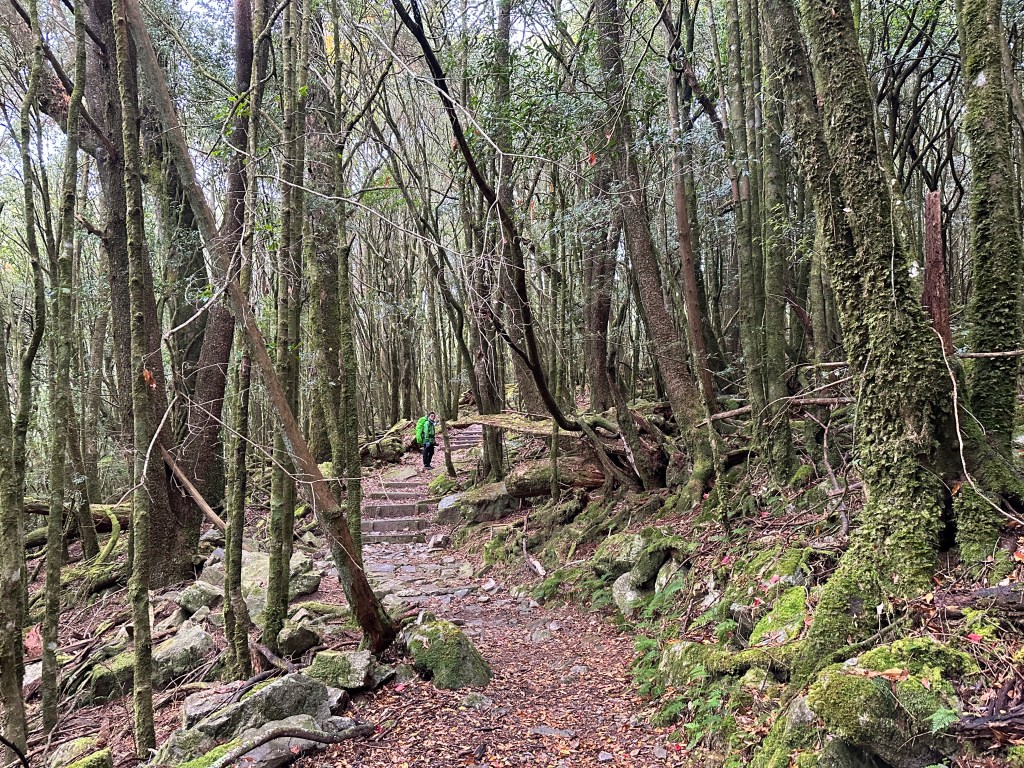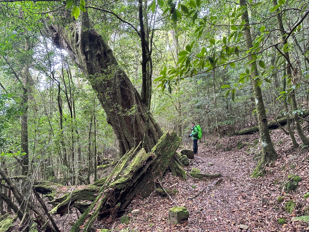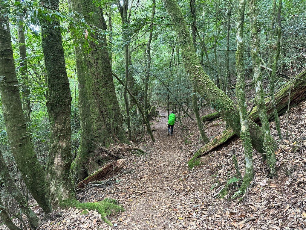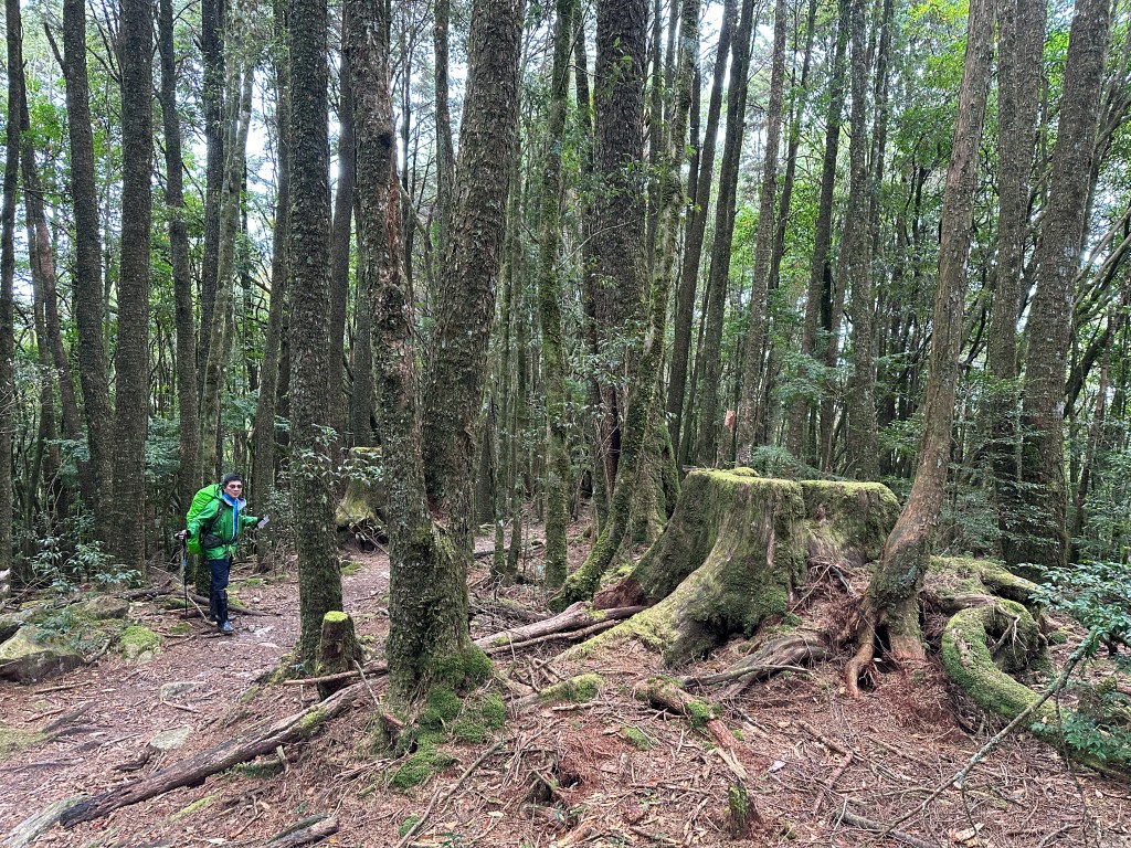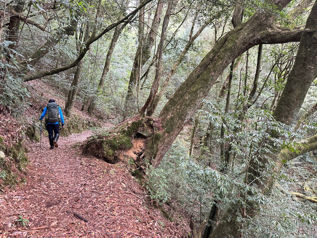 今天整日天冷還兼下雨,7度C到11度C,整天走的路徑都是林相優美,步道、林道也都整理得安全無虞,加上不時都可以看到遠處的山巒及近身的神木,且不少林道路段都有落葉灑落,相信在天氣較佳的條件下,絕對是一條值得推薦的路線。但今天我們所走的過程中,也有少部份的路線是需要注意的: