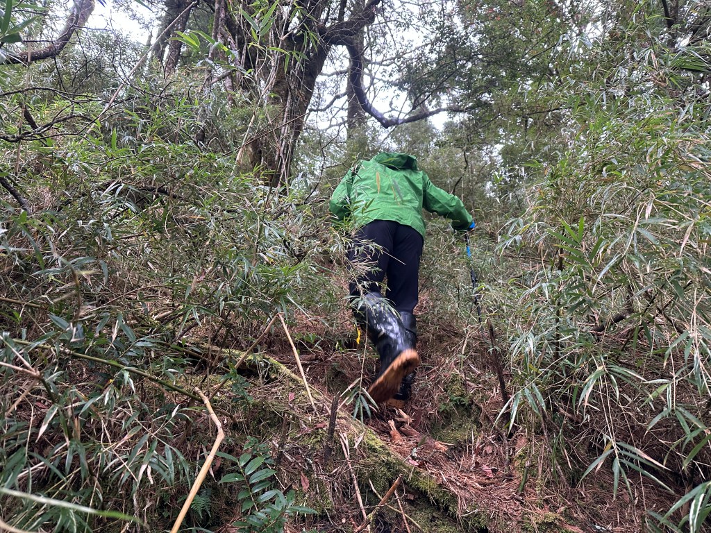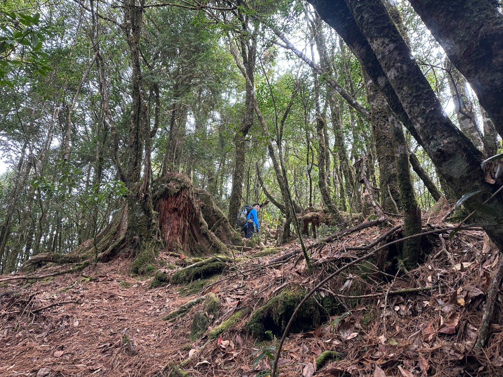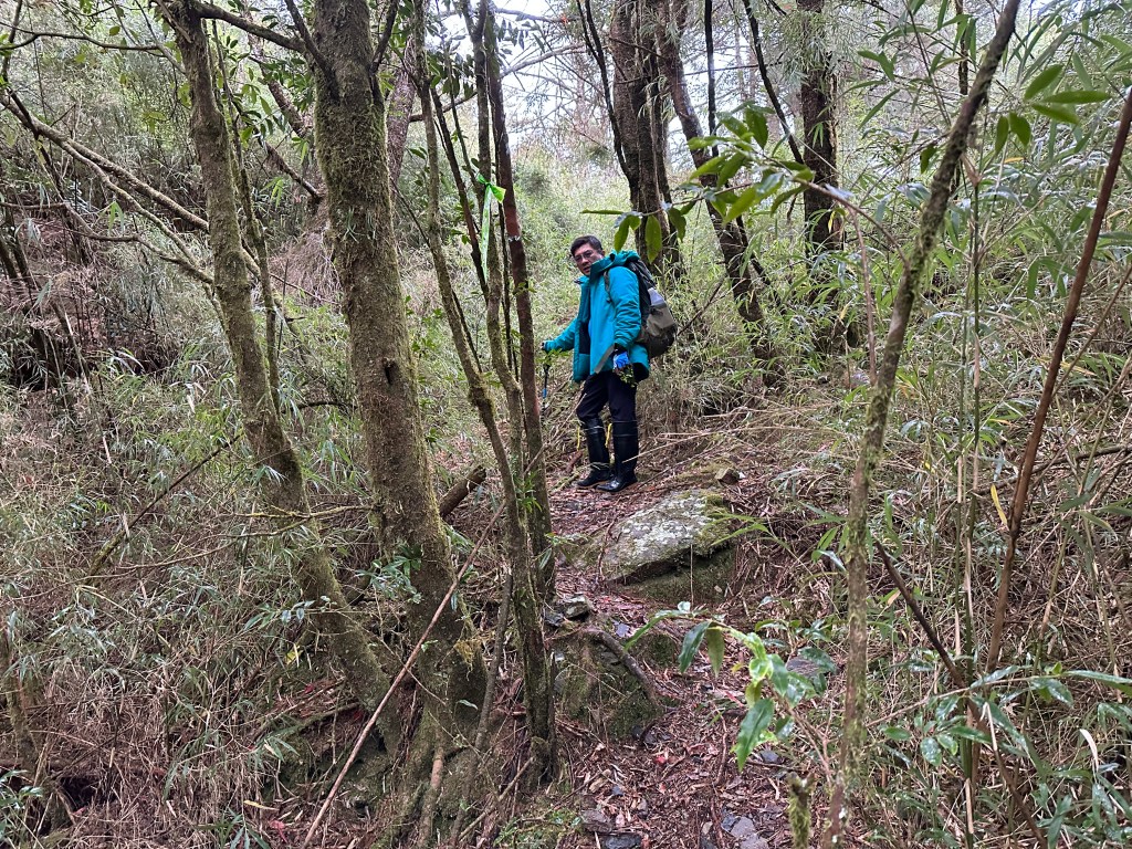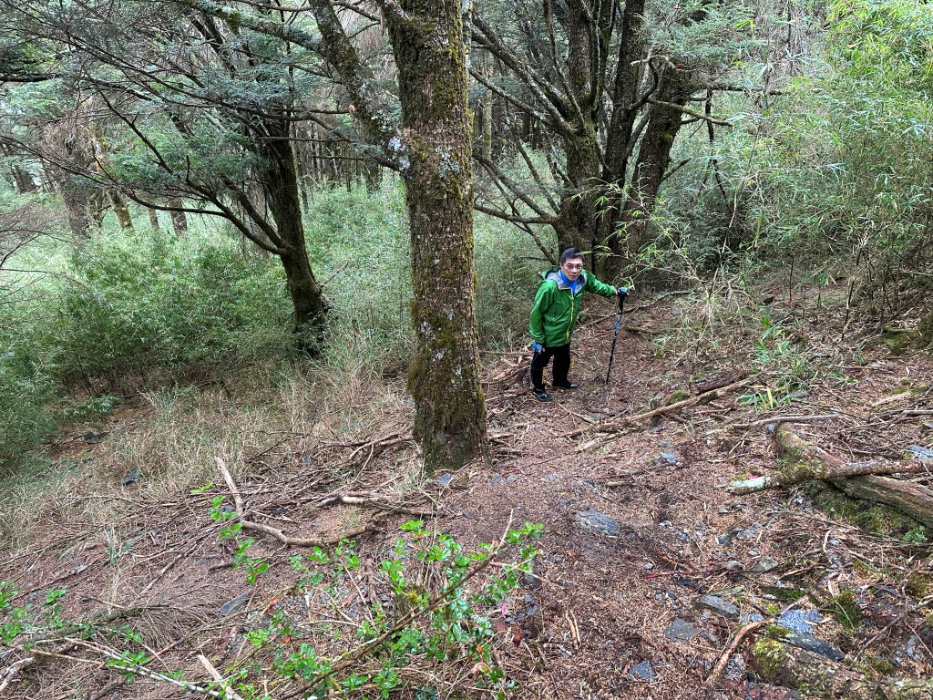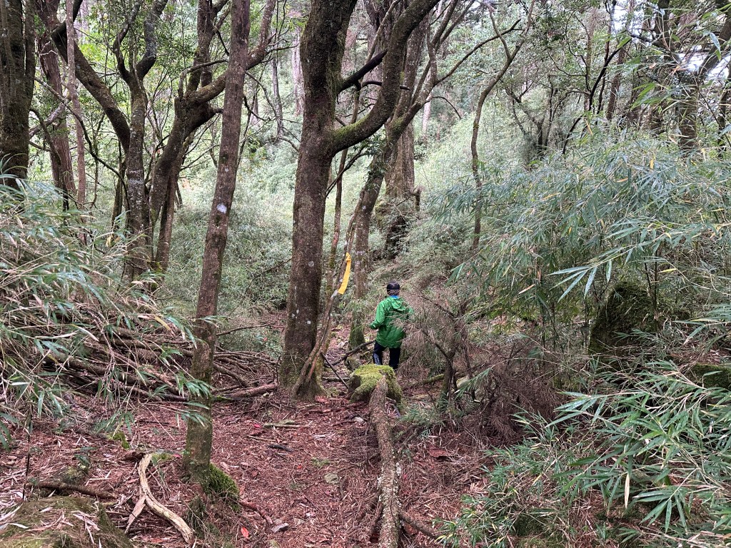 這一小段路徑距離有0.7K,要陡上海拔高度為80m,但過程中倒木、箭竹林多感覺比較阿雜一些,中途也有上下起伏,如果不以三角點為目標,其實是可以繼續沿著小雪山林道走,跳過鞍馬山東北峰。