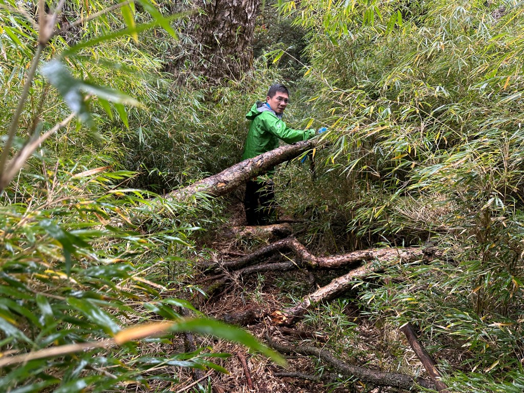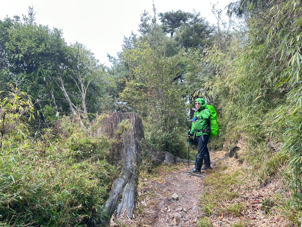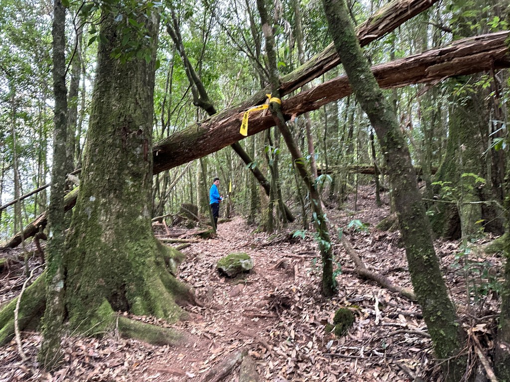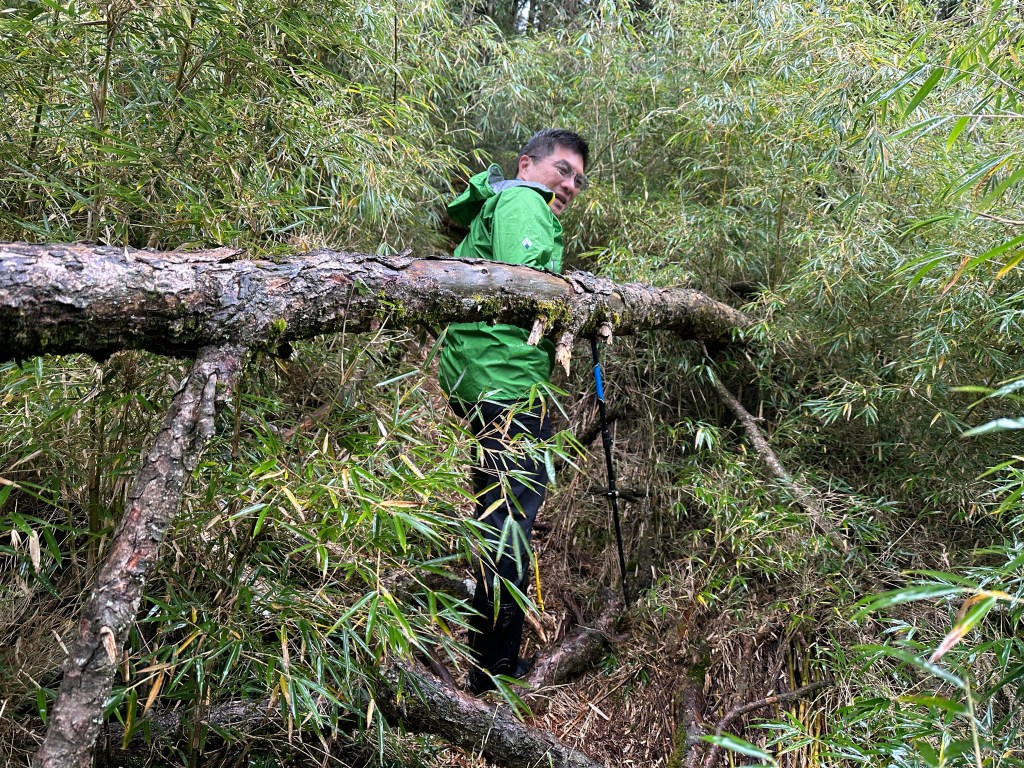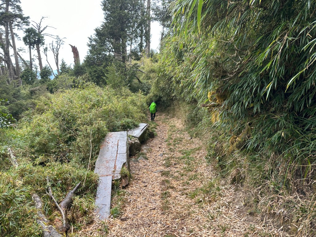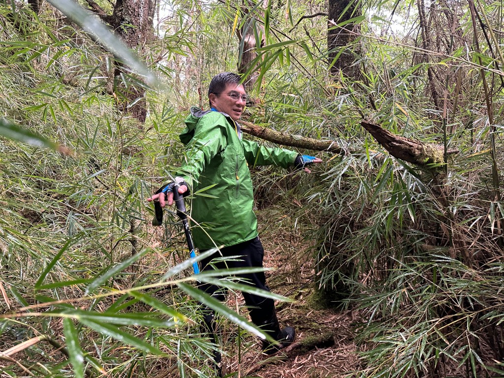 這一小段路徑距離有0.7K,要陡上海拔高度為80m,但過程中倒木、箭竹林多感覺比較阿雜一些,中途也有上下起伏,如果不以三角點為目標,其實是可以繼續沿著小雪山林道走,跳過鞍馬山東北峰。