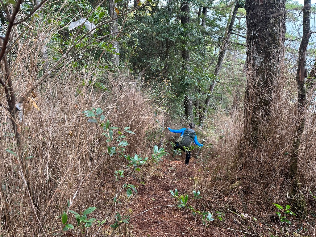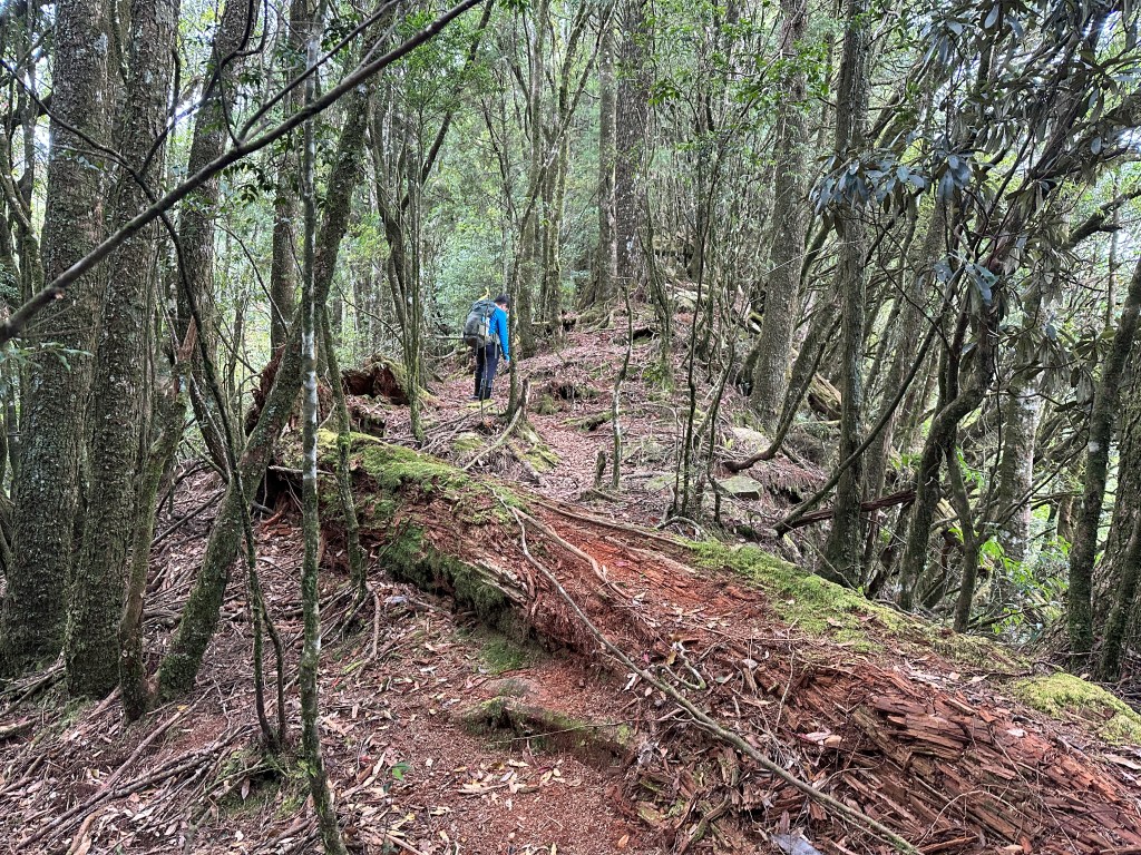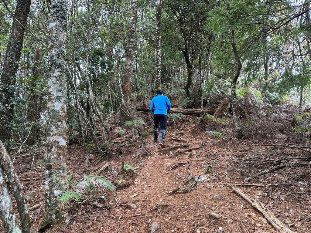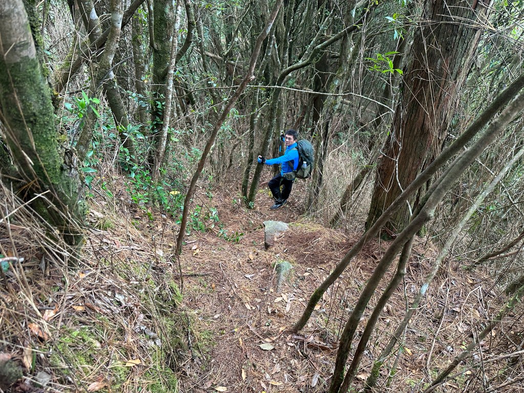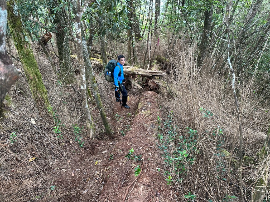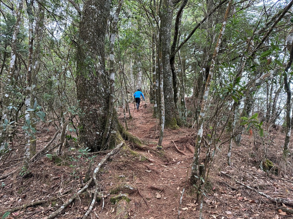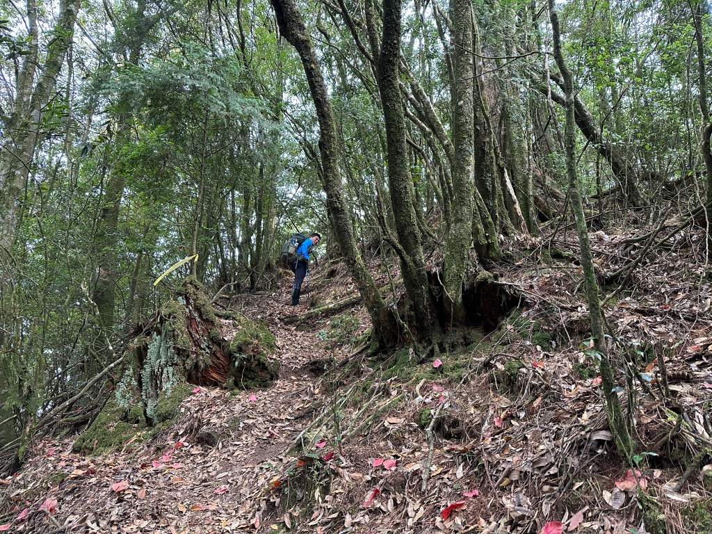 由小雪山林道4.9K岔轉往2432峰這一段,必須陡上距離0.7K及陡下距離1.2K,整個過程先陡上海拔高度有150m再陡下海拔高度有300m,是今天整天行走過程中最辛苦的一段!