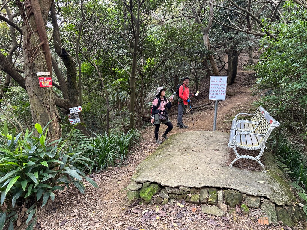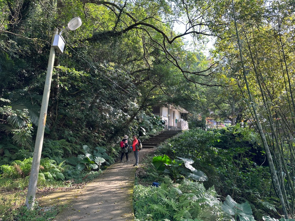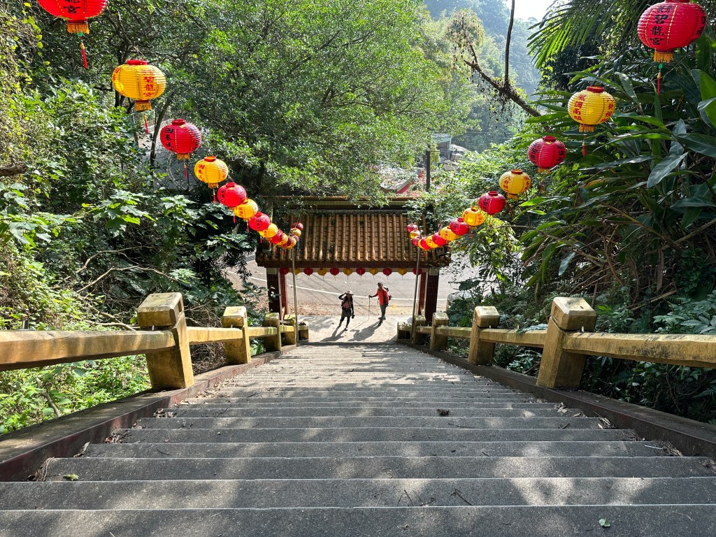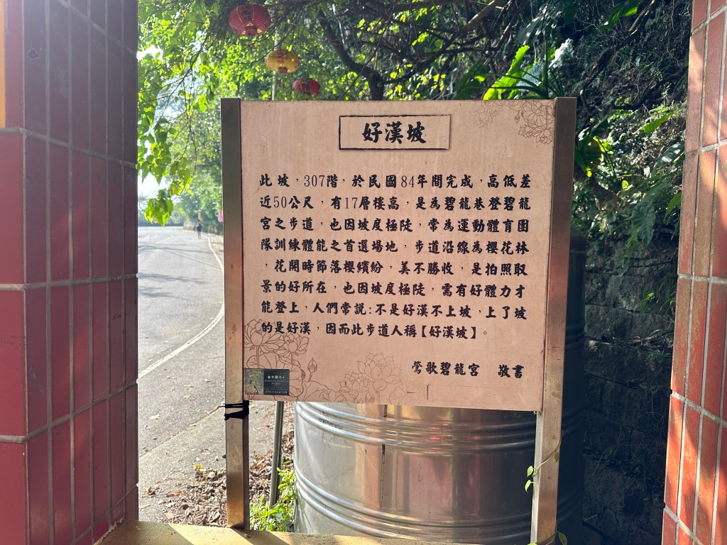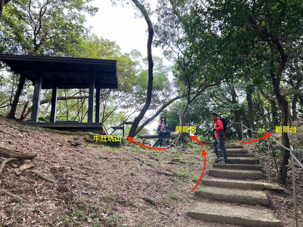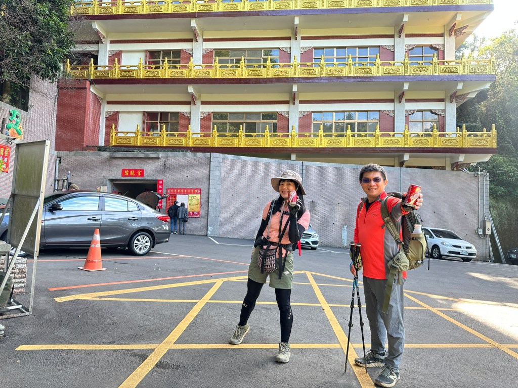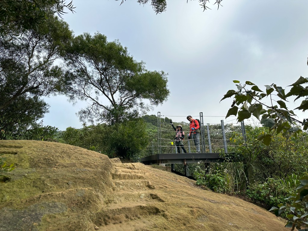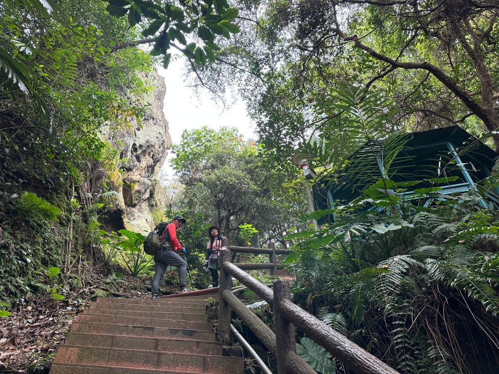 停好車後,由北鶯公園開始陡上往鶯歌石山,途中會經過鶯歌石,過鶯歌石山後還要持續陡上到將近海拔200m的高度,接著我們要往碧龍宮的方向走,由光明山稜線步道轉往二坑步道,陡下中會經過舊礦坑遺跡,一直陡下來到海拔約100m的玄門紫玄宮,再來就又開始陡上,陡上到高點後右岔駔100m可以來到一個觀景台,當然要去看一下,再原路回走接著陡下就會抵達碧龍宮,這裡有廁所也有自動販賣機,我們三人就在這裡投幣買了三瓶沙士!沒想到邊爬山還可以邊買可樂?