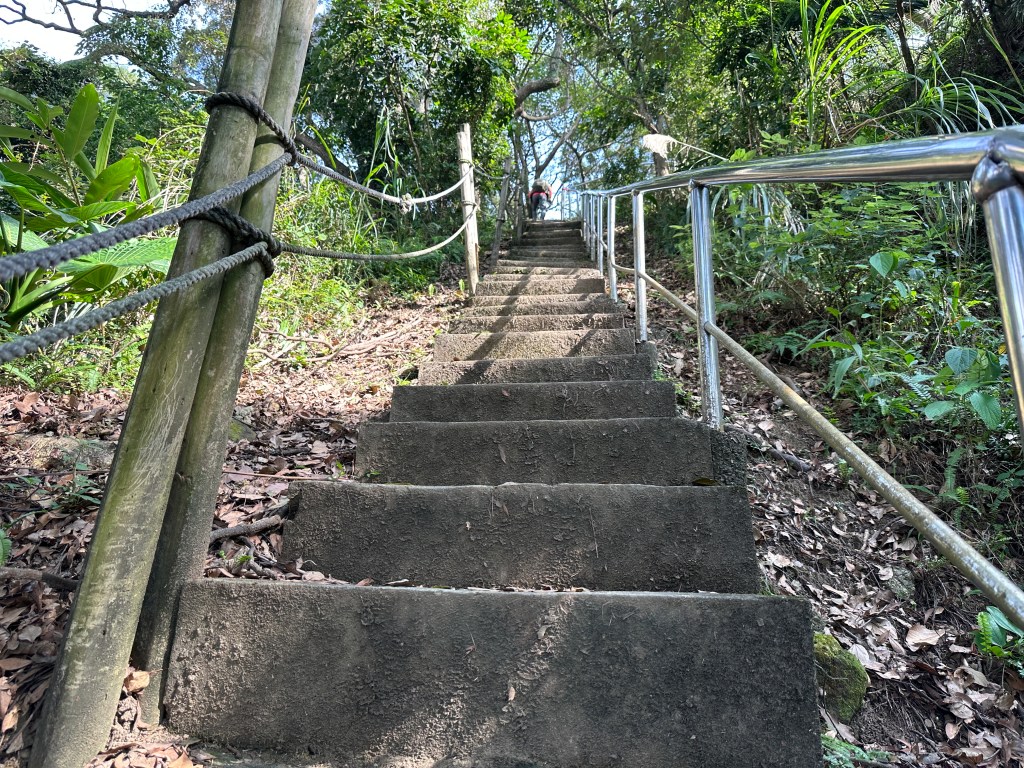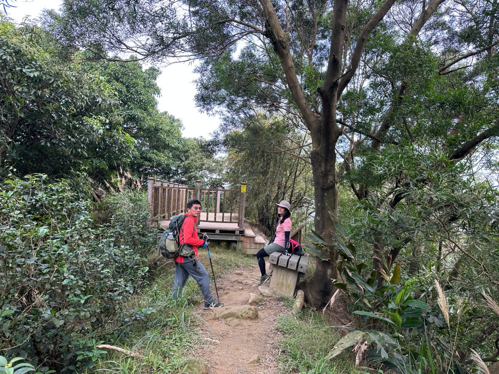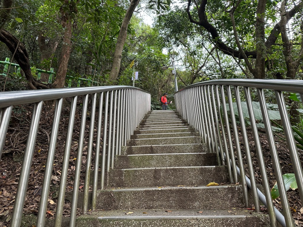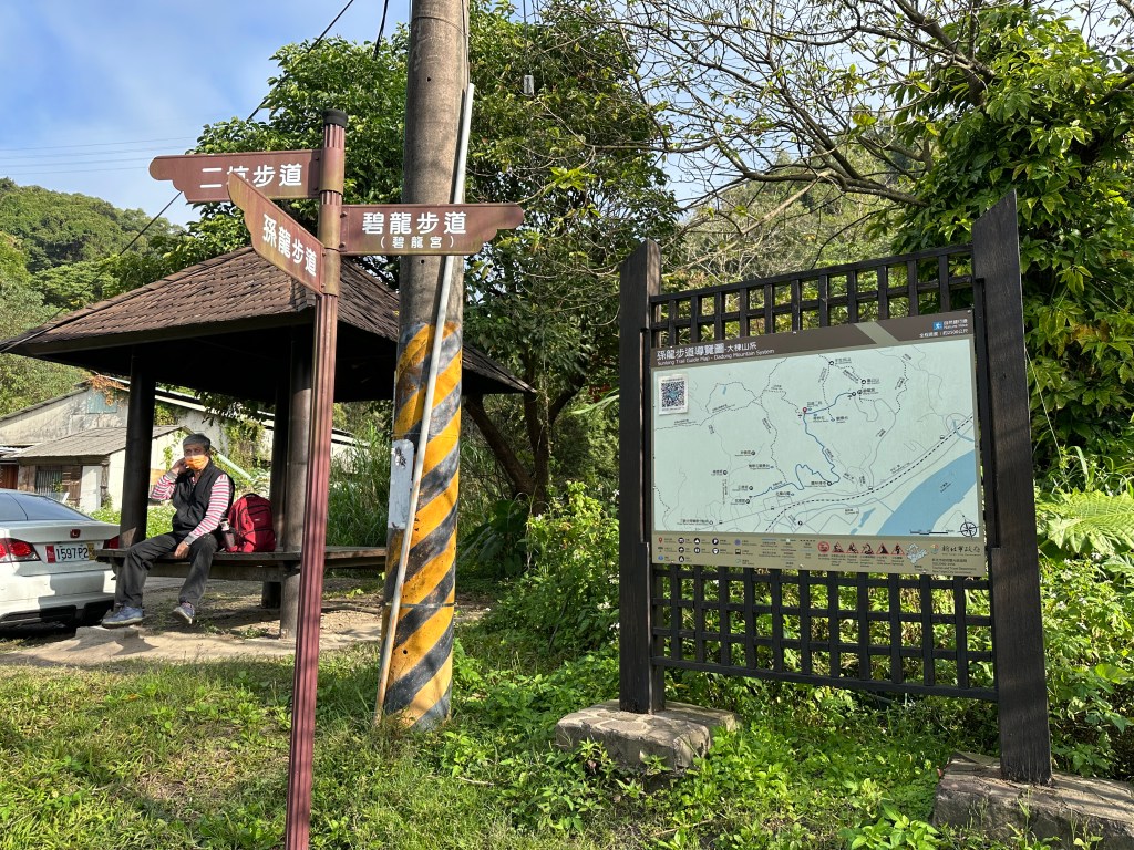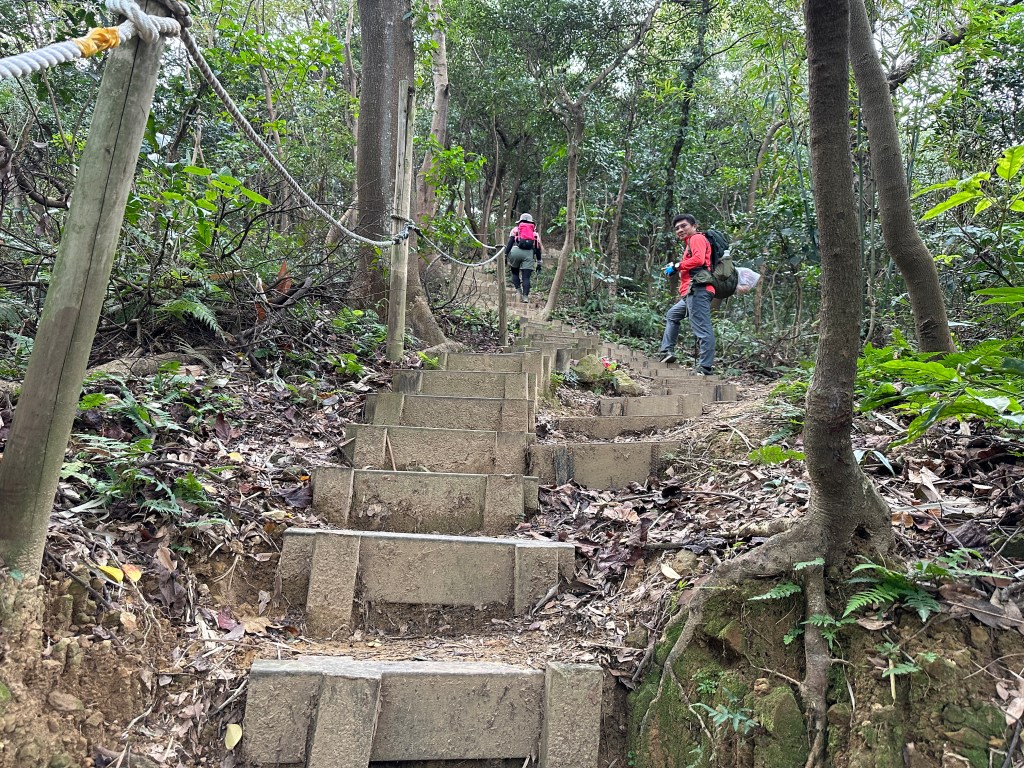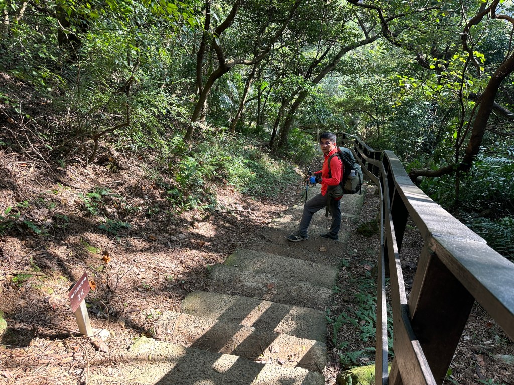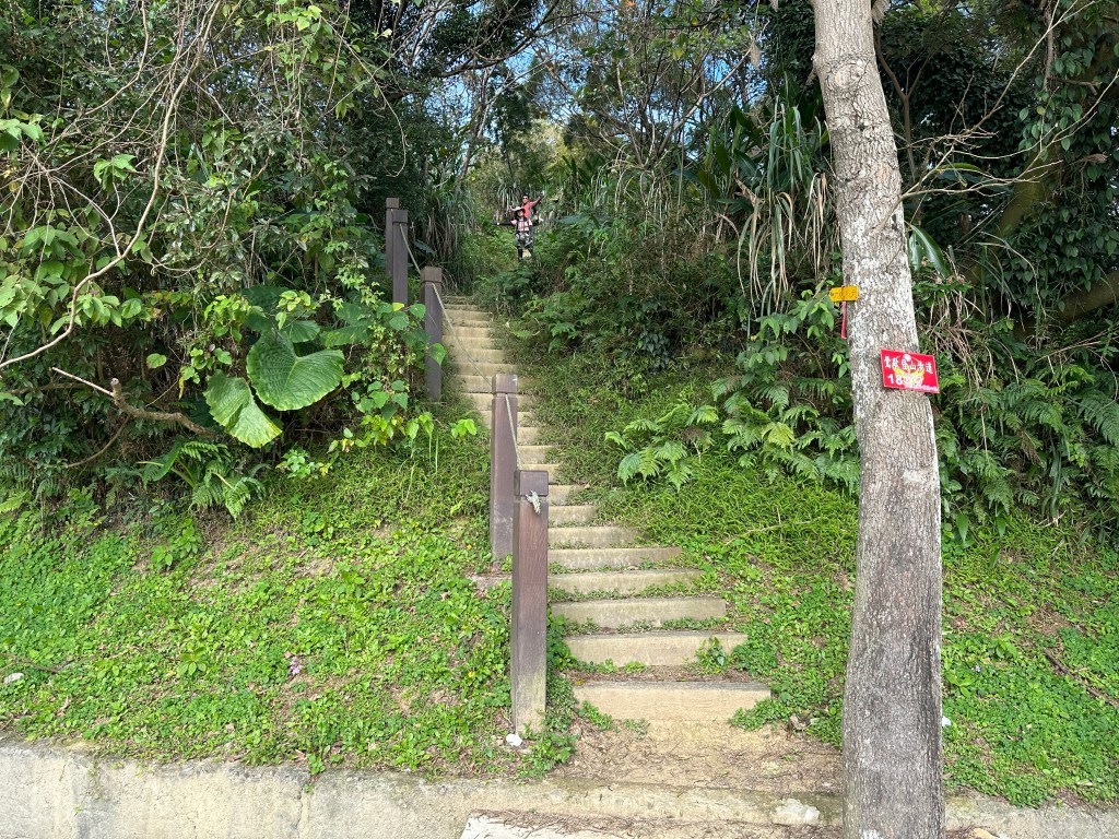 停好車後,由北鶯公園開始陡上往鶯歌石山,途中會經過鶯歌石,過鶯歌石山後還要持續陡上到將近海拔200m的高度,接著我們要往碧龍宮的方向走,由光明山稜線步道轉往二坑步道,陡下中會經過舊礦坑遺跡,一直陡下來到海拔約100m的玄門紫玄宮,再來就又開始陡上,陡上到高點後右岔駔100m可以來到一個觀景台,當然要去看一下,再原路回走接著陡下就會抵達碧龍宮,這裡有廁所也有自動販賣機,我們三人就在這裡投幣買了三瓶沙士!沒想到邊爬山還可以邊買可樂?