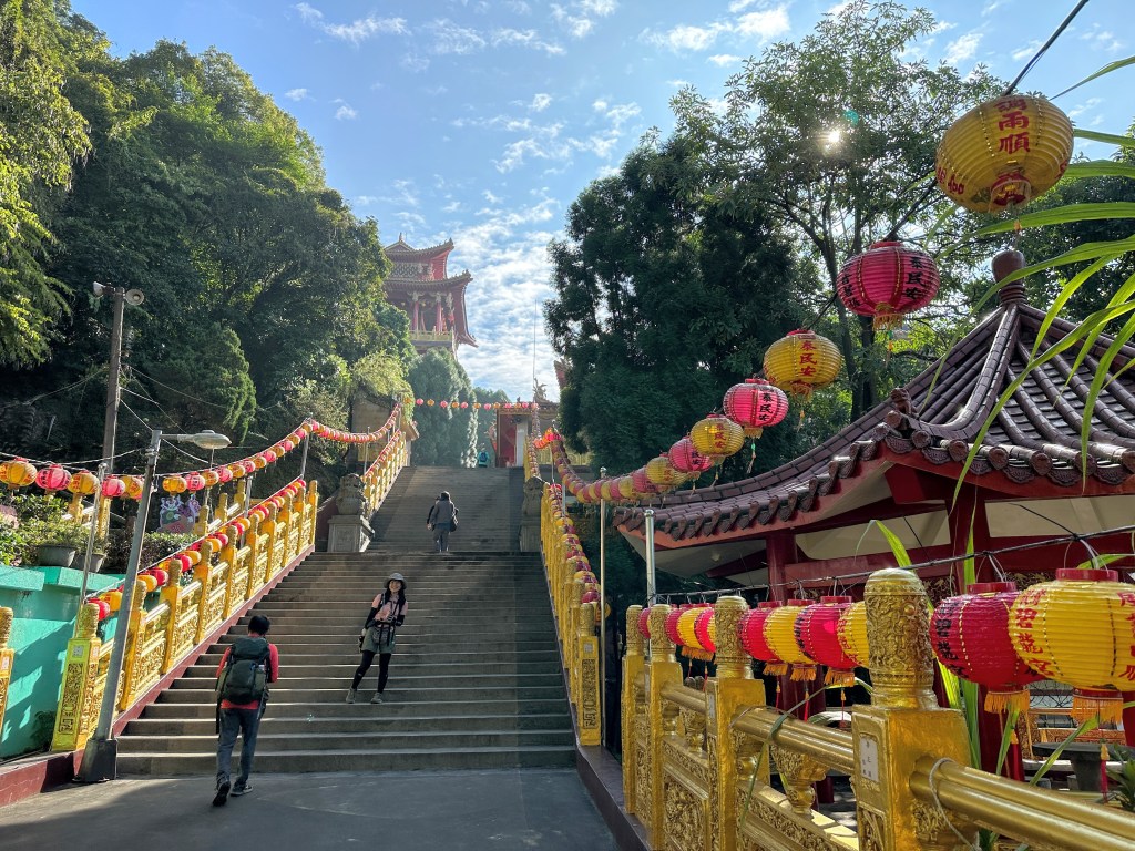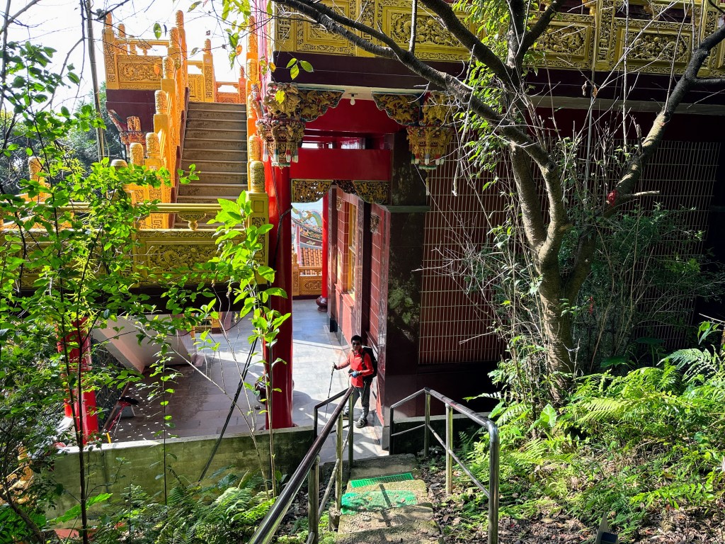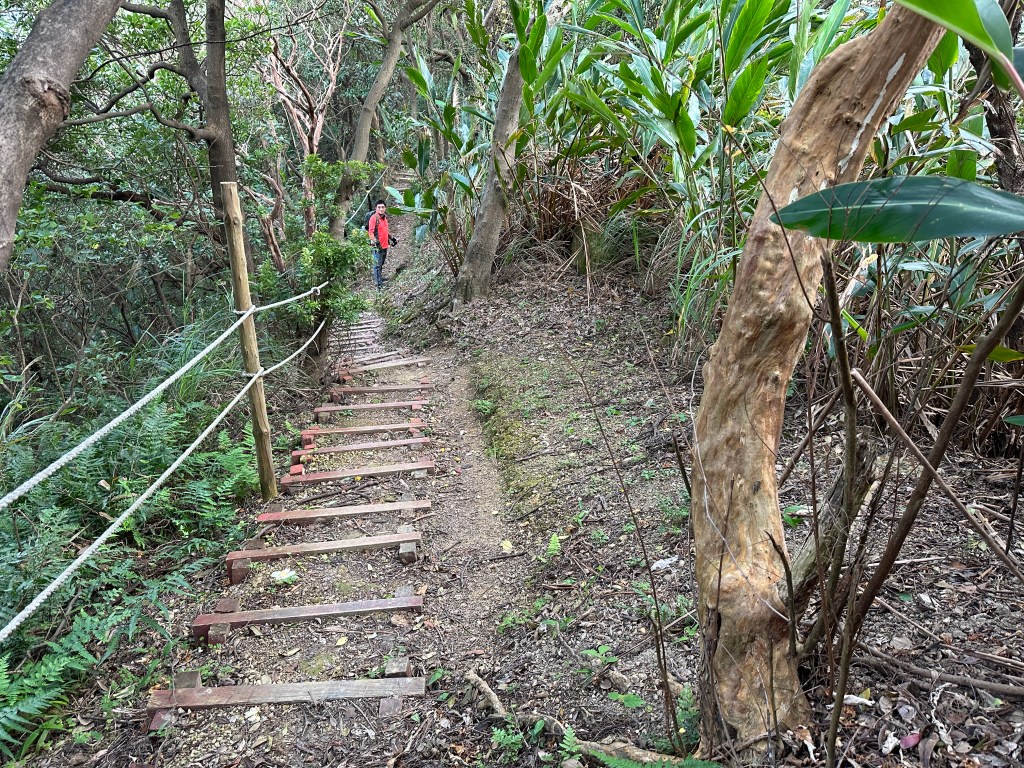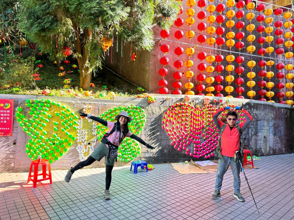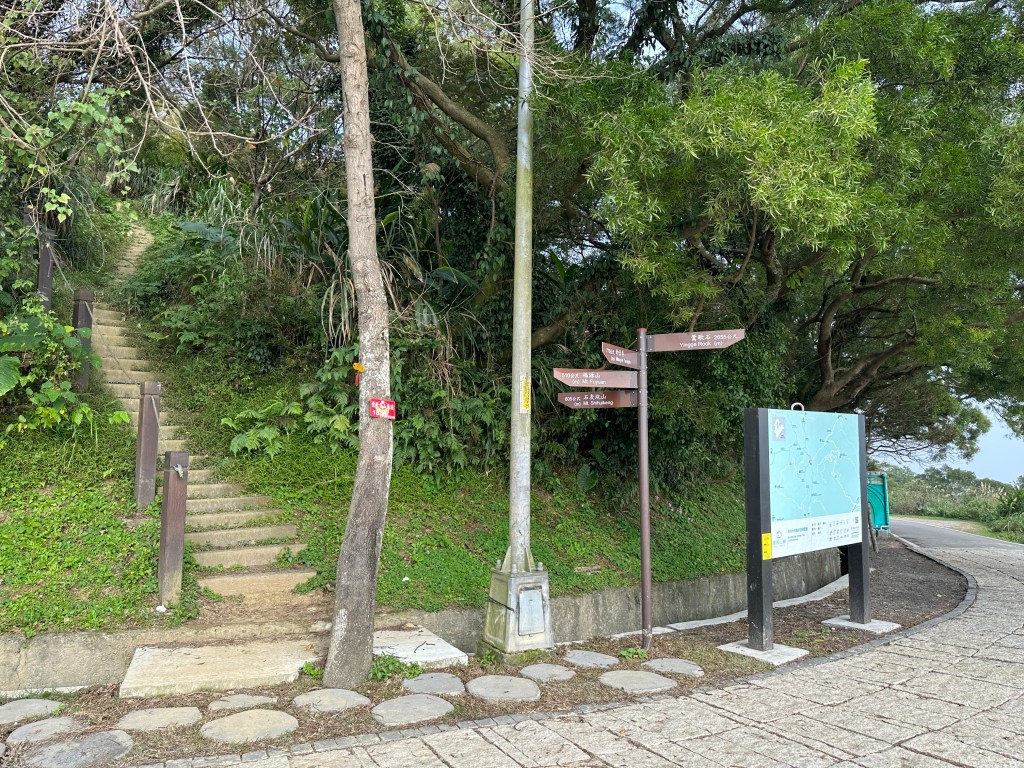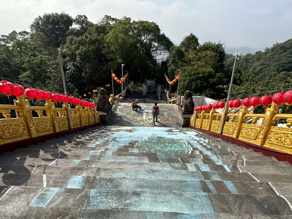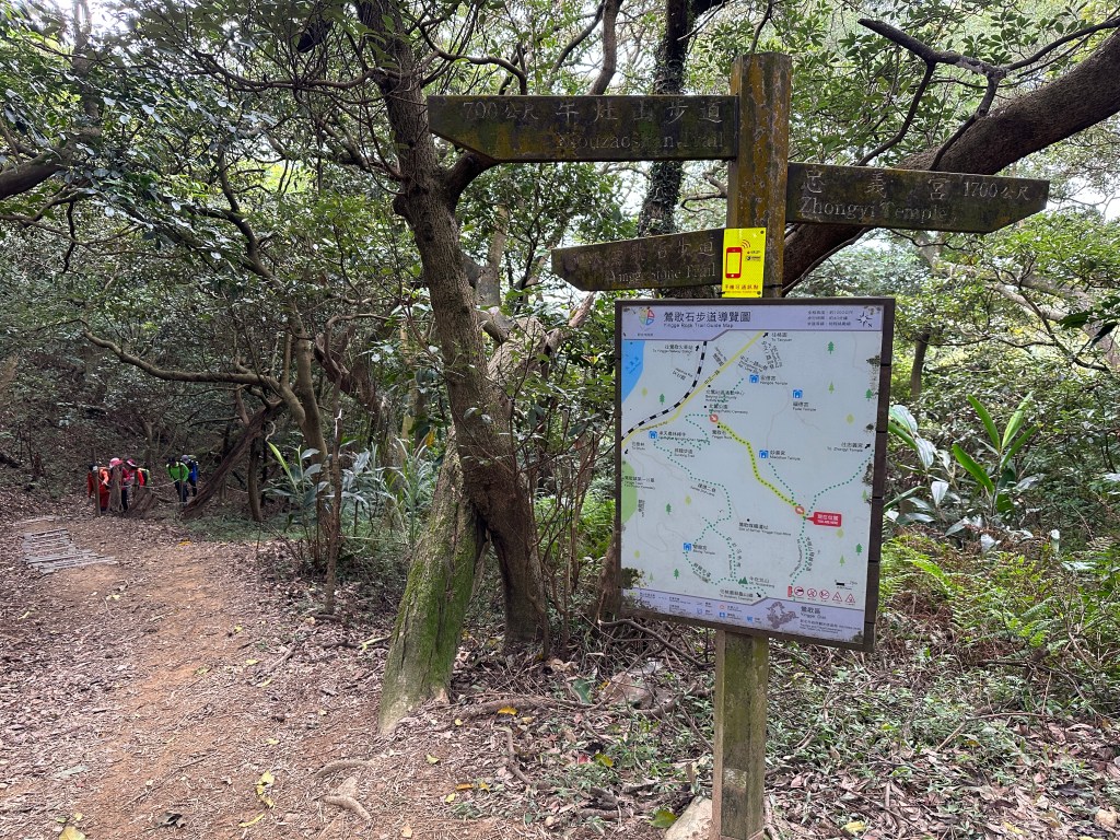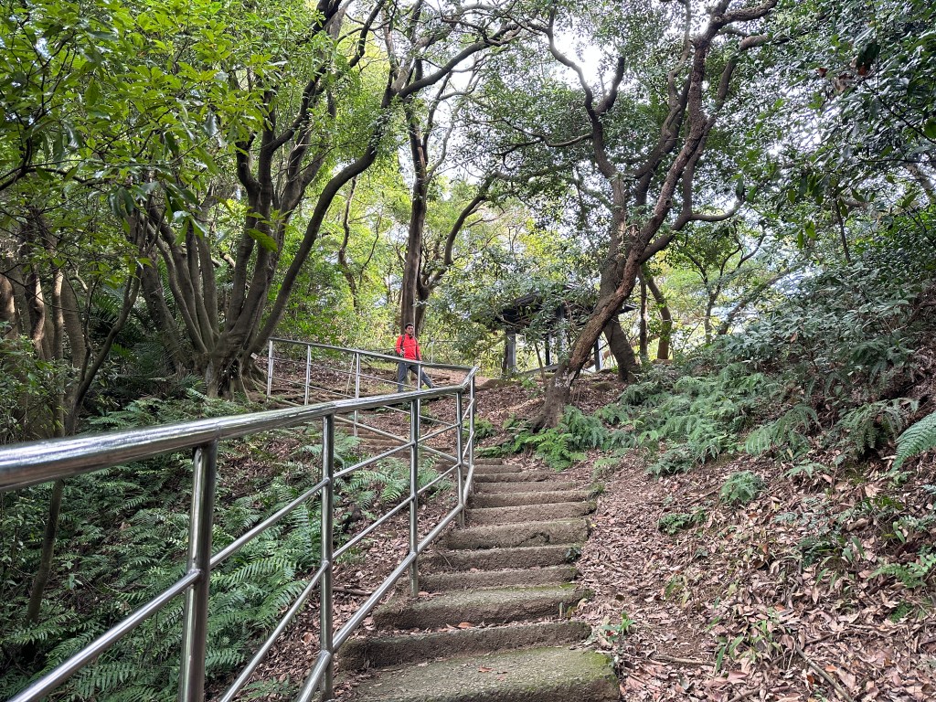 停好車後,由北鶯公園開始陡上往鶯歌石山,途中會經過鶯歌石,過鶯歌石山後還要持續陡上到將近海拔200m的高度,接著我們要往碧龍宮的方向走,由光明山稜線步道轉往二坑步道,陡下中會經過舊礦坑遺跡,一直陡下來到海拔約100m的玄門紫玄宮,再來就又開始陡上,陡上到高點後右岔駔100m可以來到一個觀景台,當然要去看一下,再原路回走接著陡下就會抵達碧龍宮,這裡有廁所也有自動販賣機,我們三人就在這裡投幣買了三瓶沙士!沒想到邊爬山還可以邊買可樂?