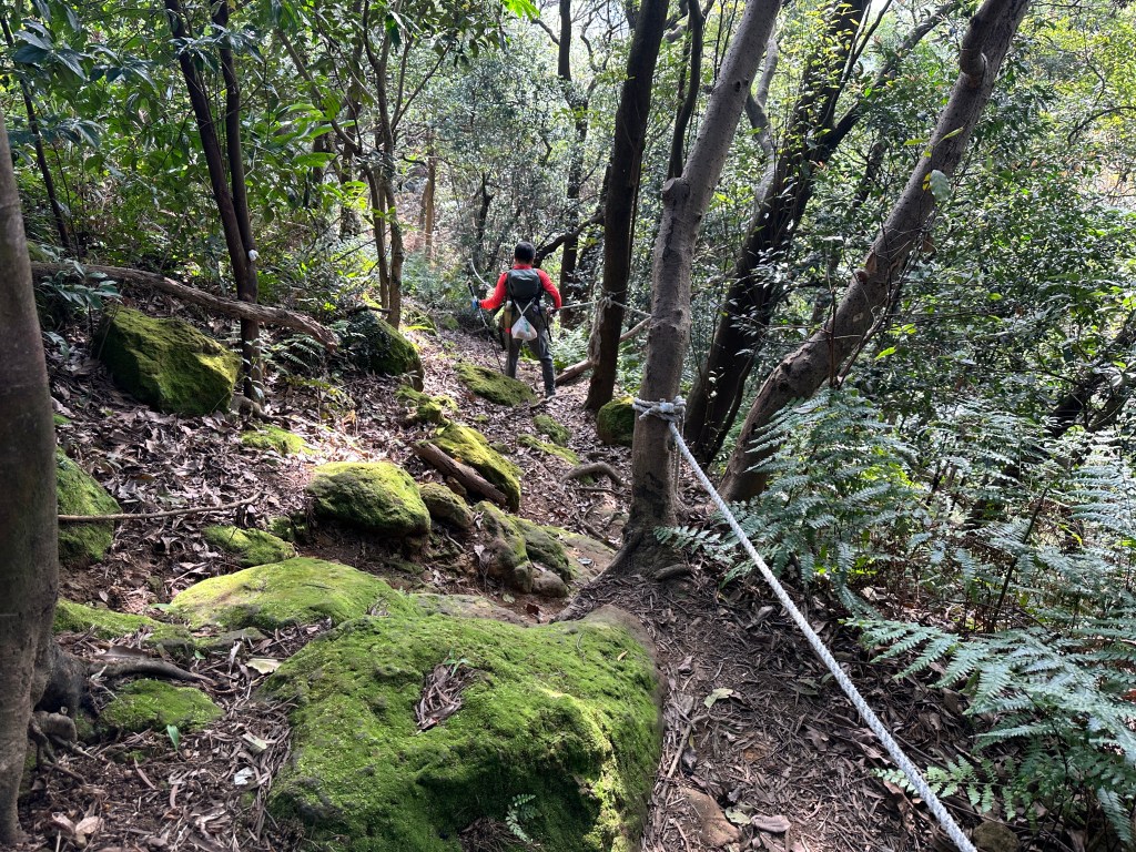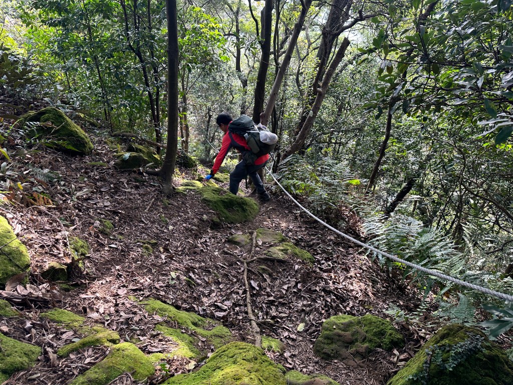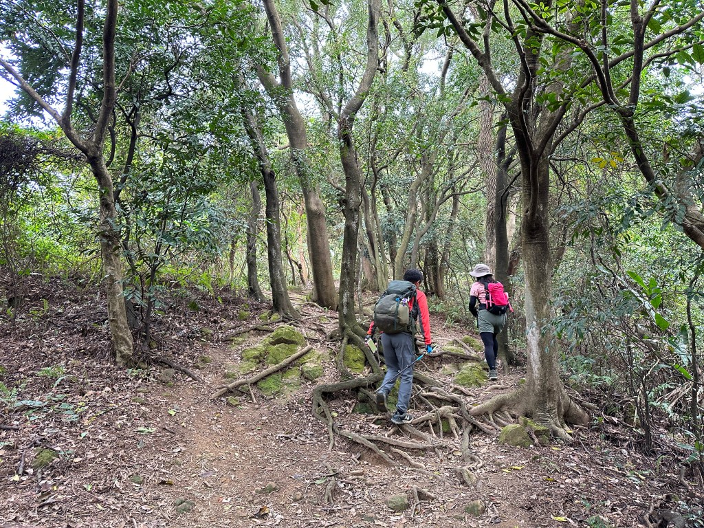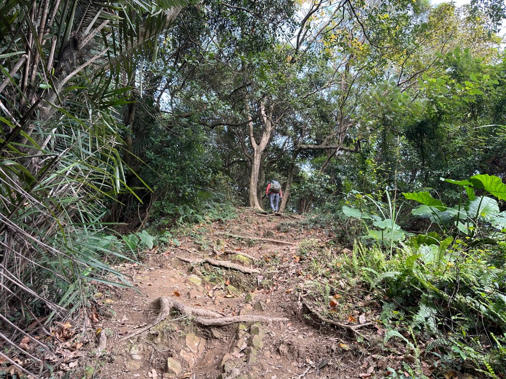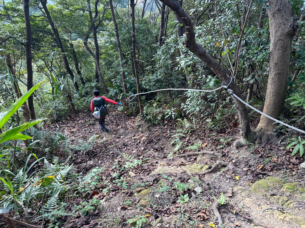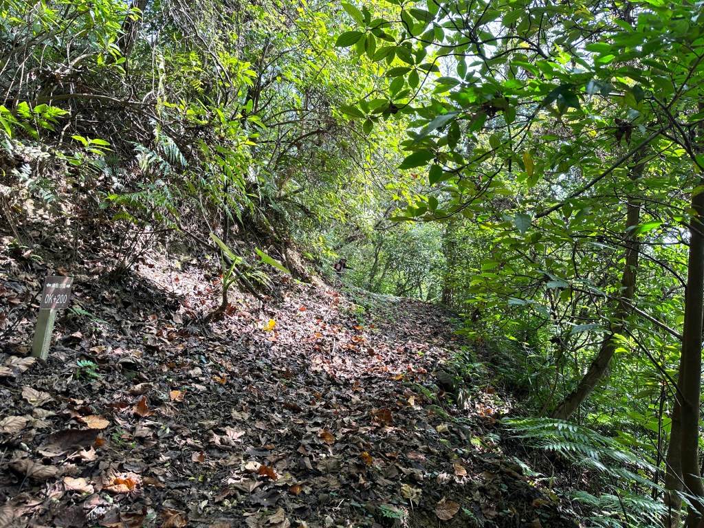 今日,垂直海拔差距只有309m,但是為了將13峰串連,過程中幾乎每次的陡上陡下就是要100m的高度,造成整個過程變得辛苦許多,這一天的累計爬升與累計爬降也都有超過1000m,但,好久沒有走像這樣優質的路線,整個路線沒有樹根沒有石塊只有落葉,大半的路徑也都寬大。
