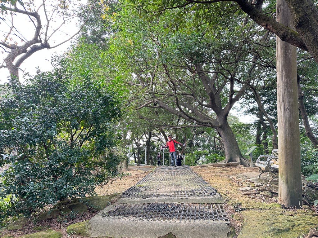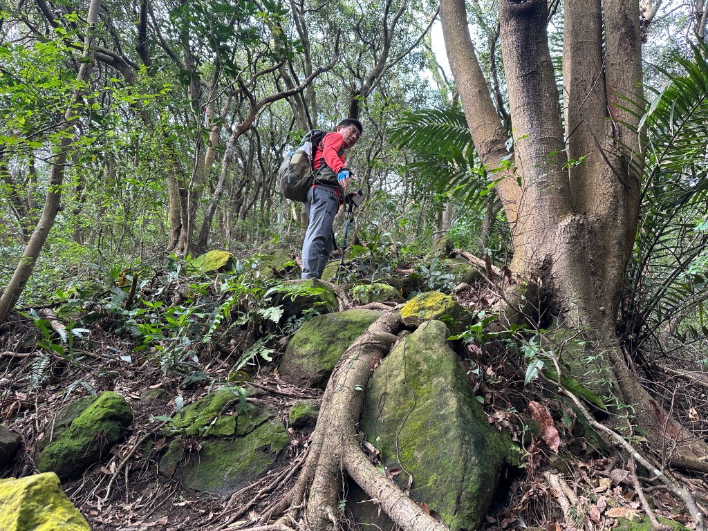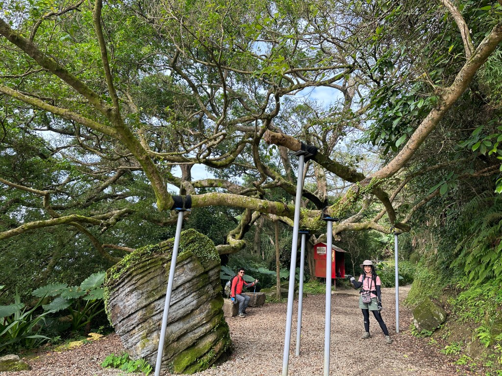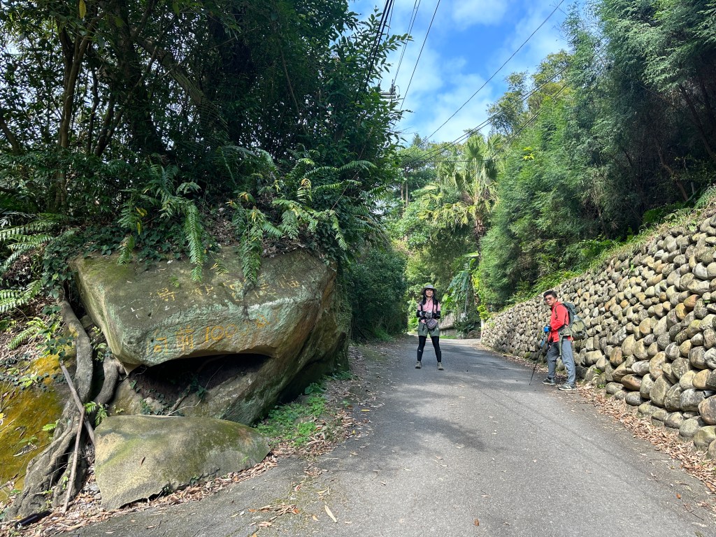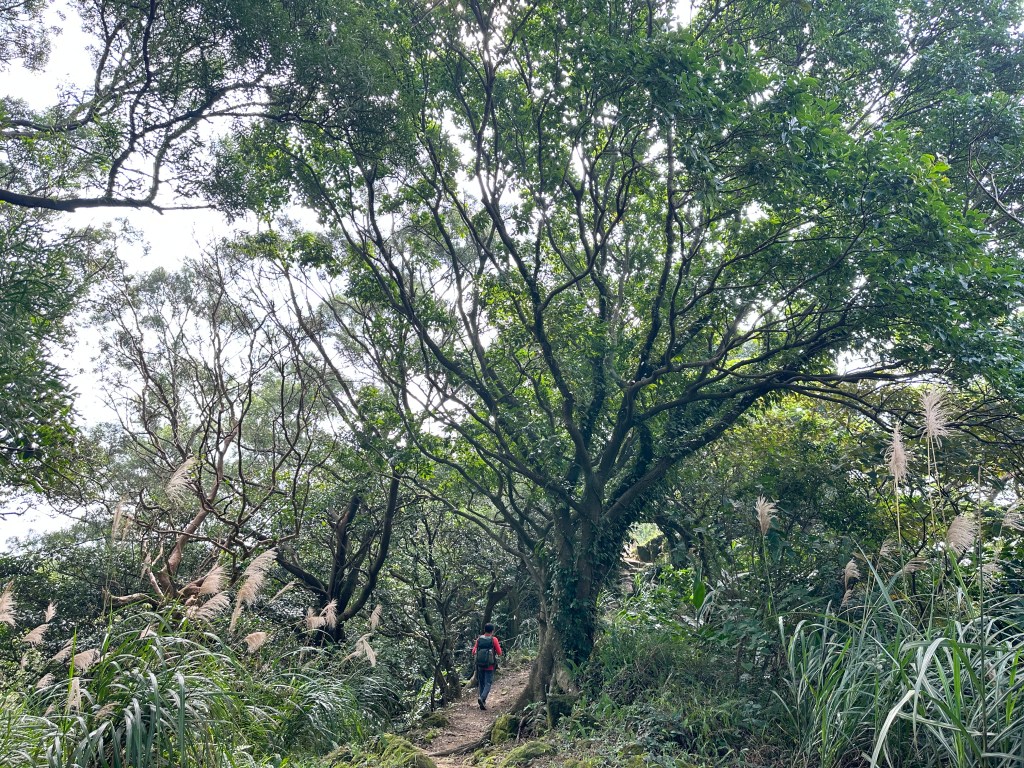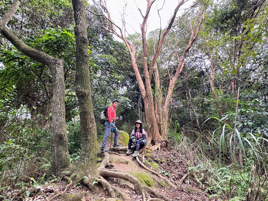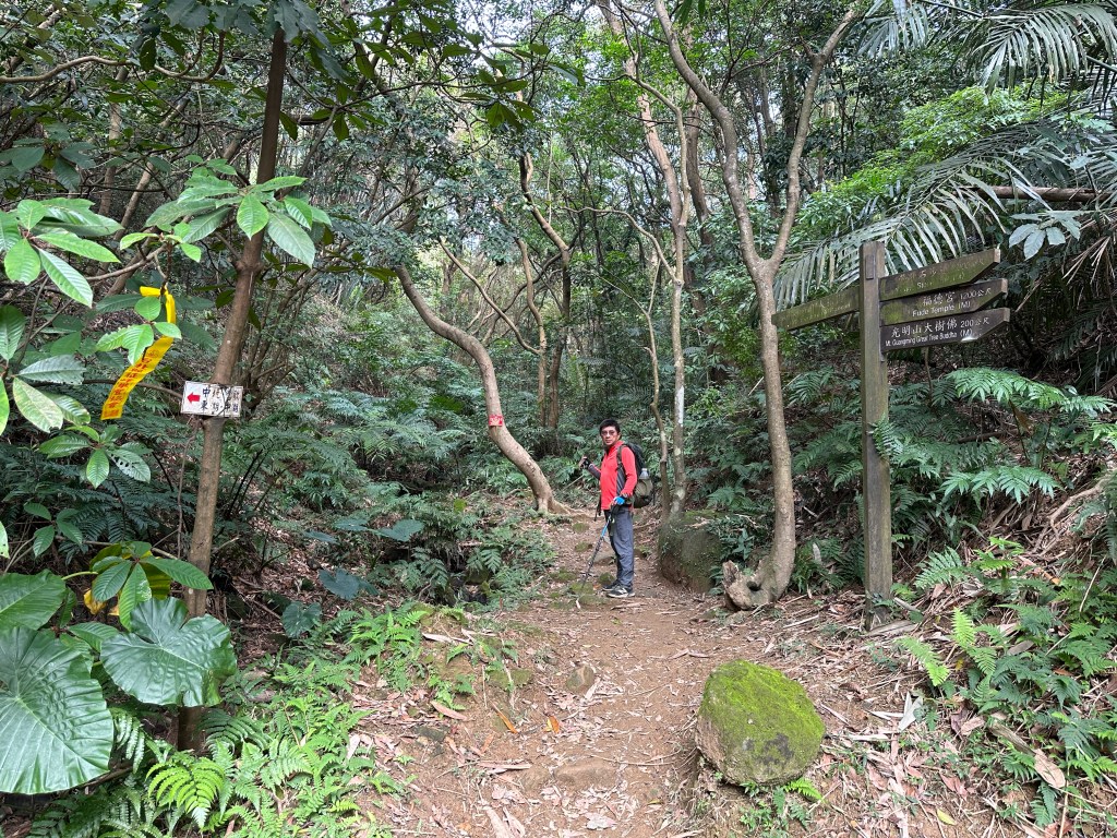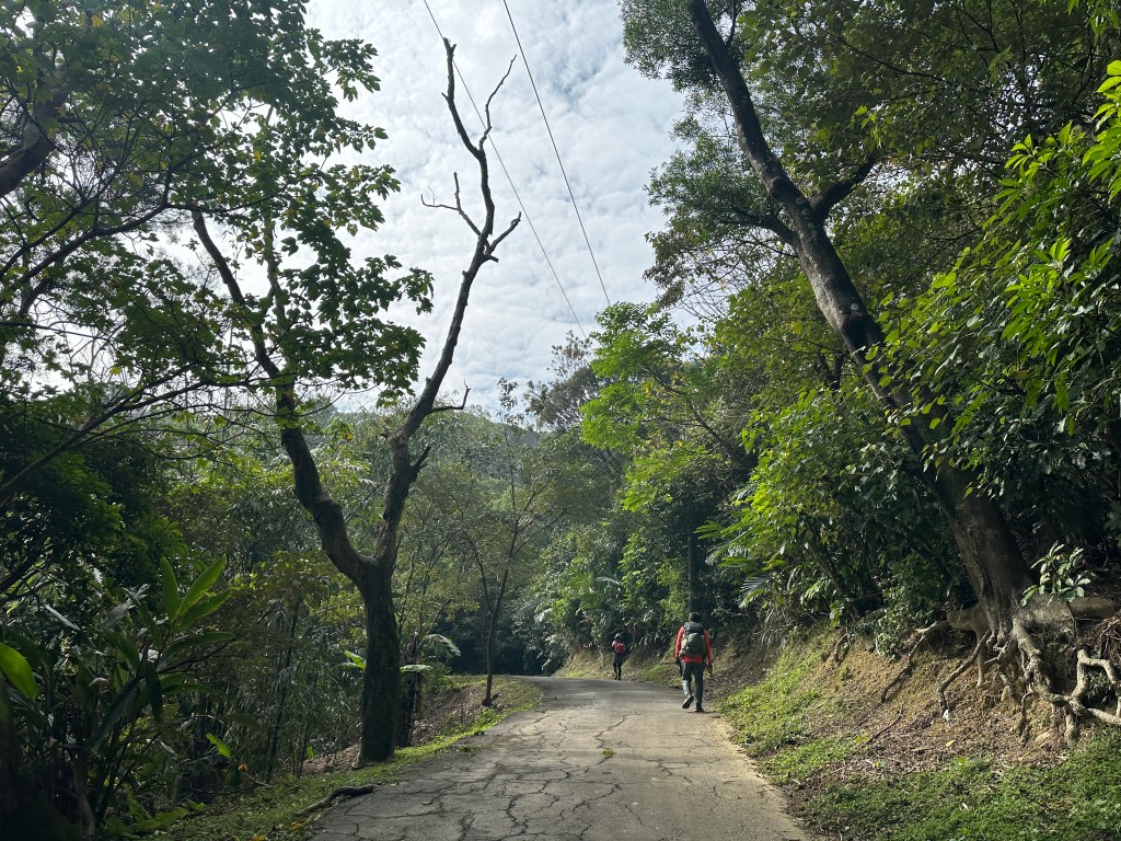 由阿南坑山回到光明山稜線步道後,繼續陡上即可接上產業道路,直走山路直上100m的距離可以通往望湖山,我們先往左100m去看百年大榕樹,接著就在此吃午餐,休息了將近半小時。