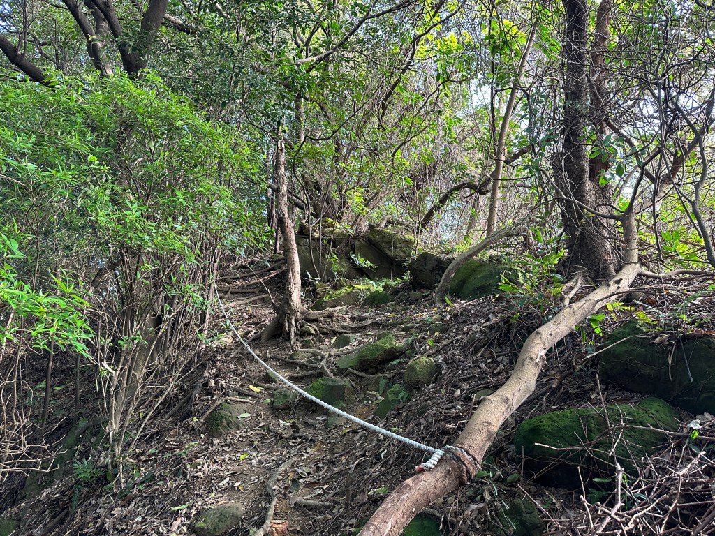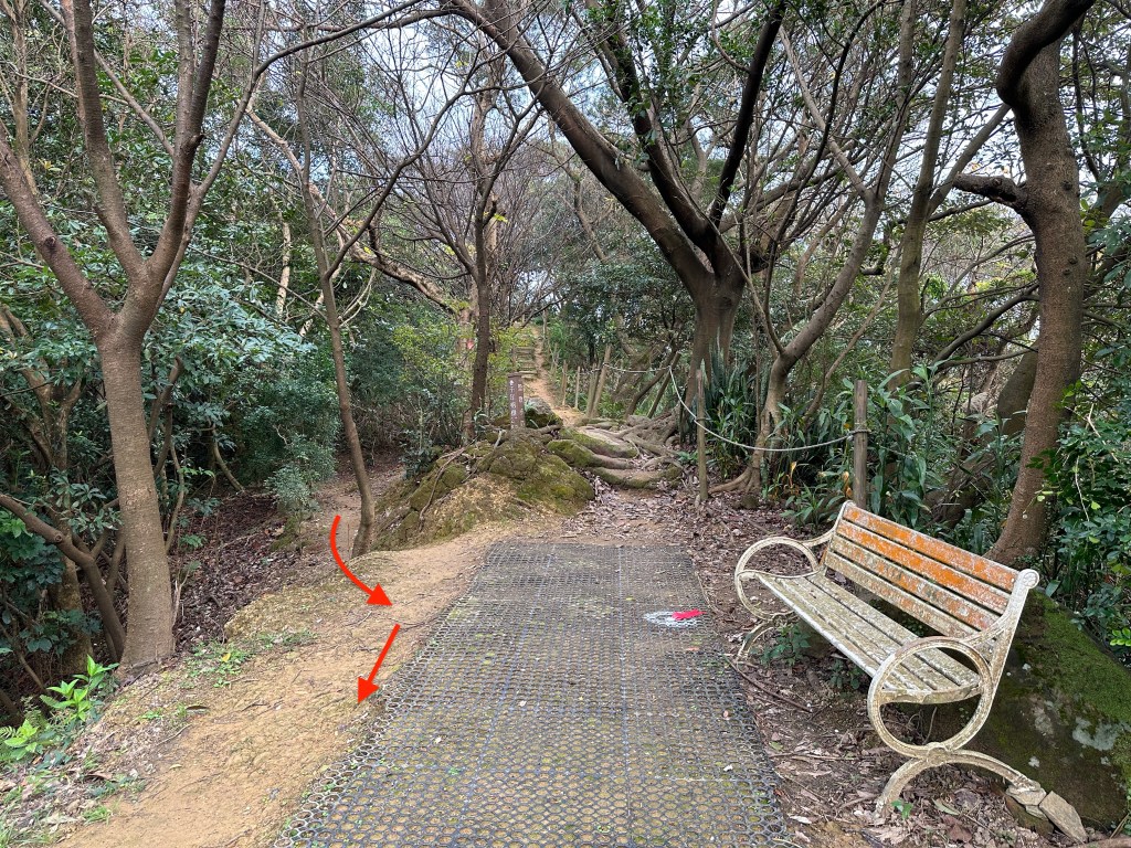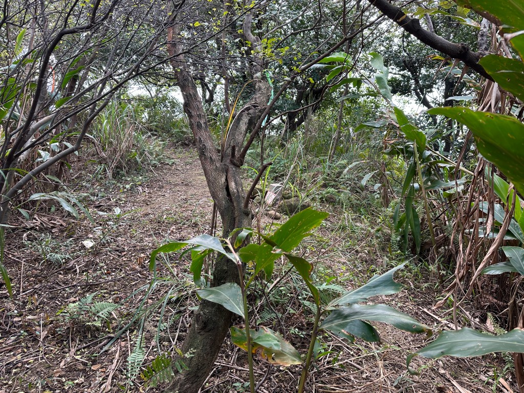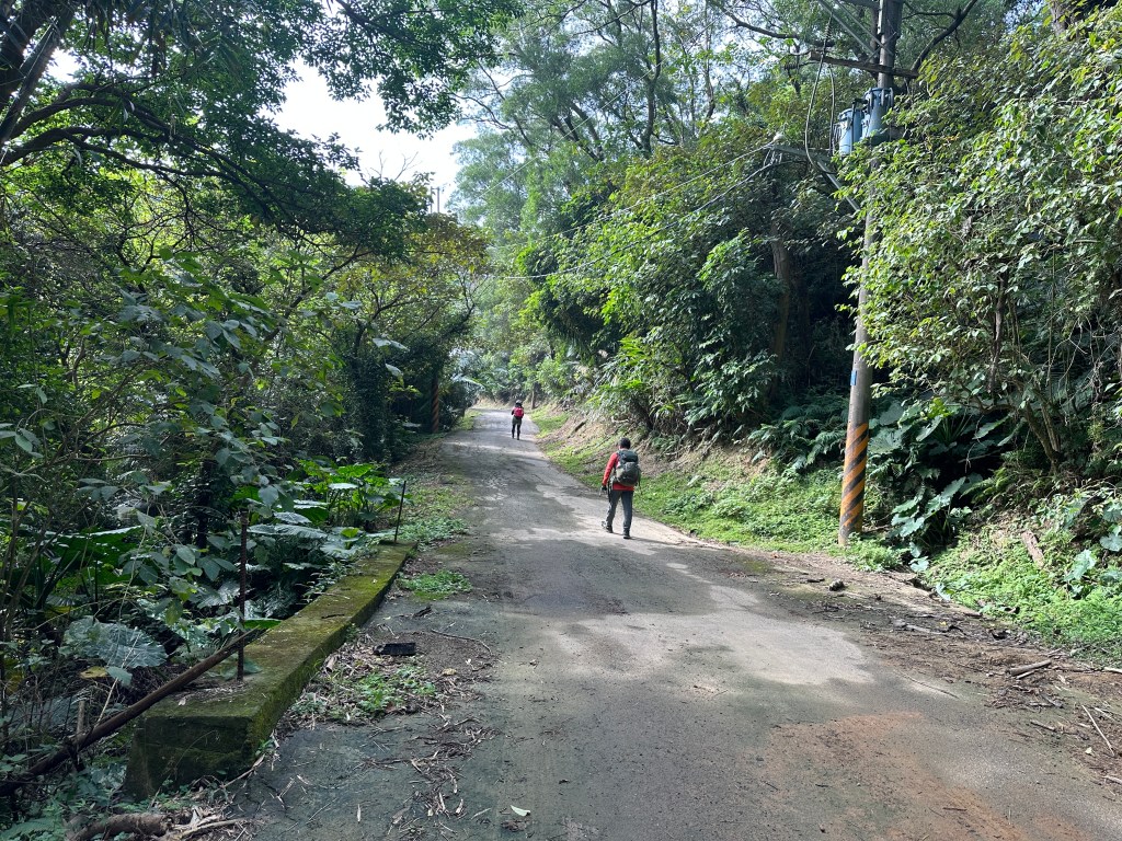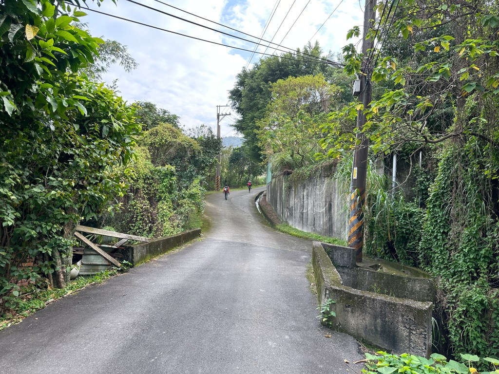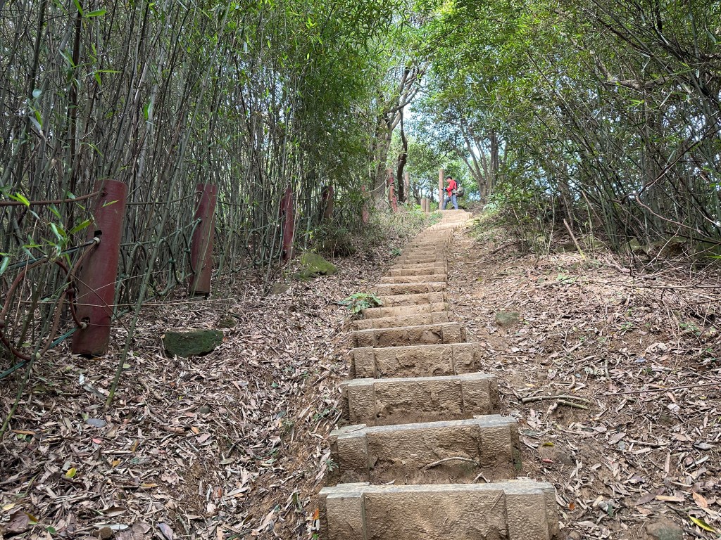 離開阿四坑山後繼續沿著山徑走,接上阿四巷後左轉沿著阿四巷往上走,看著離線地圖上有一條岔路可以接上牛灶山步道,取這一條捷徑走100m即可接上,這一條捷徑路上其實沒有路徑指標,但看得到上方的牛灶山步道,所以就由竹林內直穿就行。然後接上牛灶山步道後,左轉走200m即可抵達牛灶坑山。