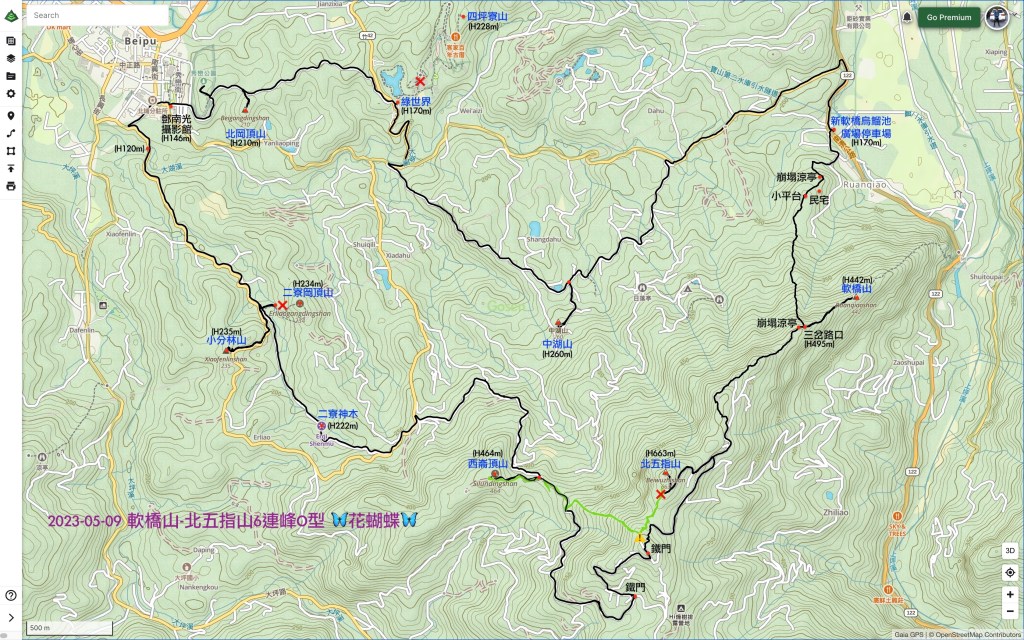 如果不喜好一日走過長的路線,也可以選擇只走軟橋山O型,並在資料庫中下載由鐮刀隊所走過的GPX檔案。
