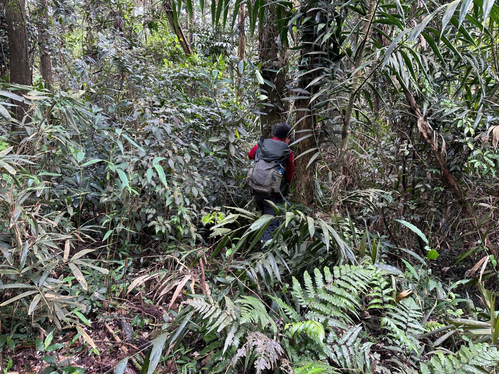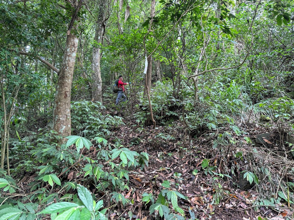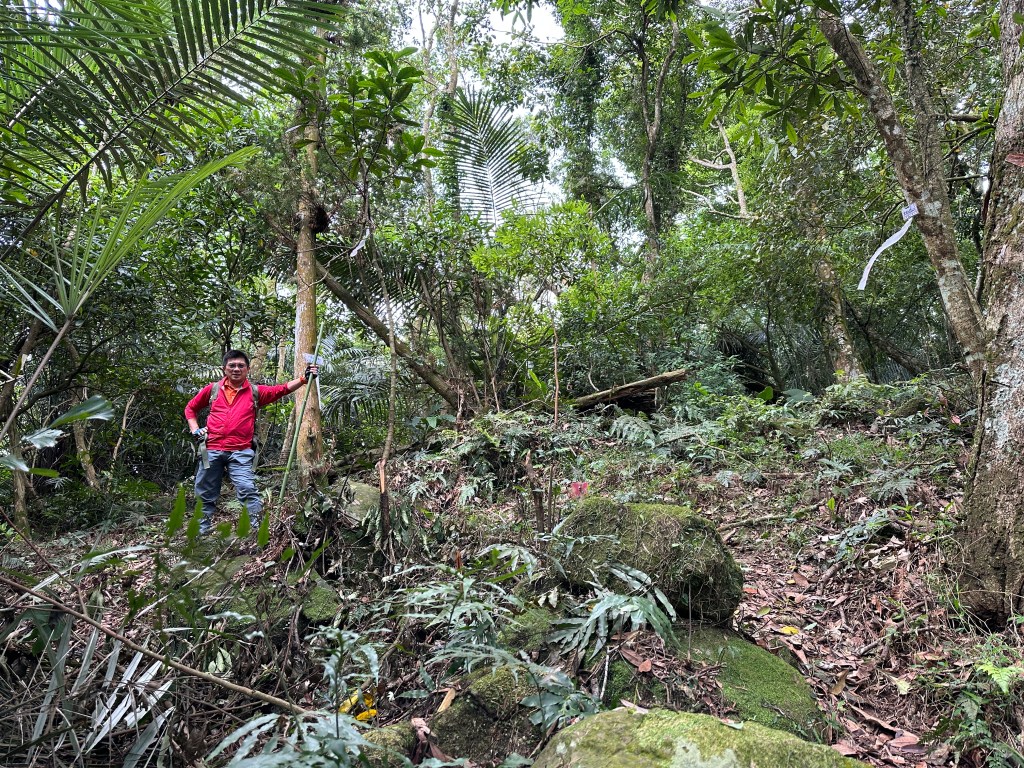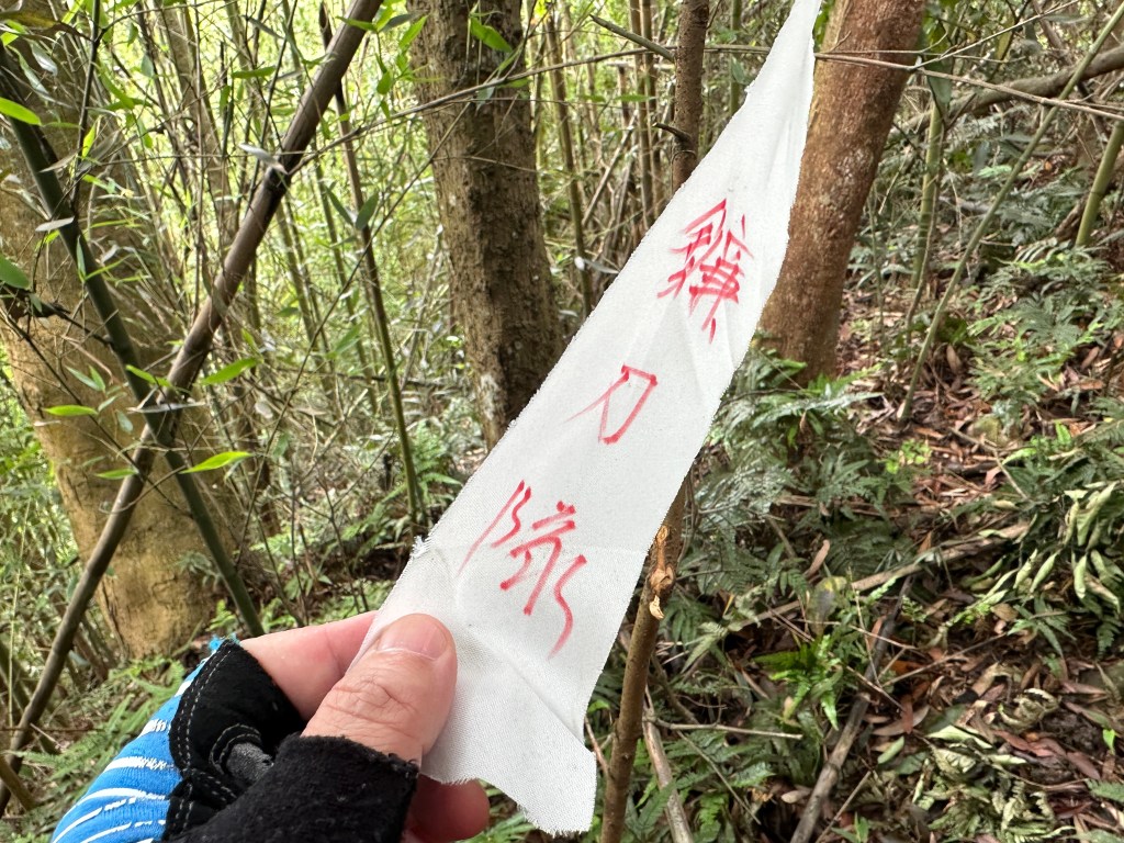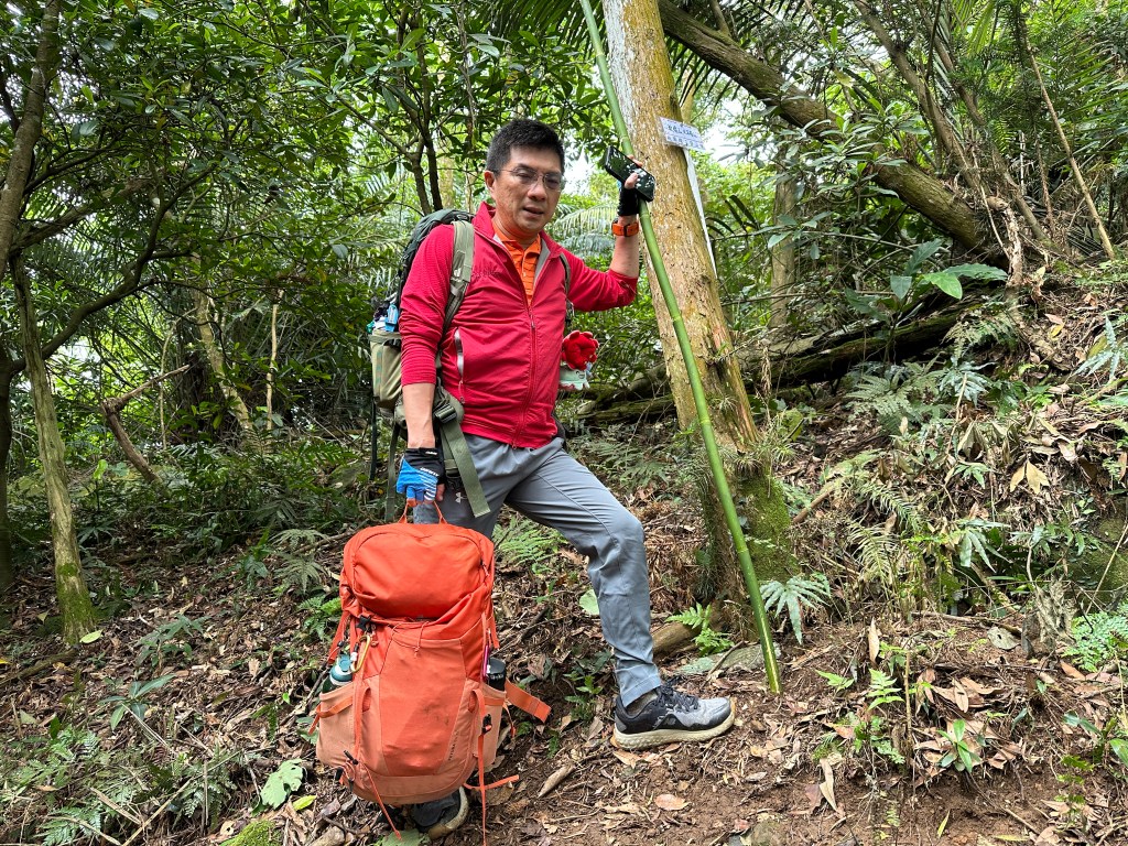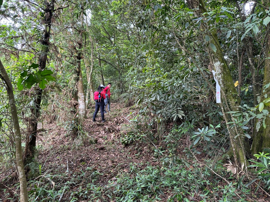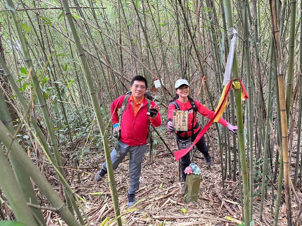 改往小分林山走,登山口亦是在產業道路旁,陡上,路徑超原始,僅有少數的布條,不好走但陡坡上有很多竹子可以扶持而上,我們也綁了幾條布條來加強指引路徑方向。
