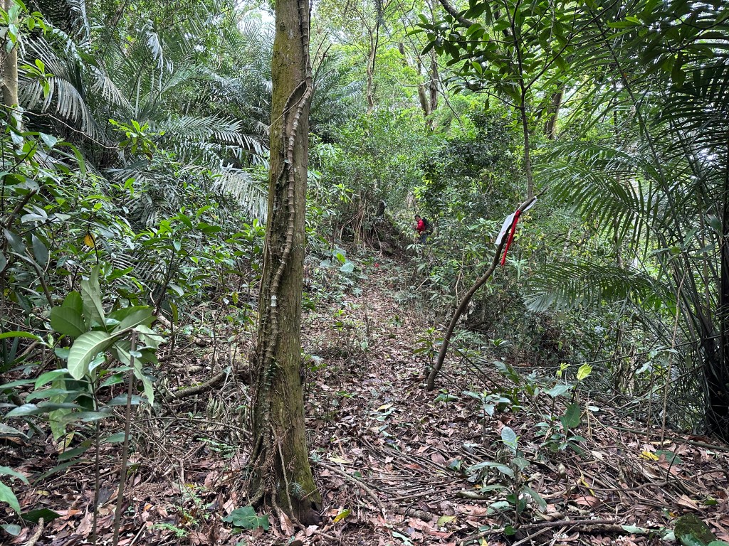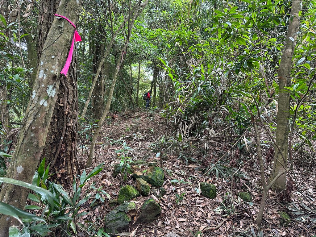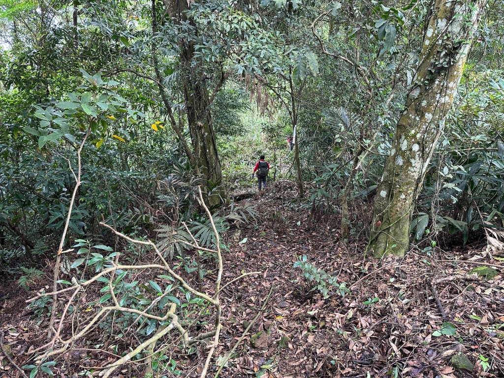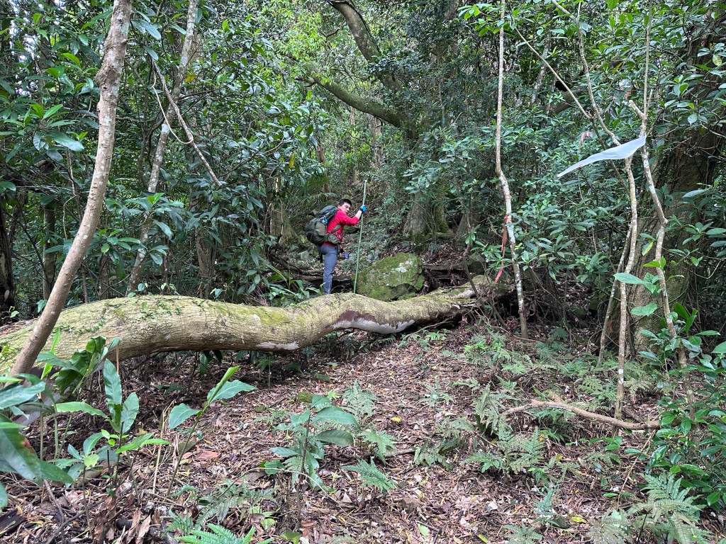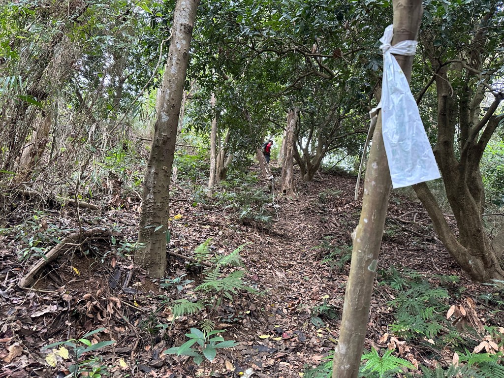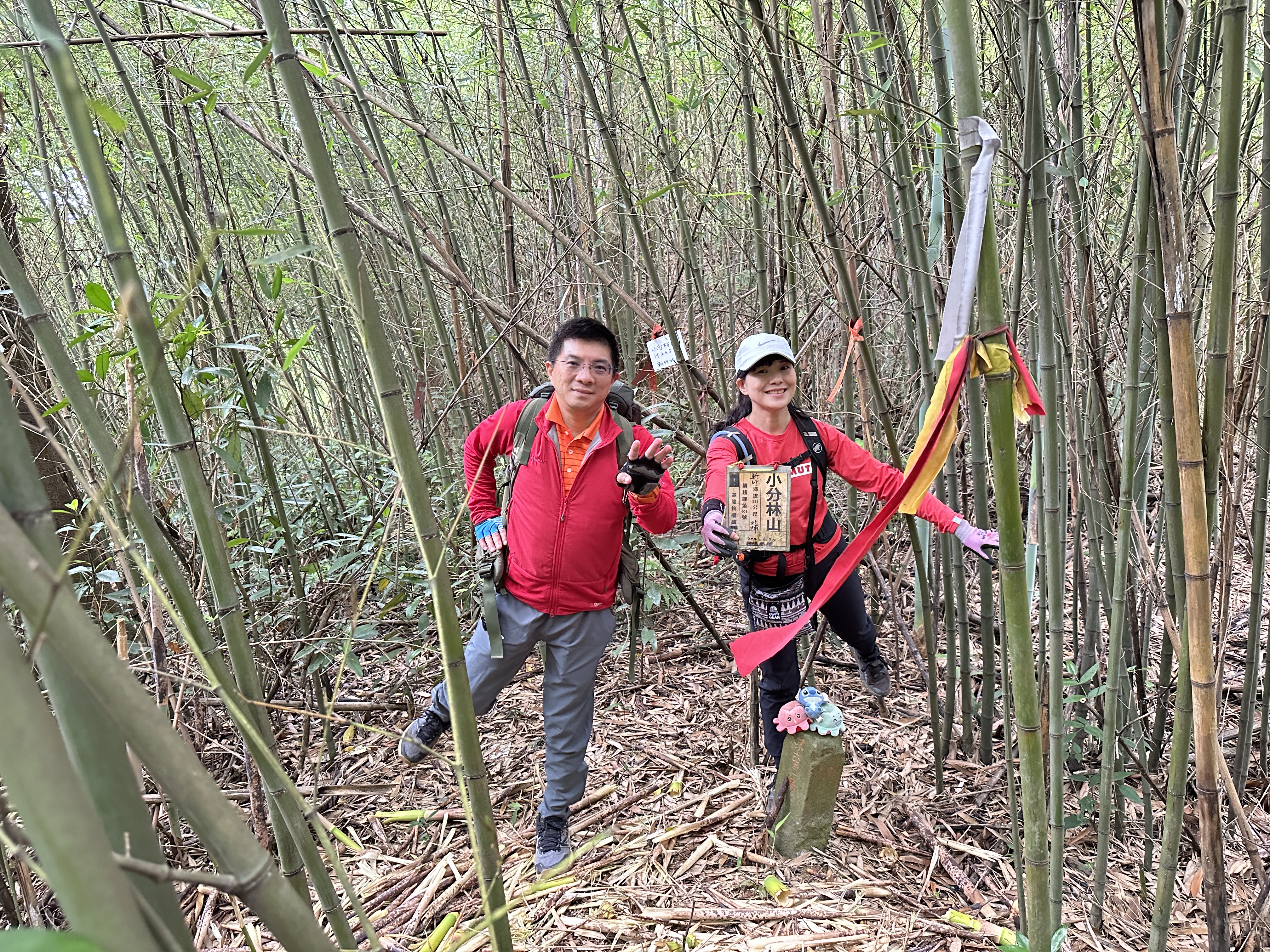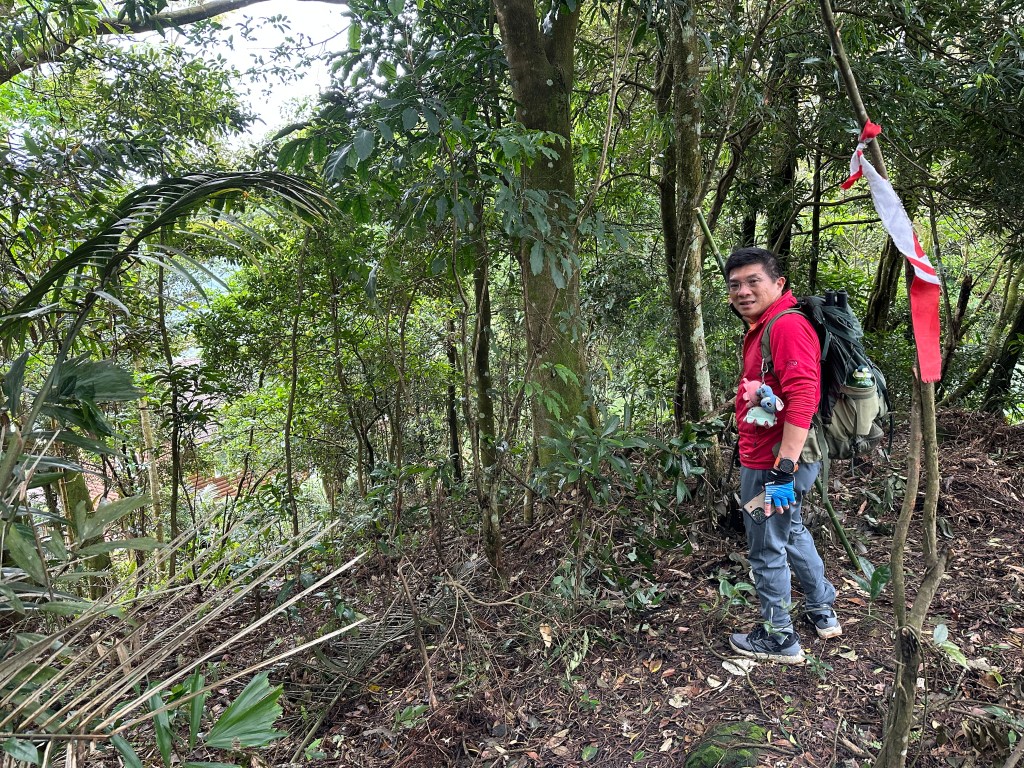 改往小分林山走,登山口亦是在產業道路旁,陡上,路徑超原始,僅有少數的布條,不好走但陡坡上有很多竹子可以扶持而上,我們也綁了幾條布條來加強指引路徑方向。