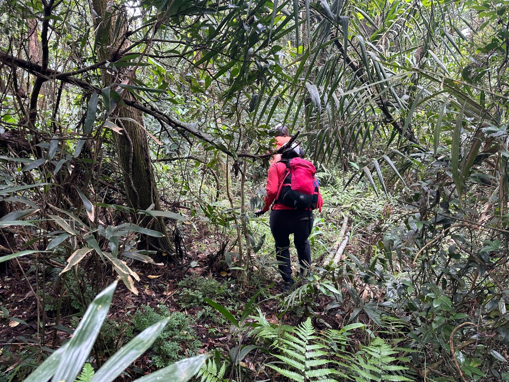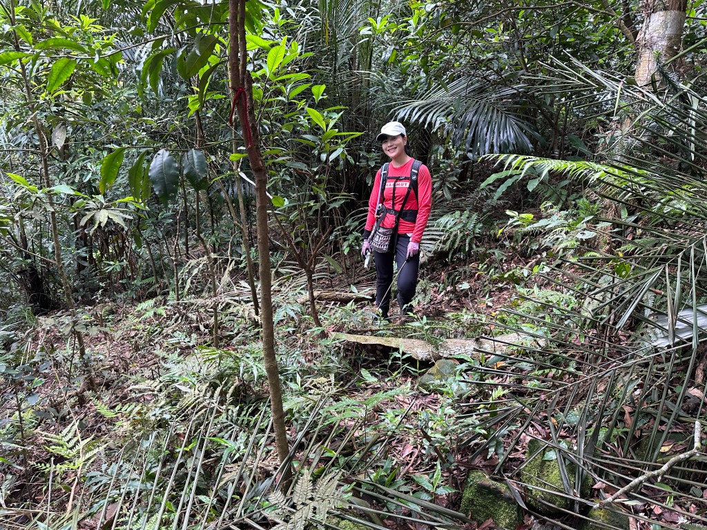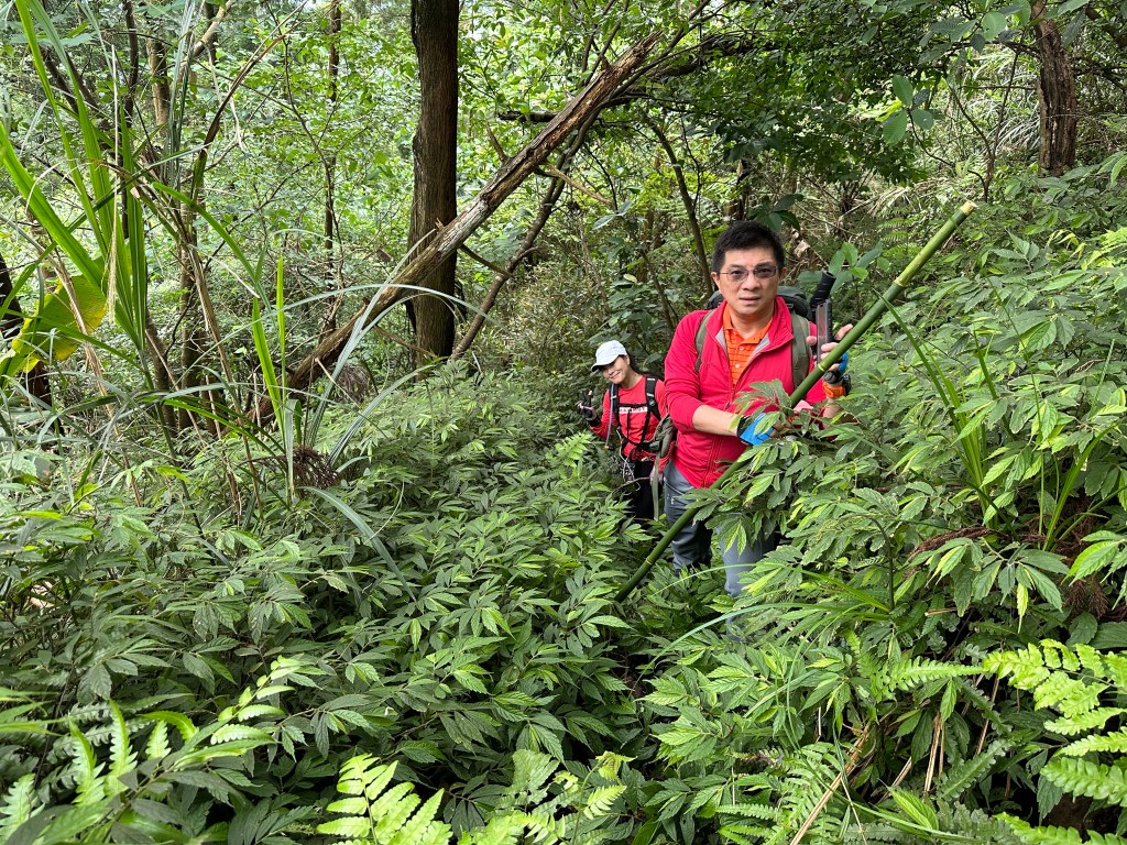 但我們一進入稜線路,就進入了大量黃藤纏身的窘境,Smile還拿出鐮刀要我努力砍路,她自己也拿出䥥刀猛砍,喔!真是神力女超人!我突然覺得我也是鐮刀隊的一員了!那這樣今天的行程也就只能到此!沒有辦法再繼續後面的行程。