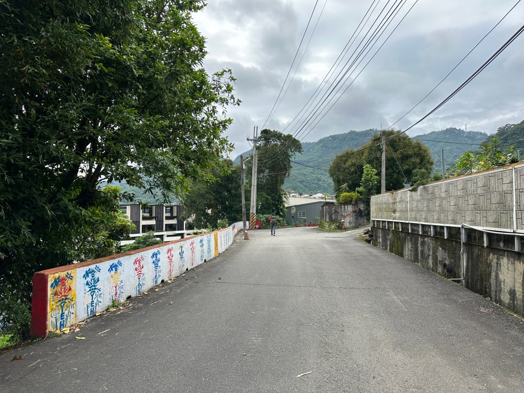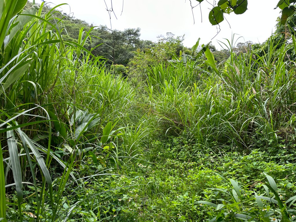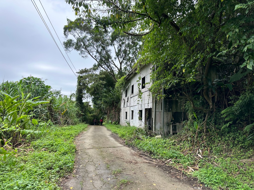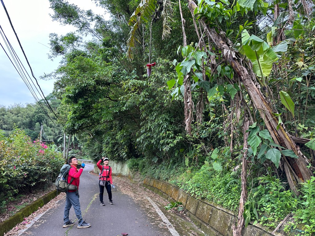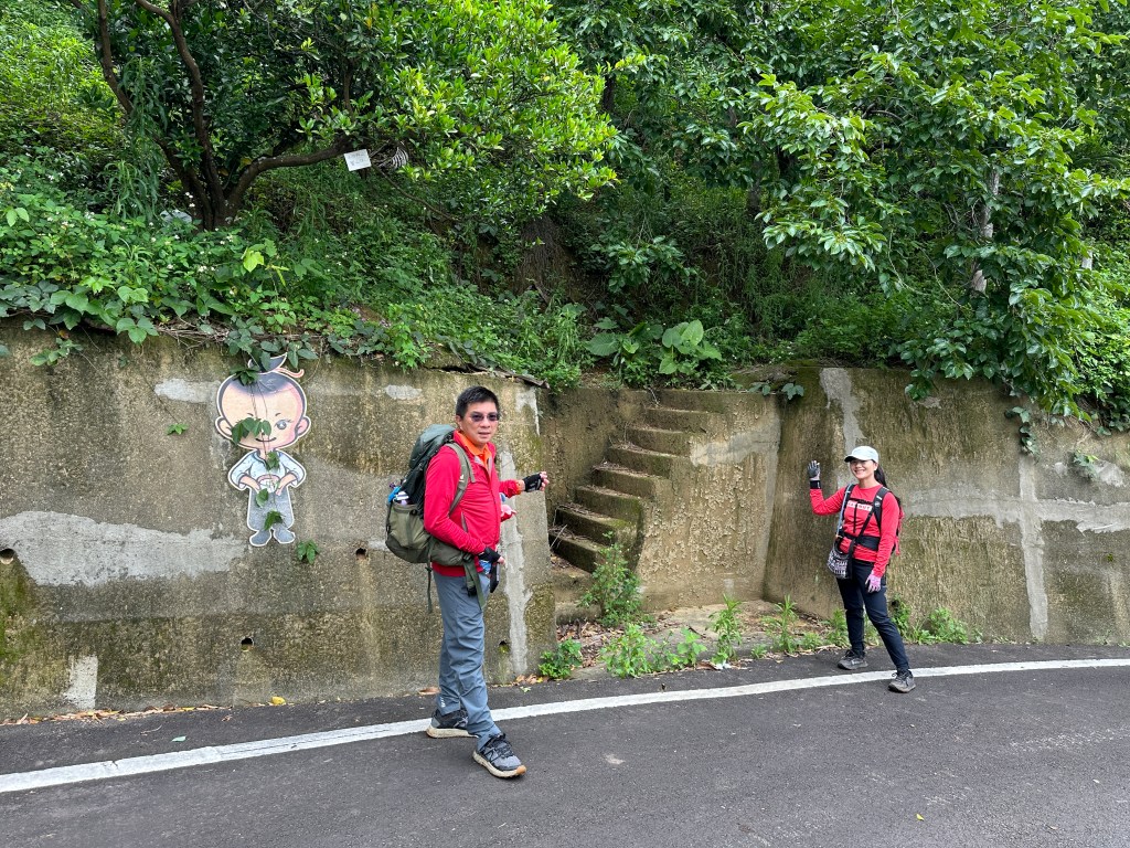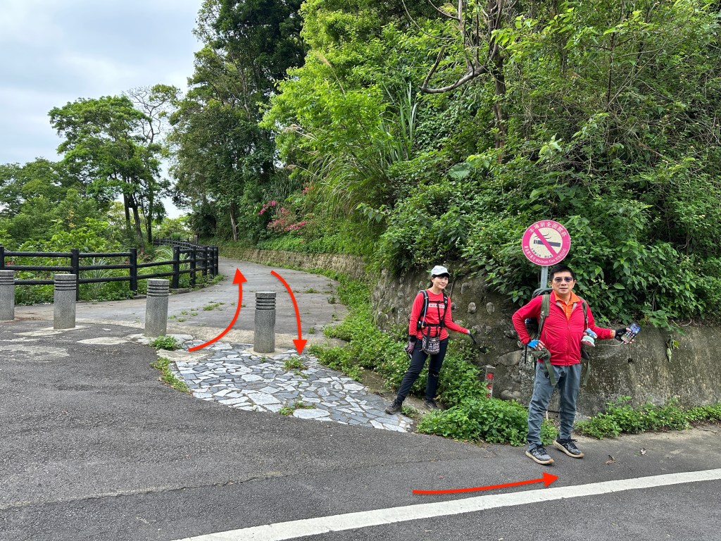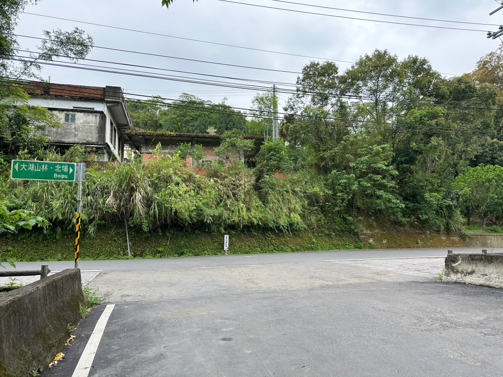 非常難走,陡上後發現還真的可以接上產業道路,往左走100m就看到前方有鐵門,但鐵門留了一個人可以通過的門縫,這感覺上,就是我們是走在人家的社區內?出了鐵門,接著,沿著產業道路一路陡下要往四崙頂山方向走,走了約800m後,