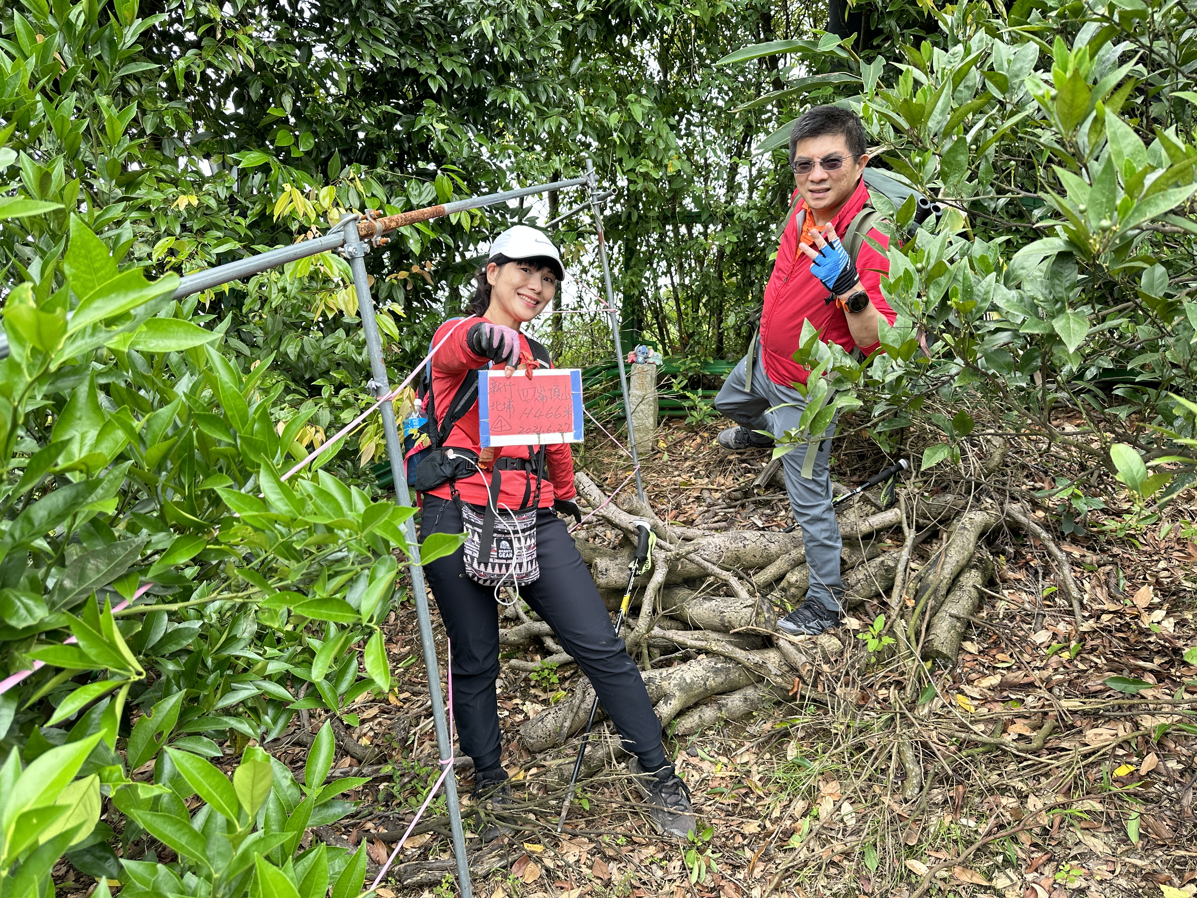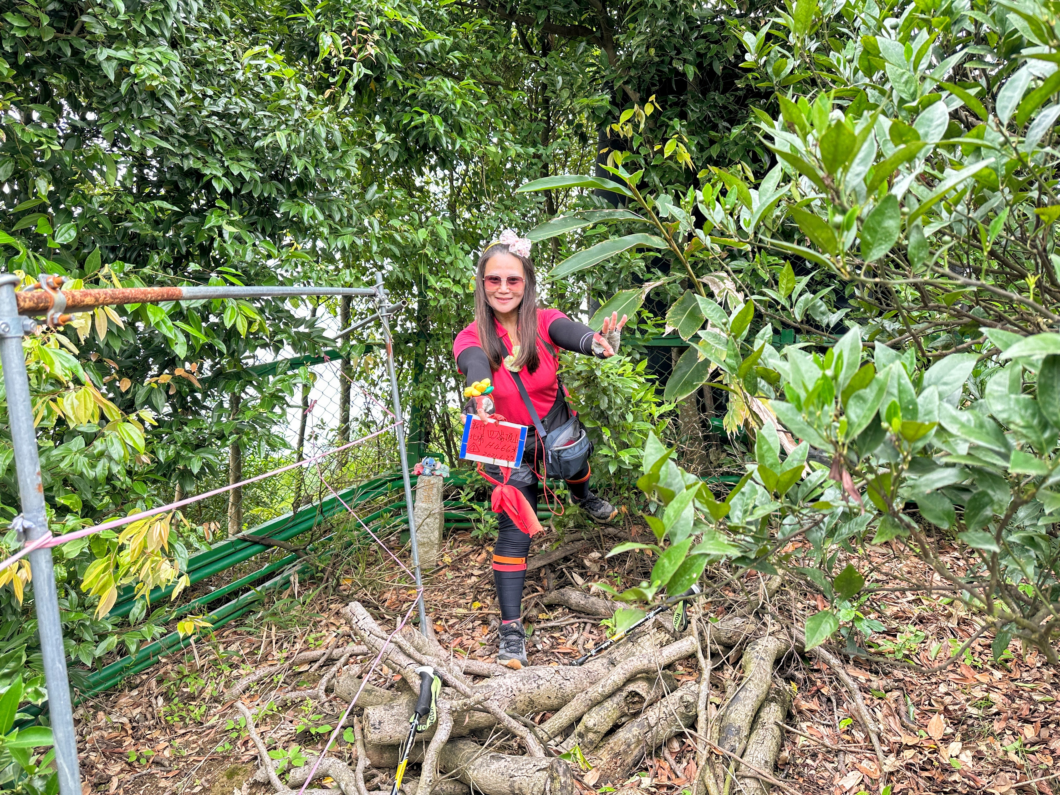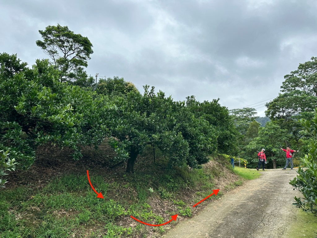 原本想放棄了!結果,Smile就沿著民宅的鐵網繞了一小圈,就給她看到了在橘子園裡最深處的三角點!真是,三角點達人,這樣也能找到!?