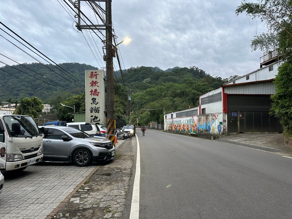 此時發現,這個停車場已經停了滿滿的汽車?為何呢?因為隔壁是新軟橋烏鰡池,好多人在此時正在釣魚!