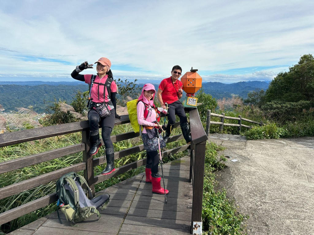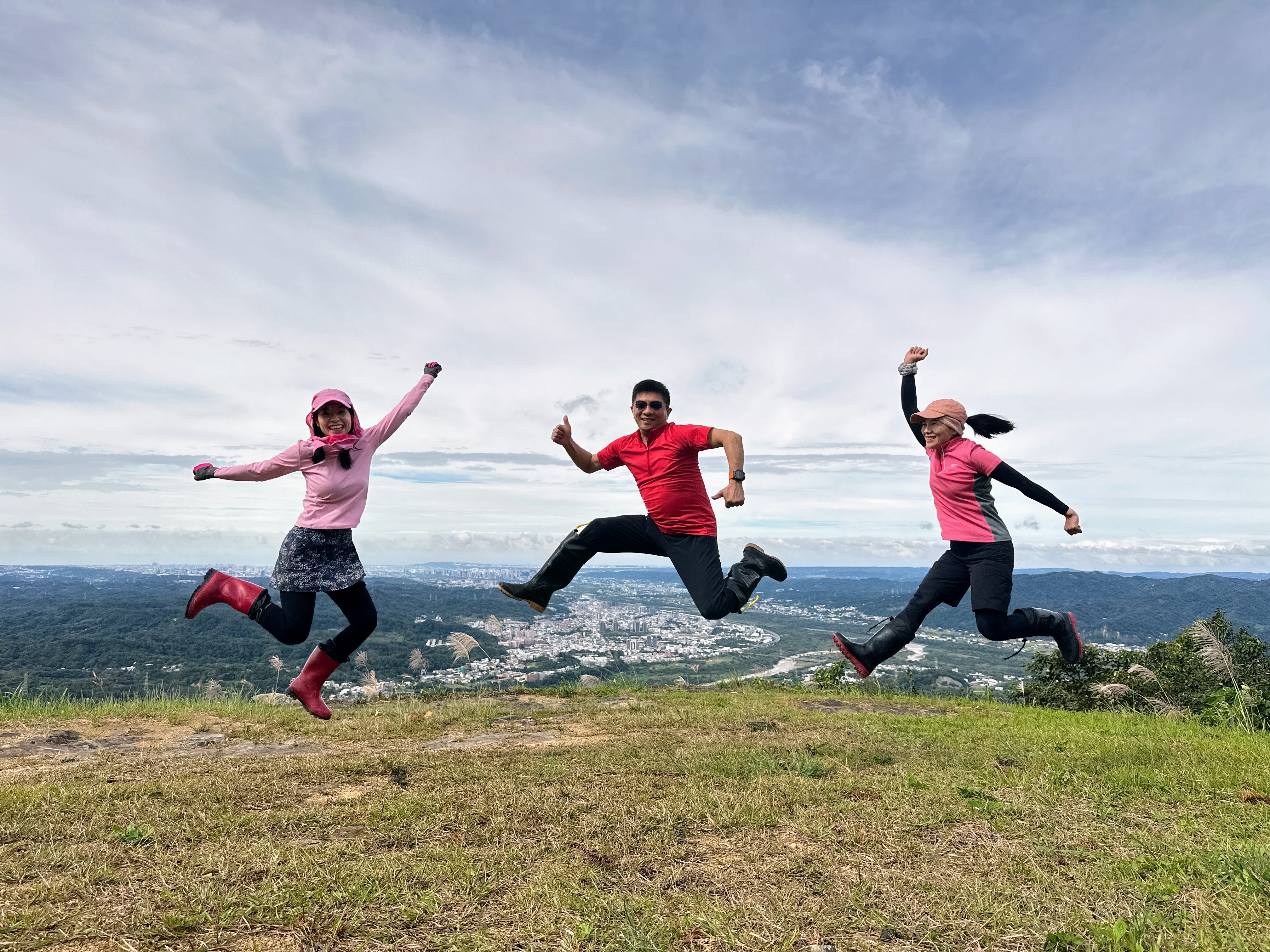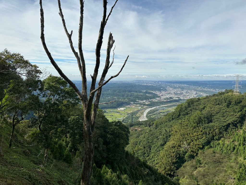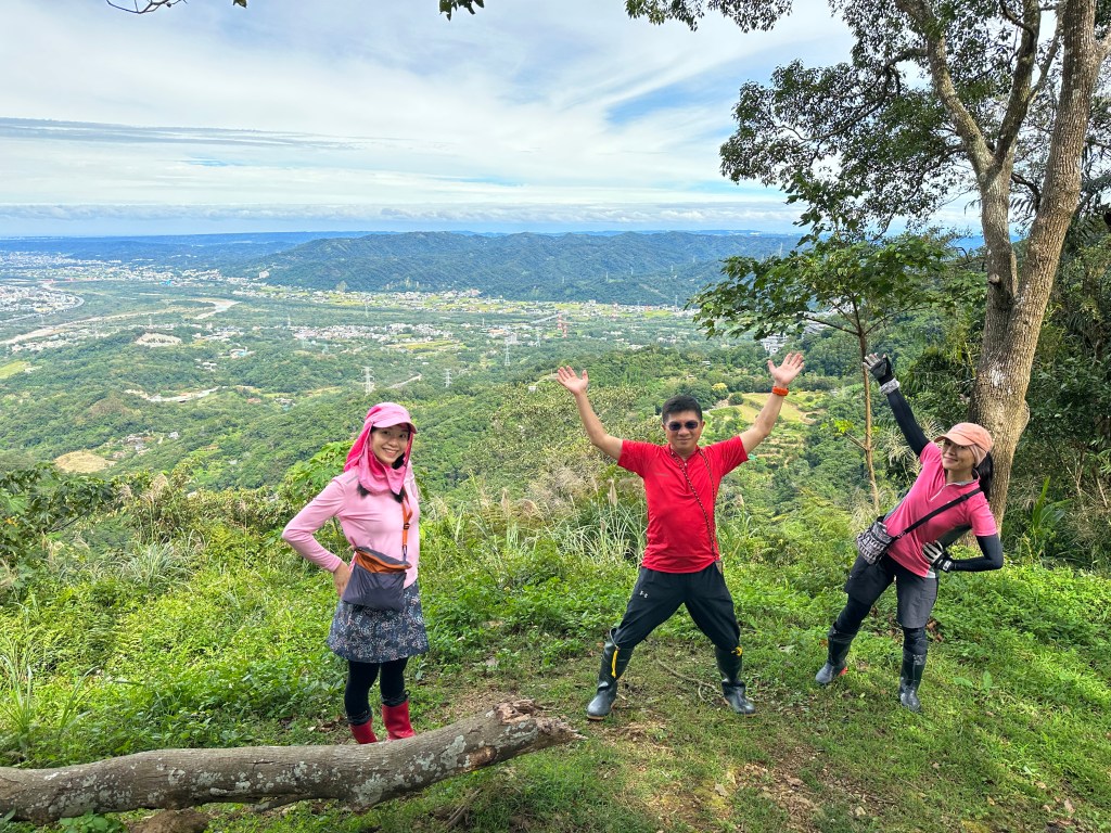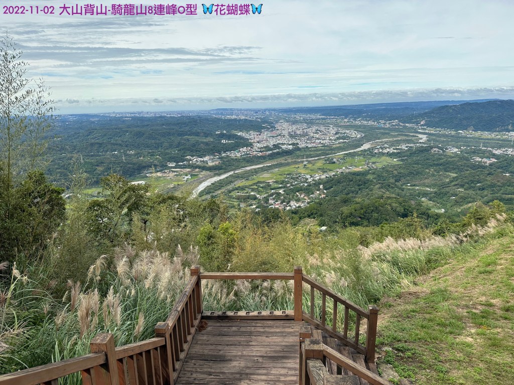 今天的行程,是由新竹縣橫山鄉樂善堂開始起登,行走大崎崠登山步道,沿著階梯步道一路陡上,在1.5K的距離裡陡上海拔450m的高度來到大山背山,這裡是一處展望很好的山頭,抵達後才發現實際上開車也可以上來。