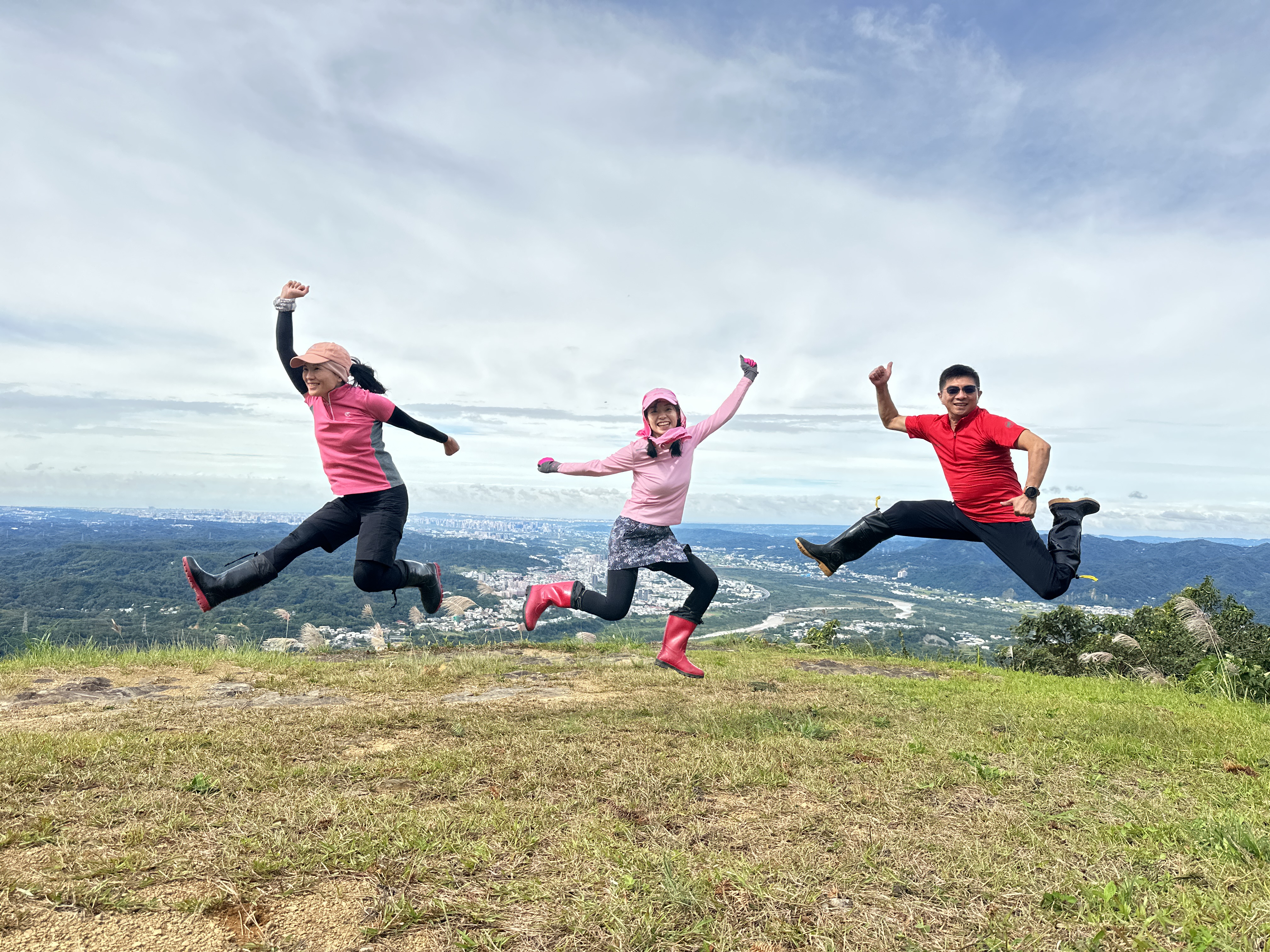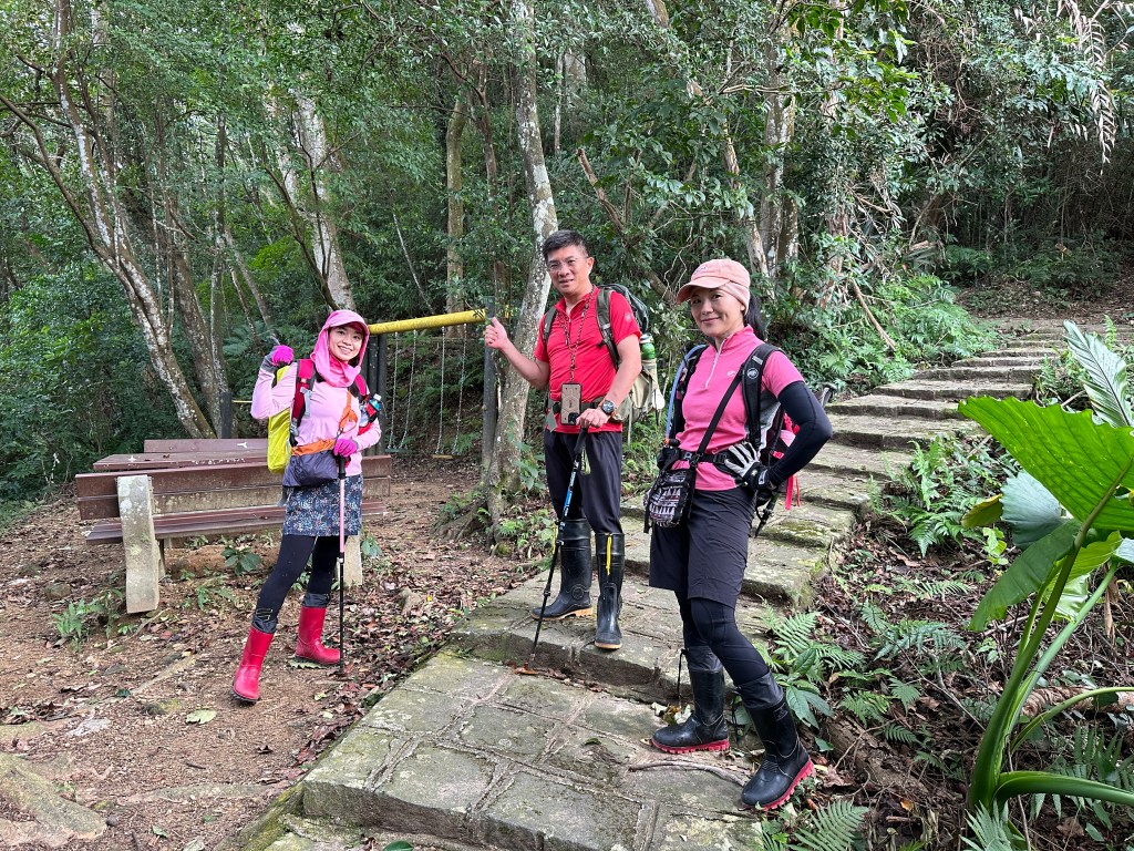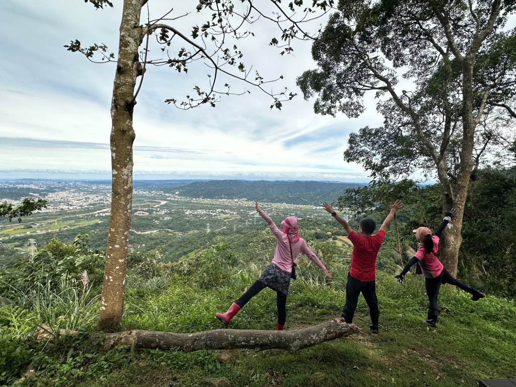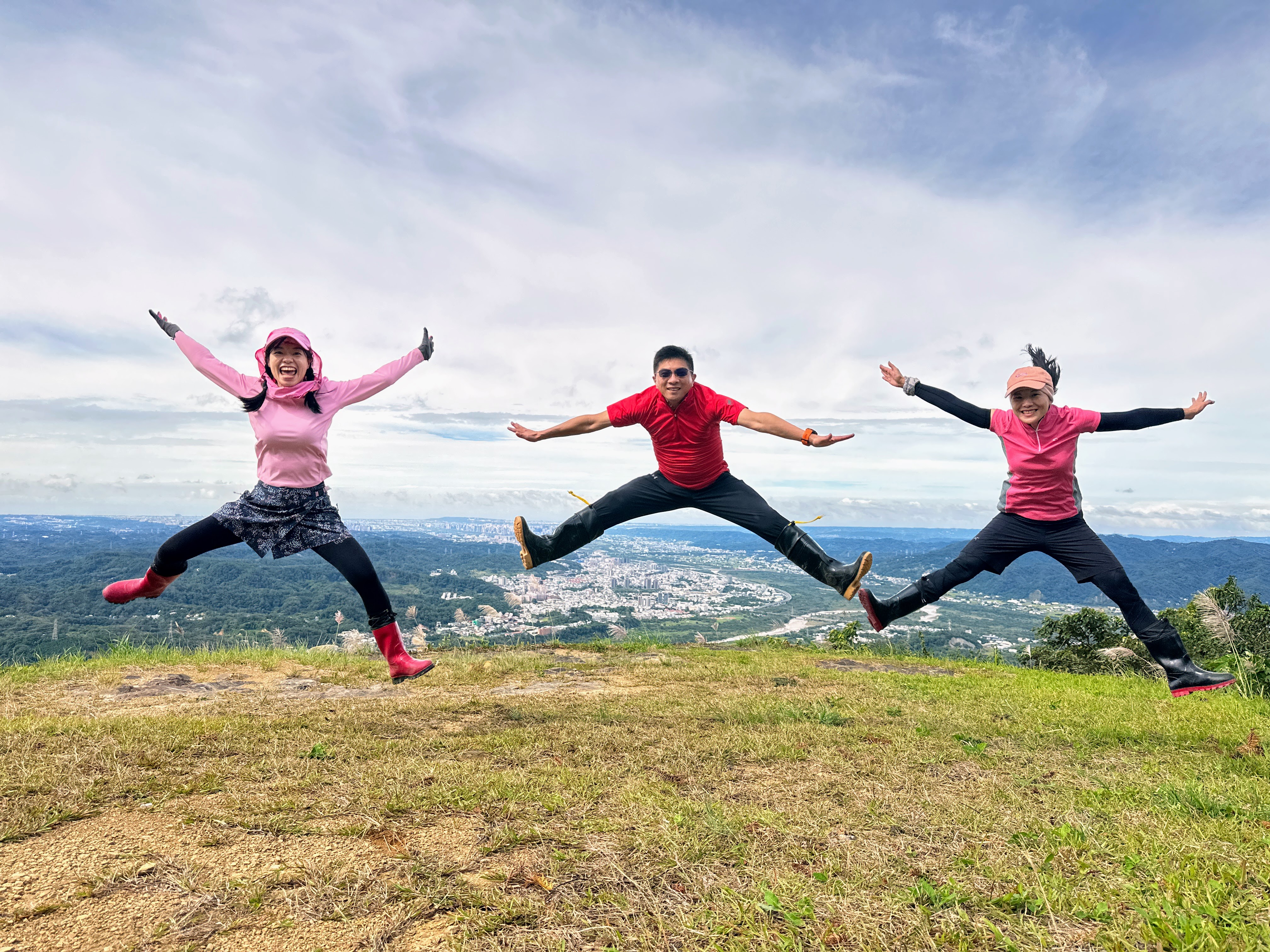 今天的行程,是由新竹縣橫山鄉樂善堂開始起登,行走大崎崠登山步道,沿著階梯步道一路陡上,在1.5K的距離裡陡上海拔450m的高度來到大山背山,這裡是一處展望很好的山頭,抵達後才發現實際上開車也可以上來。