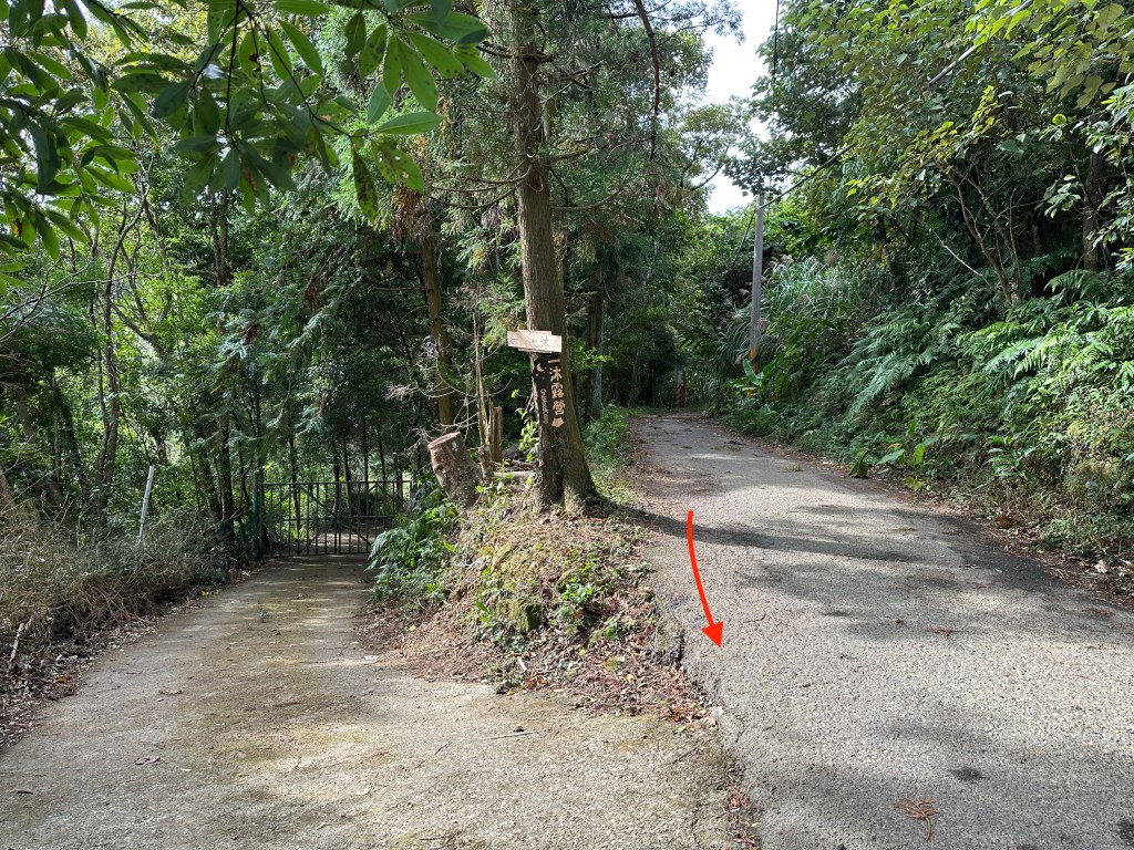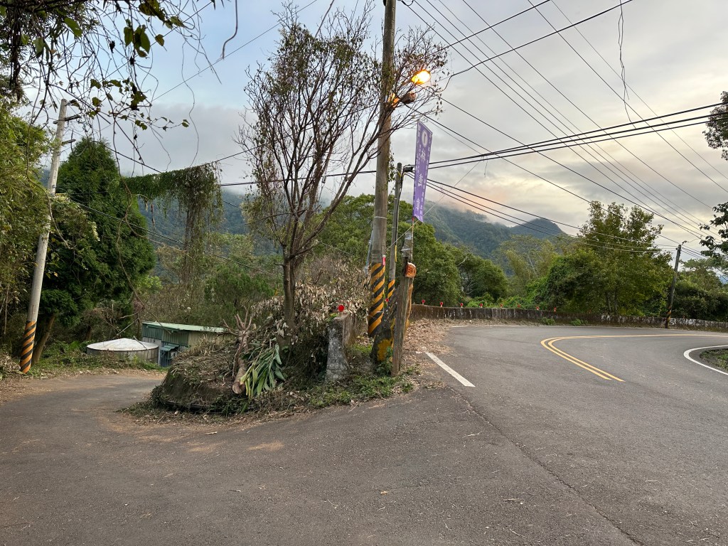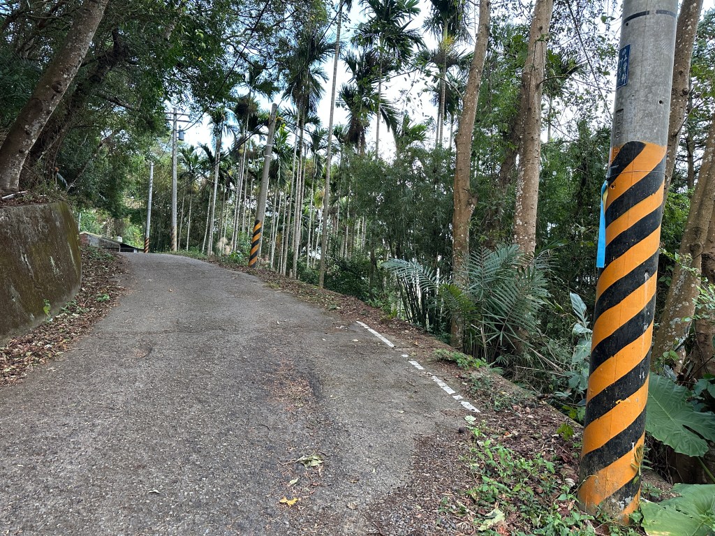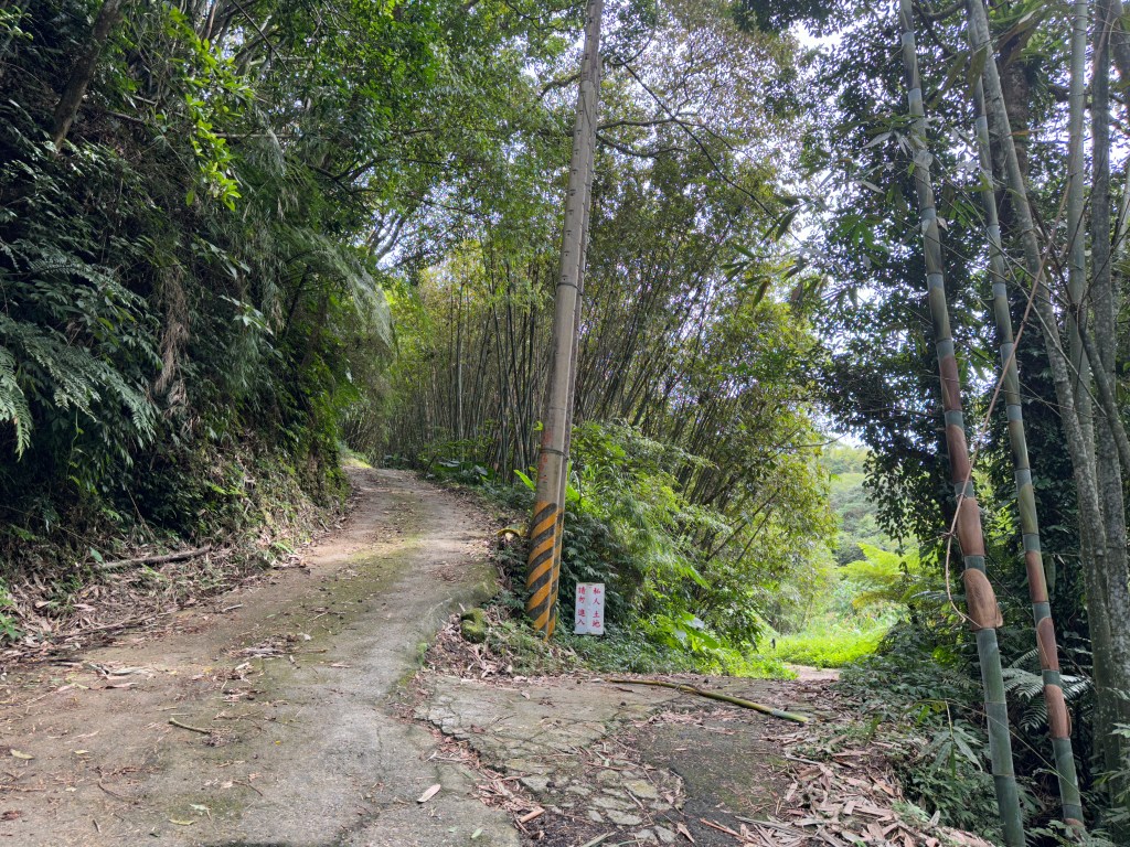 往水頭排山走,一離開毬子山陡下走200m就會接上寬大林道,林道右側還有一棟不小的民房,而且林道上有用鐵鍊拴上,應該是不想讓人們再繼續開車或騎車上來。接著一路由林道接上產業道路,看了離線地圖有兩條路可以陡上通往水頭排山的路線,其中一條的岔路比較近,但當我們走到岔路時發現岔路口掛著一個「私人土地」的紅色壓克力牌,因此我們也不好由此進入。