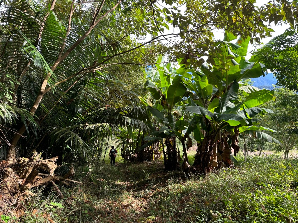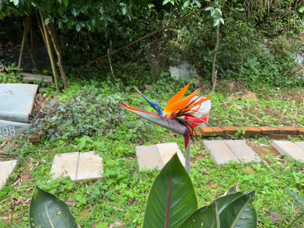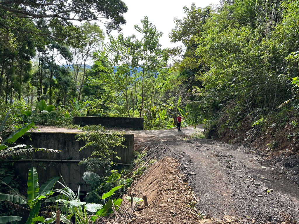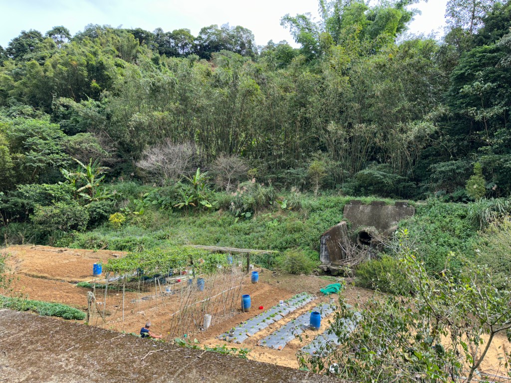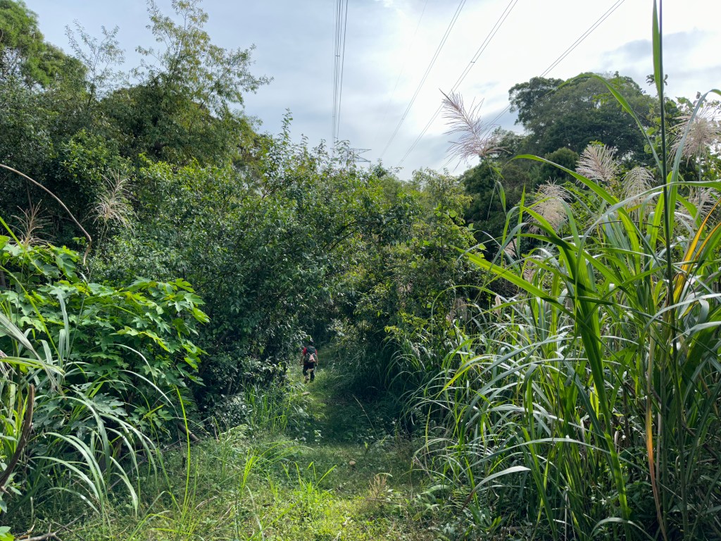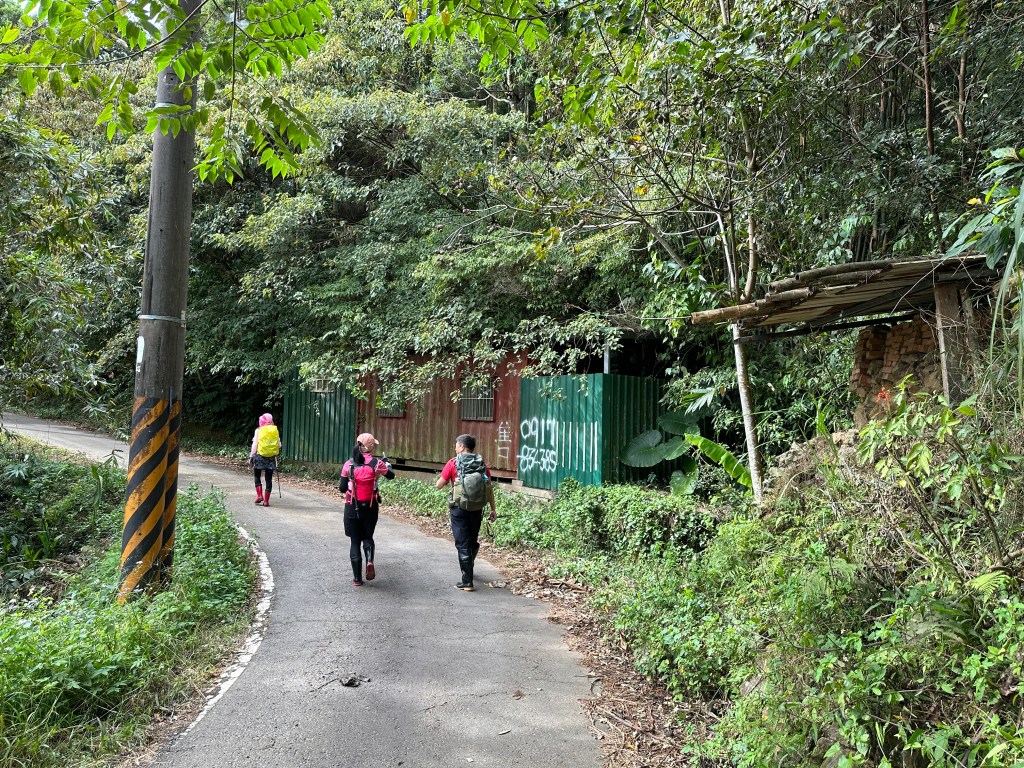 由薯園山陡下走500m的距離,接著就會接上產業道路,此時一下產業道路,就看到先下來的采庭與妙妙正在與一位路過的簡大哥正在閒聊,聊到我們這一天走的路線還蠻大圈的,簡大哥是住在這裡的退休居民,此時正在沿著產業道路運動走走。聊了一番後,我們與簡大哥互道再見,就緊接著要由產業道路走4.3K的距離到騎龍下山登山口。