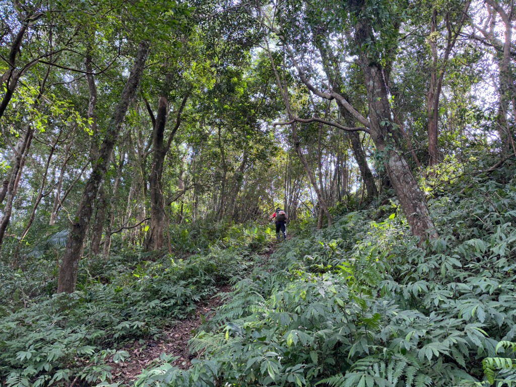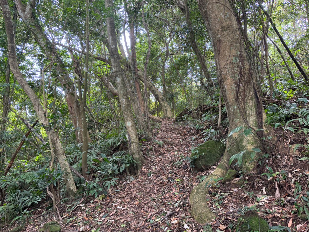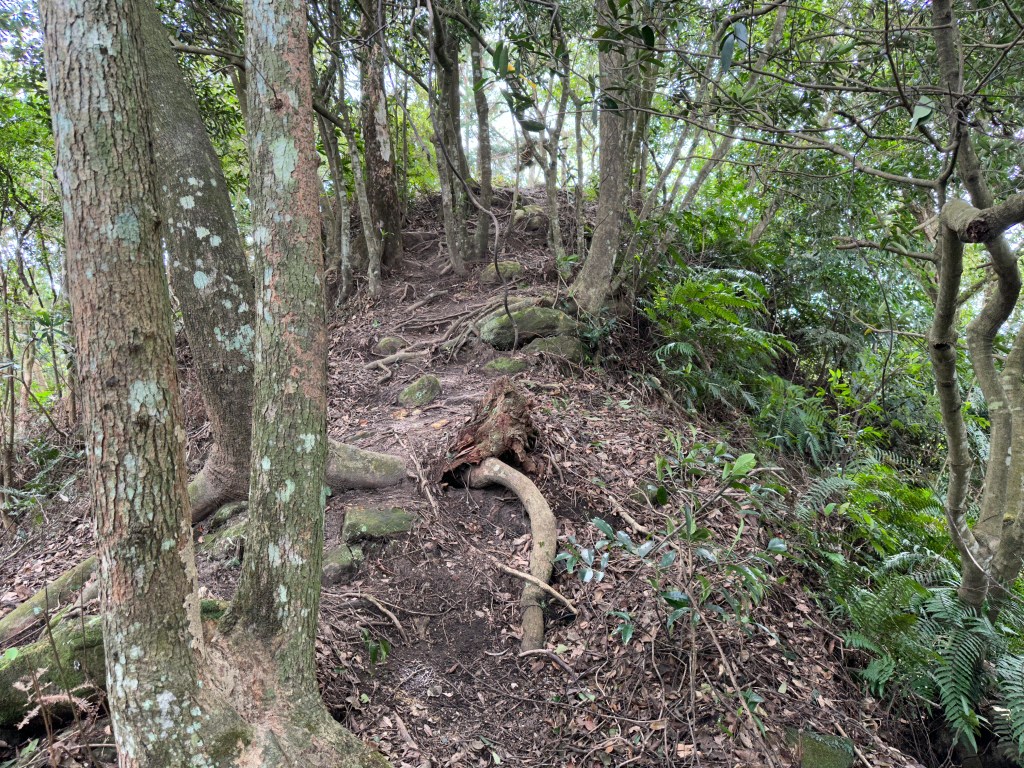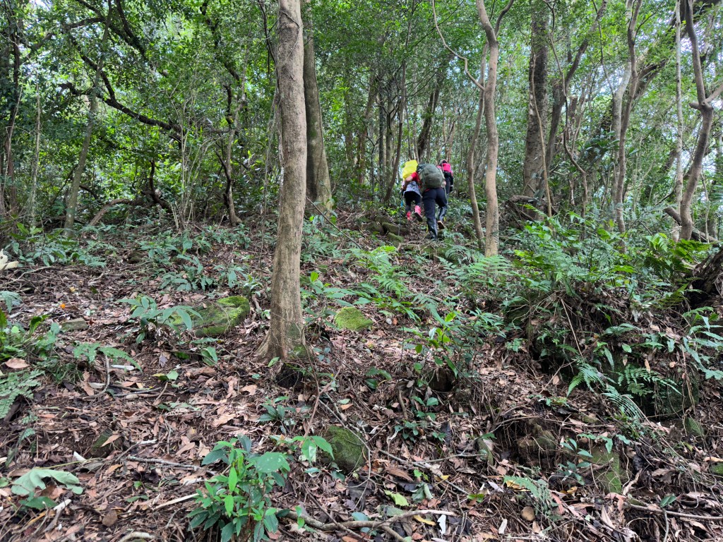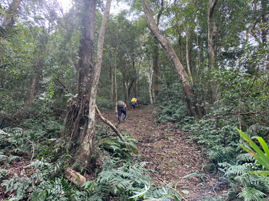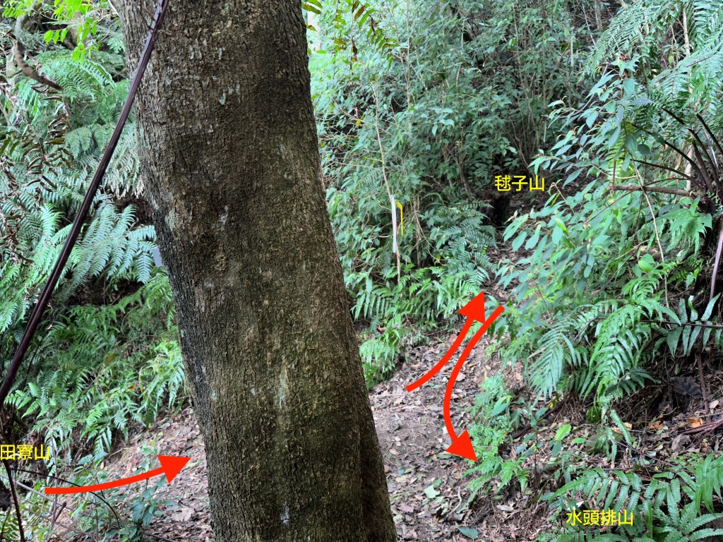 繼續沿著山徑走700m,一路上的山徑還算好走,會先抵達毬子山岔,由此岔陡上海拔高度為H22m距離為50m,就這一段特別的陡峭。毬子山山頭也是無展望,回程陡下這50m的距離回到毬子山岔,接著就要由毬子山岔往水頭排山走。