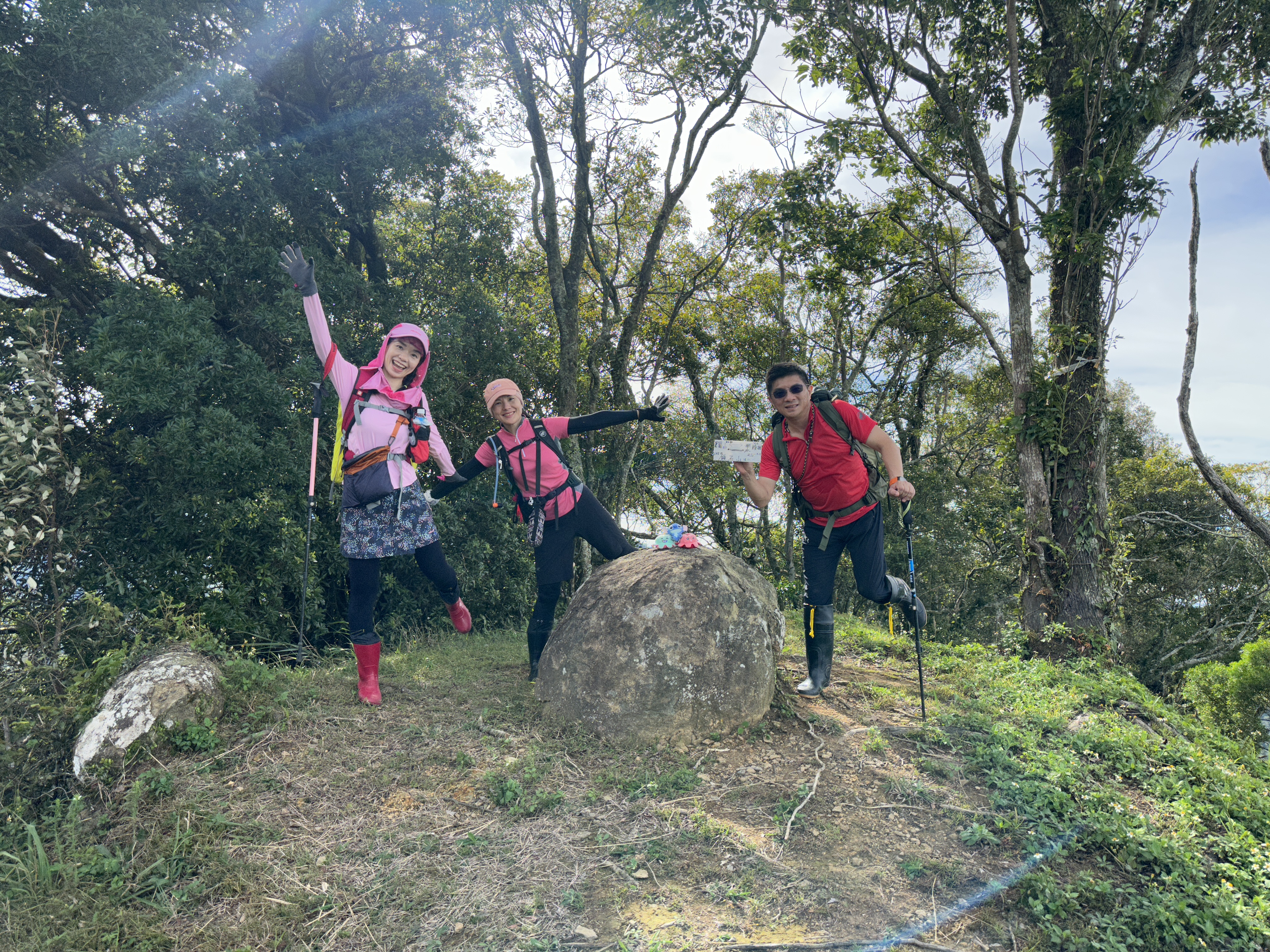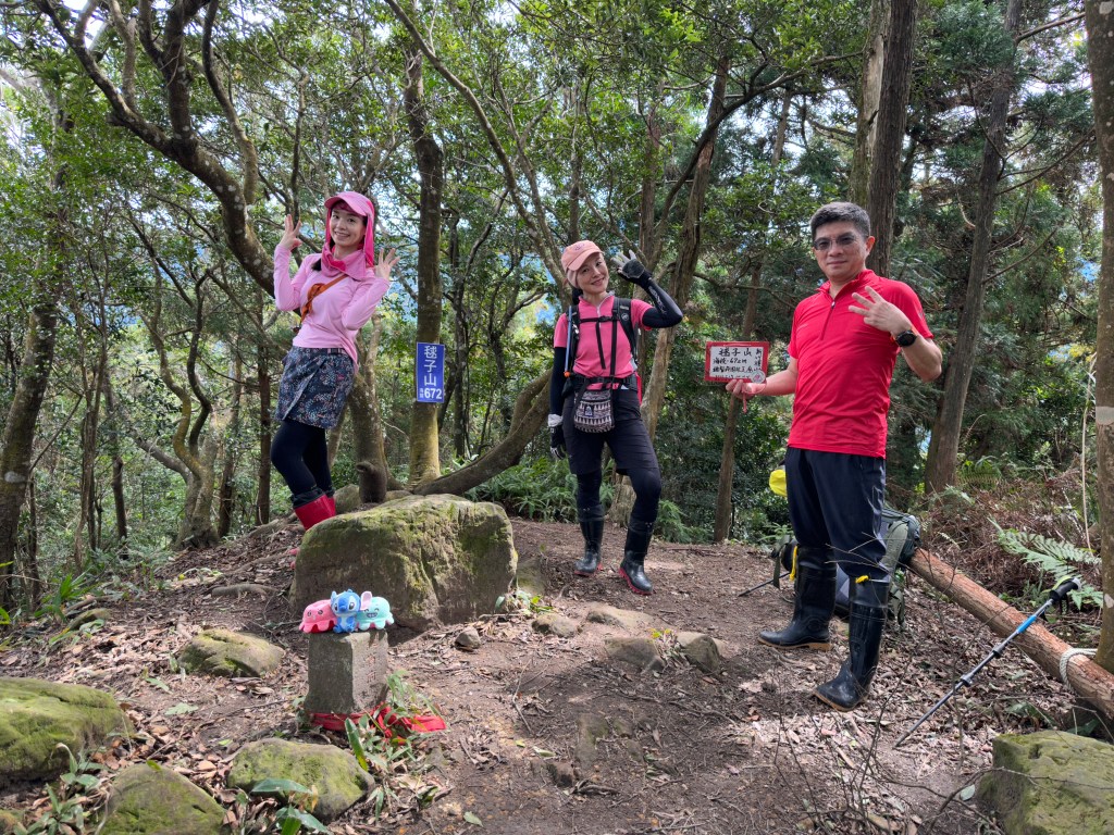 幻燈片:妙妙、采庭、我(Gosen),在鎮石山,今天的第五峰。
