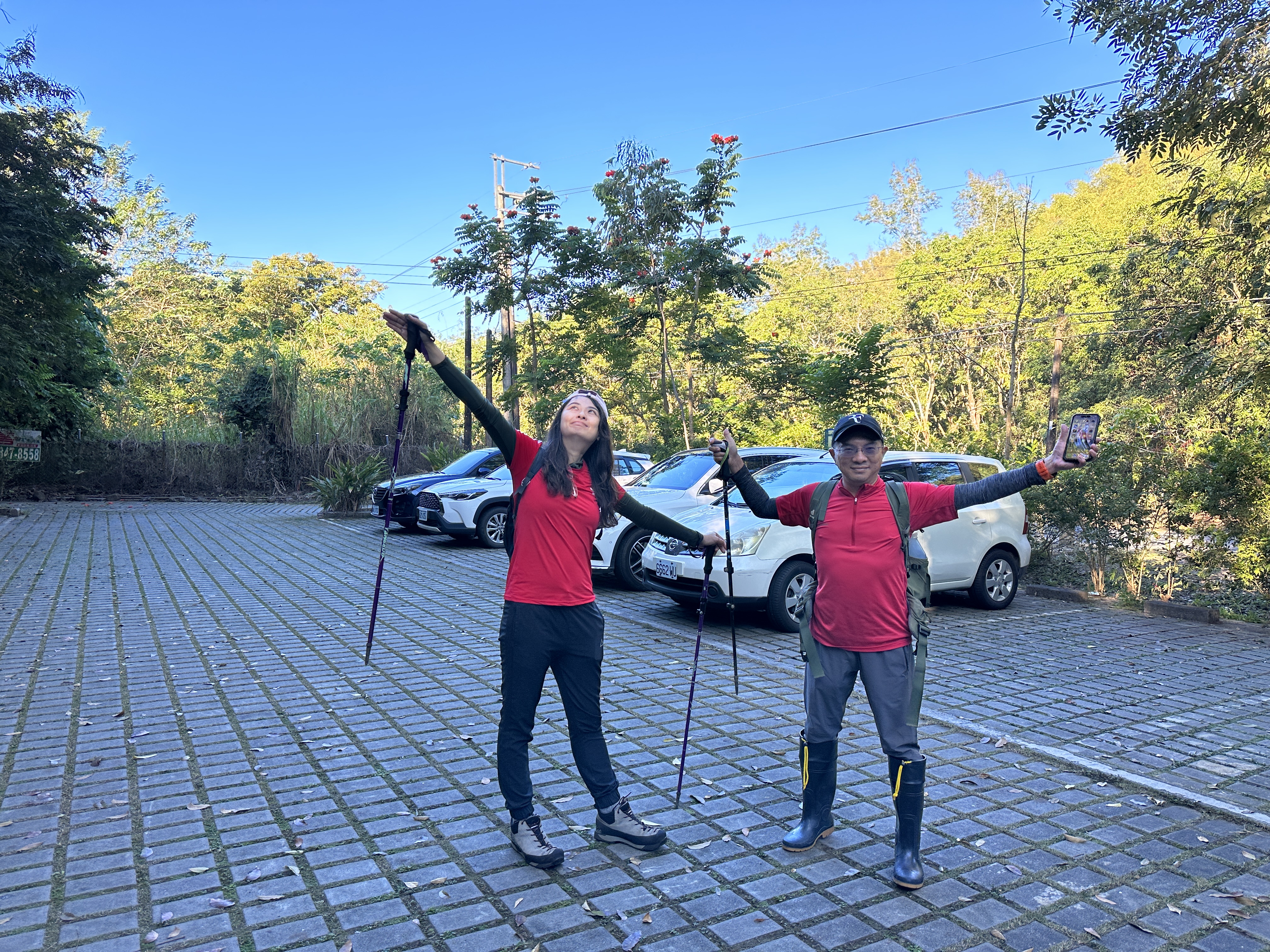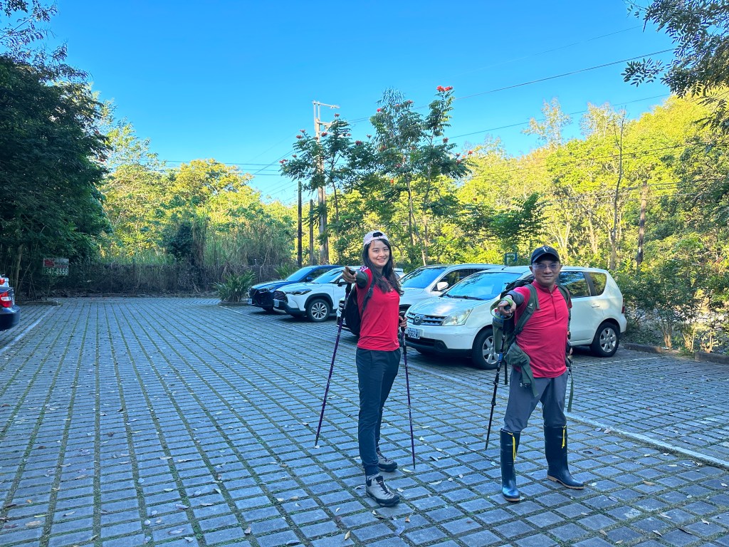 幻燈片:在雙溪樹木園停車場,準備起登。08:32