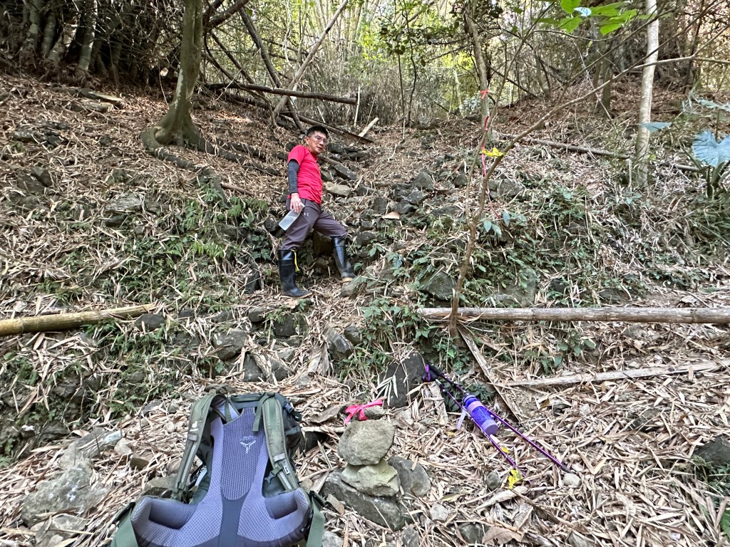影片:拉繩陡上前有一個保安林界水泥樁。