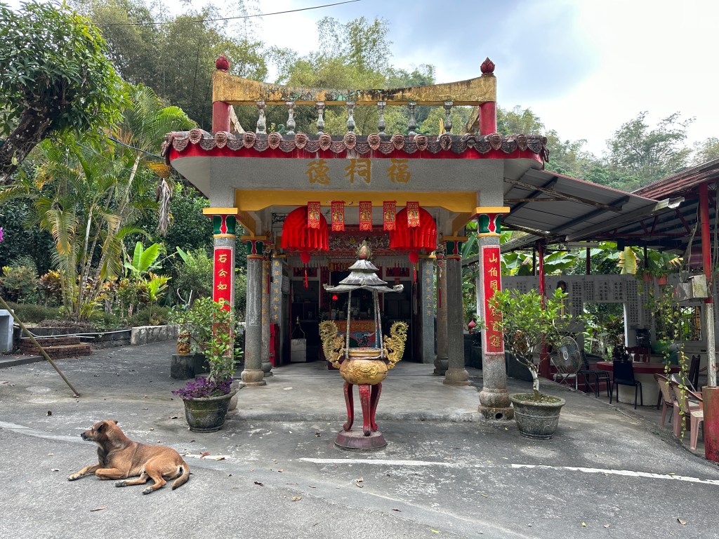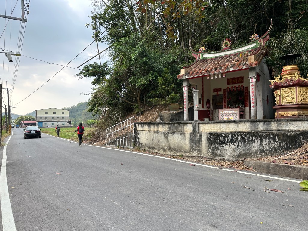 上圖:水流東伯公的廟在此,如果由此三岔路口往左走,會直接接上茶頂山登山口,這樣要再去茶頂山,就要小繞一圈。如果由此三岔路口往右走,只要800m就可到茶頂山岔,會近很多。