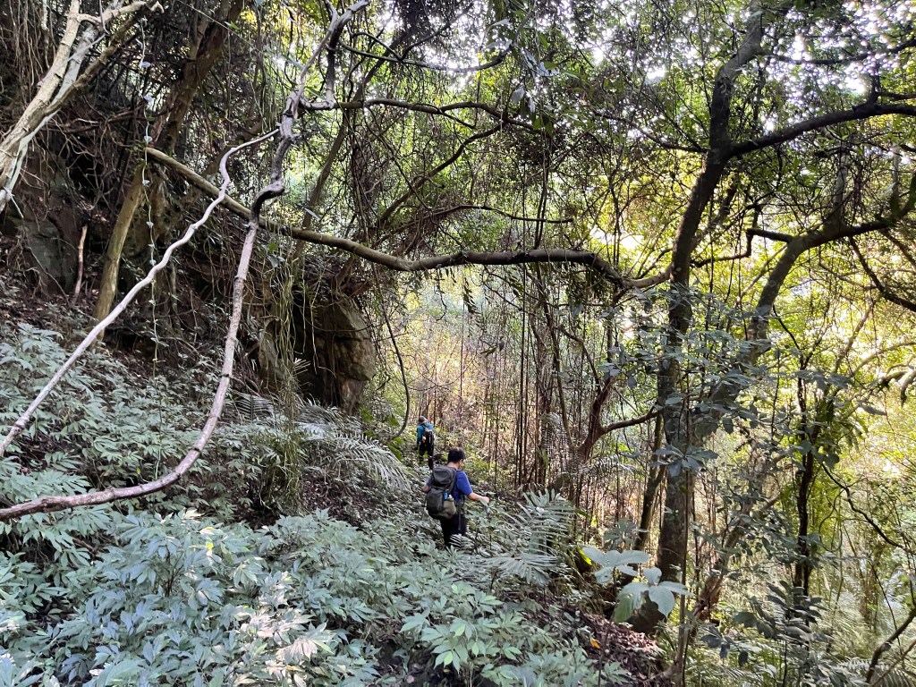 我們在2022.10.26也走過類似的路線,當時我們由花果山茶舖的左側,走了一條離線地圖上有路徑,但實際走來卻非常原始的路線,也就是在等高線圖上的C點一直到‼️的這一條路徑。我將此段的路徑照片與影片貼於下方給朋友們參考,不建議走這一條路線!