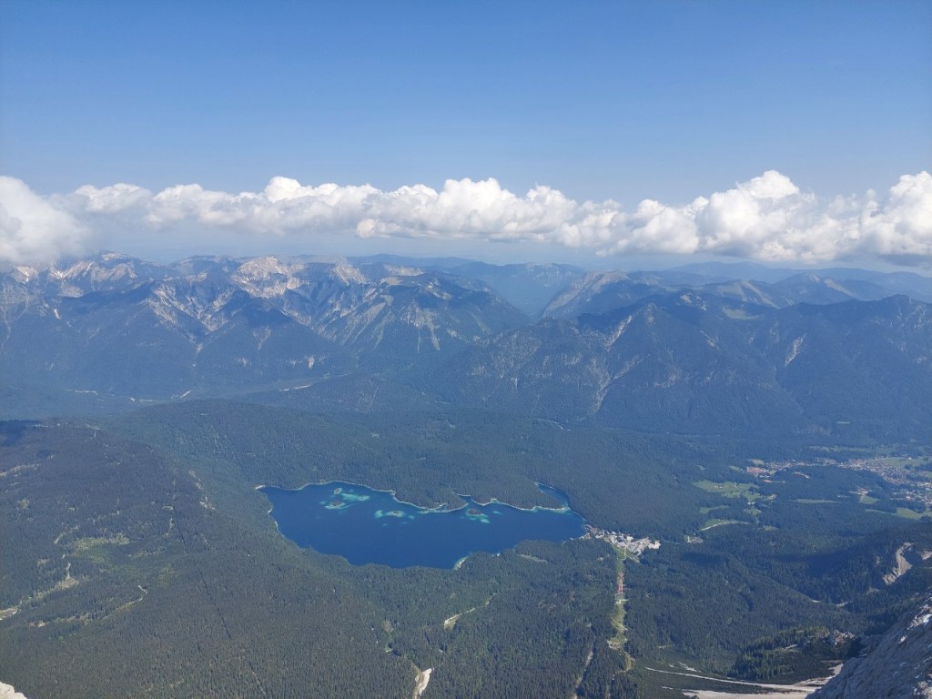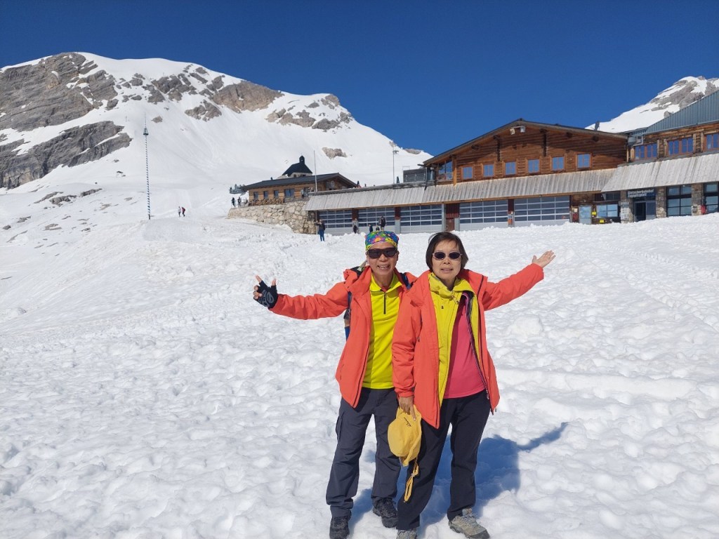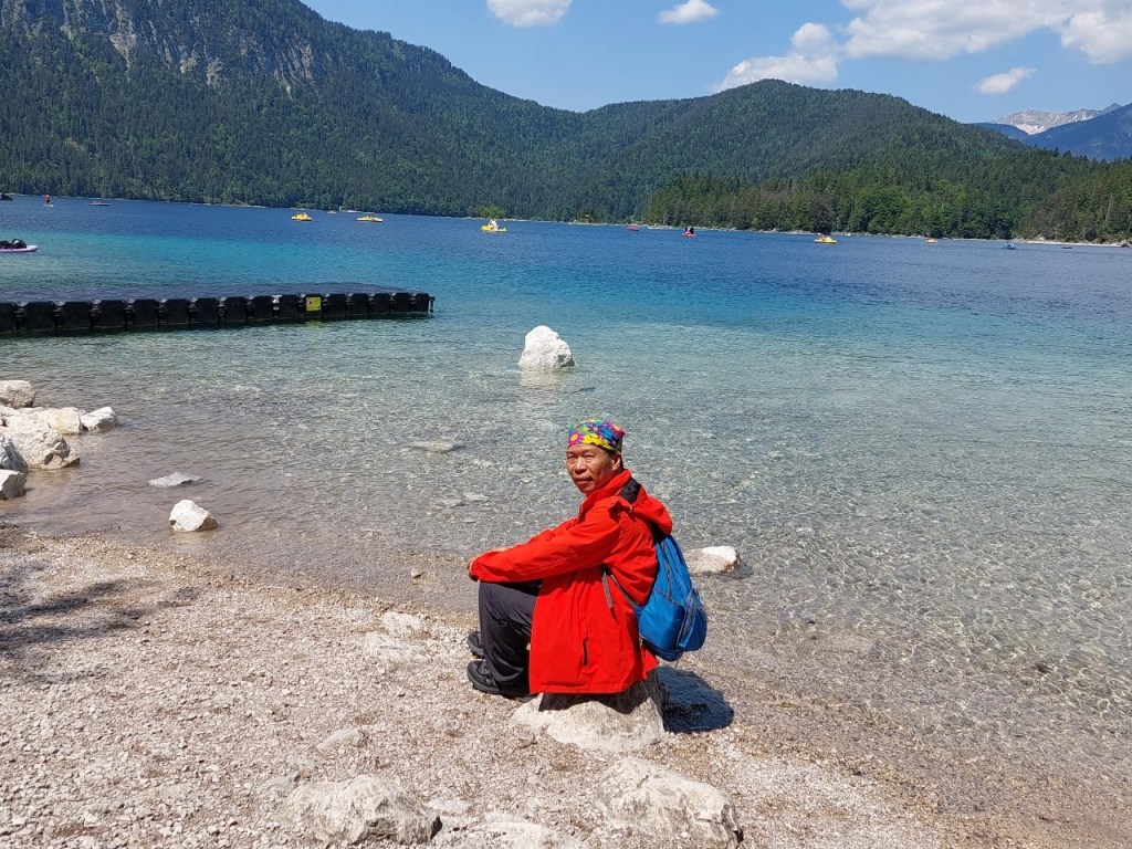 6月7日早上在奧地利因斯布魯克車站搭6:35火車到Garmisch車站,下車後過地下道到Bayerische Zugspitzbahn Mountain Railway登山纜車站買往楚格峰票卡,一張要68歐元,先搭9:50火車到Zugspitze Bahnhof – Grainau格賴瑙站搭齒軌火車到冰川平台,欣賞白雪山景後再搭纜車上德國最高峰楚格峰→ 下山則搭另一方向纜車往→艾伯湖 Eibsee,散步到湖邊欣賞湖景後→搭齒軌火車到格賴瑙站換火車回Garmisch車站。