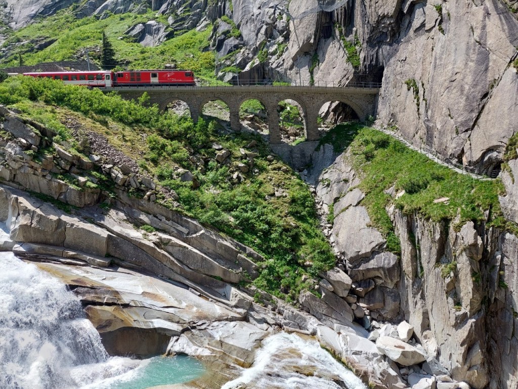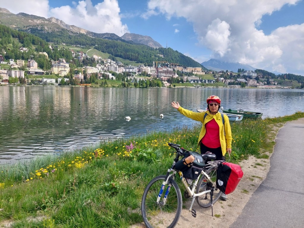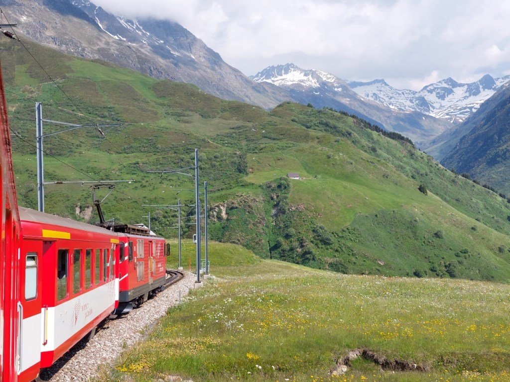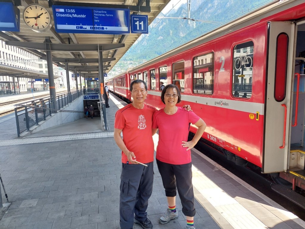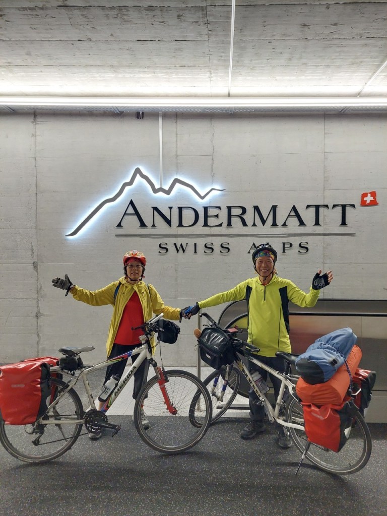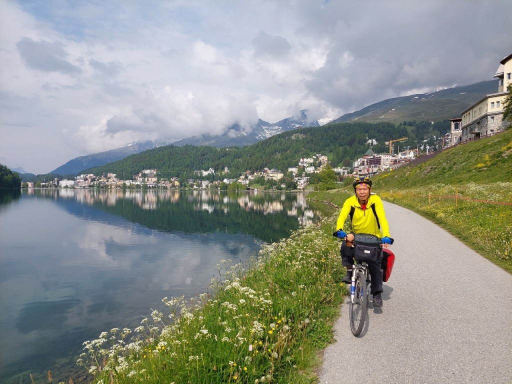 6月10日早上騎單車到Chur庫爾車站搭6:58往St.Moritz聖莫里兹9:01。然後遶湖一圈後到St.Moritz聖莫里兹車站搭11:02回Chur庫爾13:04。騎回寄放行李的公寓拿行李再到Chur庫爾車站搭13:55到Disentis迪森蒂斯車站16:11,3分鐘轉車時間換搭R45車往Andermatt安德馬特,沿途風景秀麗,經過最高點隘口Oberalppass(萊茵河源頭要開始騎的車站)景色壯闊,於17:22到達安德馬特車站,下車後騎到預計明天11日星期日要露營的營地看看。
