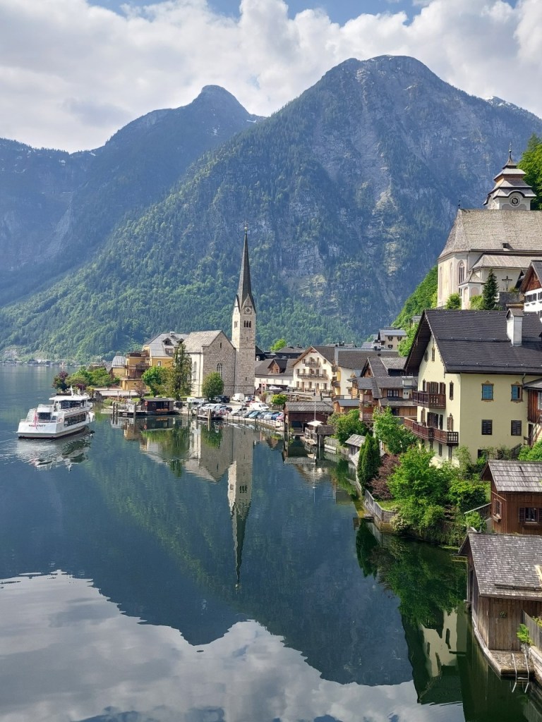 5月27日早上8:20左右出門,騎14公里多就到Hallstatter See哈爾施塔特湖→哈爾施塔特展望點,在最美的經典畫面景點欣賞湖光山色拍拍照→再沿湖區往上特勞恩方向騎了一段後往回騎→小鎮逛逛→騎回到早上休息的湖邊公園(EINKEHR STUB餐廳),→15點從湖邊休息點騎回到巴德伊舍Bad Ischi的Konditorei Zauner咖啡店約16:00享受喝咖啡吃蛋糕,然後再到處逛逛,17:43回旅館。