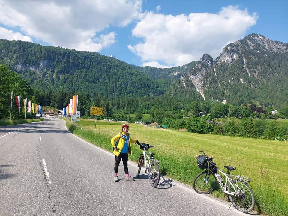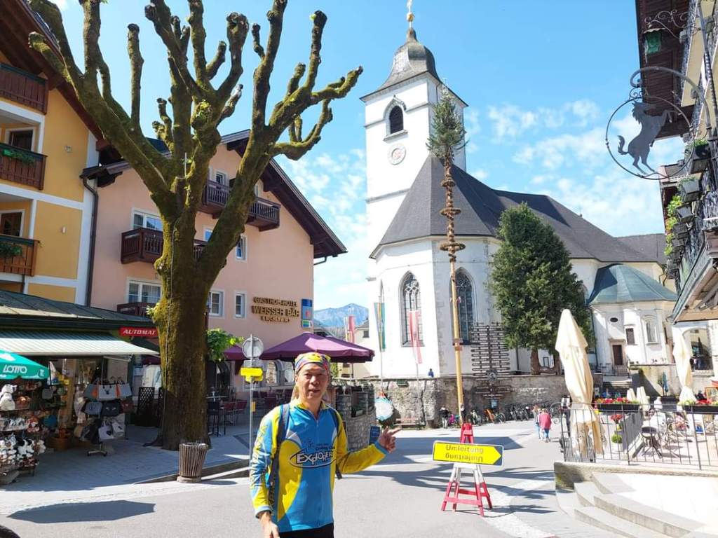 5月26日早上10點從阿特湖營地出發→16公里到Mondsee蒙德湖 Kreuzstein景點 →8公里到聖吉爾根小鎮→ 沿著沃爾夫岡湖9.2公里到附近營地找了3家都說額滿沒空位→只好網路Booking訂17公里外的Bad Ischl巴德伊舍小鎮的Sandwirt旅館,下午約4:30到達。