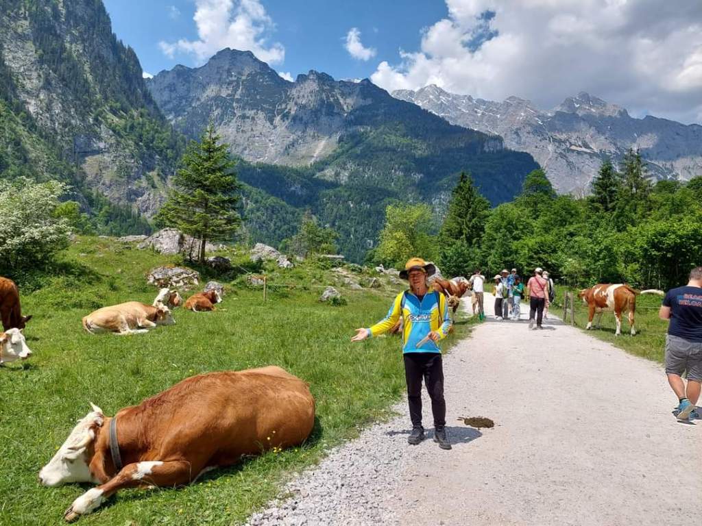 6月3日早上8:40青旅出發→8.9公里到藍紹教堂→3.6公里到Hintersee辛特湖→環湖一圈騎魔法森林Zauberwald 再騎回貝希特斯加登Haugtbahnhof巴士站搭838公車約15分鐘到Dokumentarion站下車→跟著英國來在薩爾斯堡工作的女生協助去買上鷹巢的專車一人要30.8歐元(有青旅給的免費公車卡有優惠,優惠後2人57.2歐元)→因為人潮眾多排了一些時間搭上13:07→13:34上到鷹巢→山頂居高臨下俯瞰德國阿爾卑斯山脈跟奧地利薩爾斯堡峰巒起伏的壯觀景色→回程搭上15:35專車到巴士站搭15:55回到貝希特斯加登→換搭16:15的841公車→ 國王湖,逛逛湖邊步道後再趕上17:30公車回貝希特斯加登,再騎單車回青旅。