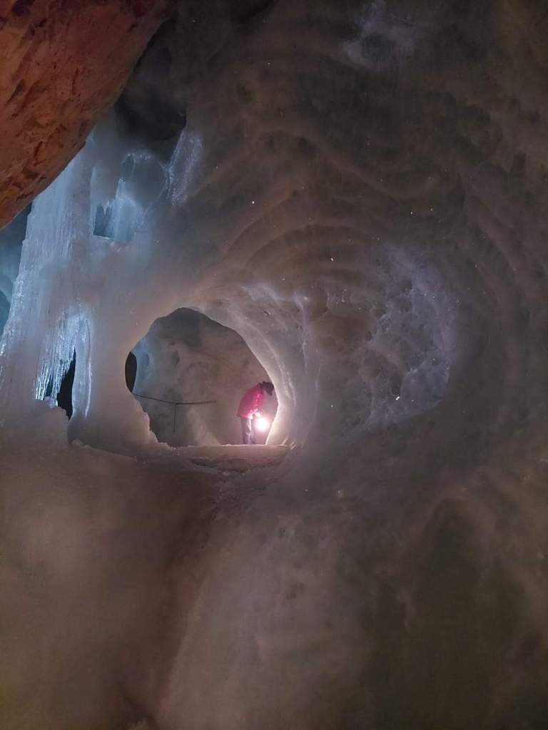 6月1日早上薩爾斯堡車站搭8:16 火車到維爾芬werfen,然後搭接駁巴士(1人來回票8.5歐)到Eisriesenwelt Trailhead售票處,買纜車票及進入冰洞票(1人39歐)後要走20分鐘到登山纜車處Eisriesenwelt搭纜車上升到Bergstation Seilbahn Eisriesenwelt只要3分鐘,下車後還要走20分鐘才到世界最大的冰洞入口。冰洞裡長年零度進入要帶齊全副武裝手套外套,來回約70分鐘。沿途景色壯觀,真的是不虛此行。回程到維爾芬werfen搭14:10火車回薩爾斯堡車站。回青旅拿行李單車後,15:49開始往沿著薩爾察赫河騎往→ 馬克特謝倫貝格→約18:06到Camping-Resort Allweglehen營地。