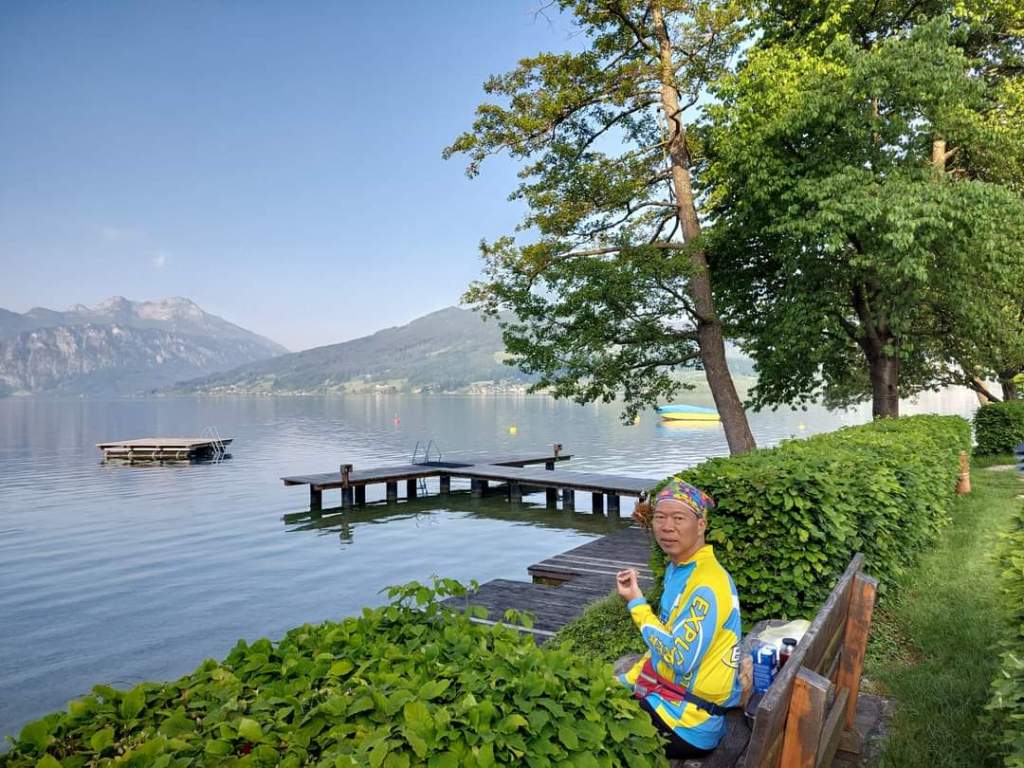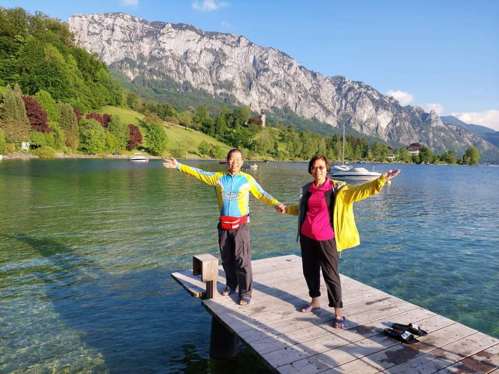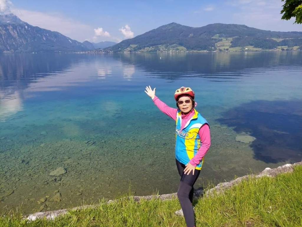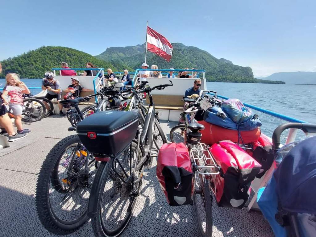 #原來是規劃昨晚住Hallstatt,今天騎往戈紹Gosau,但房價太貴,所以昨晚續住巴德伊舍旅館,今天又騎回沃爾夫岡湖,但選擇不一樣的方式,搭一段渡輪也是一種美好體驗。