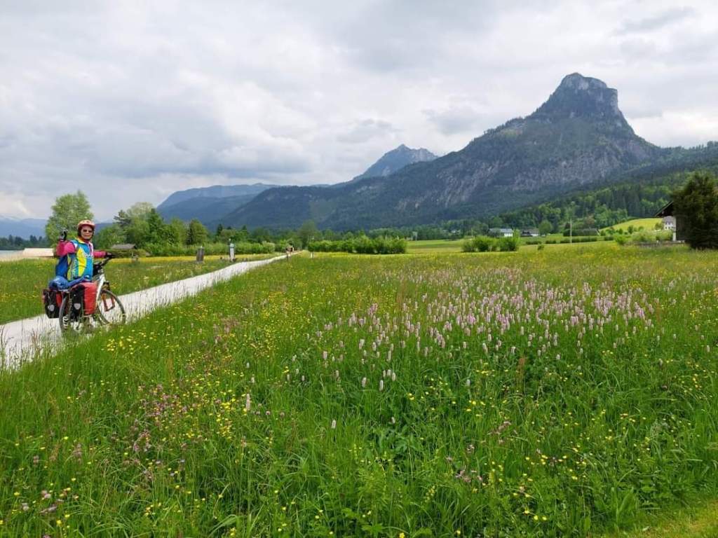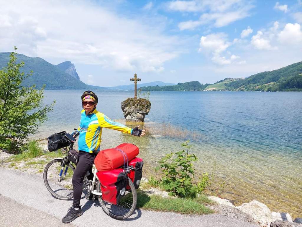 5月28日早上8:00從巴德伊舍旅館出發→先沿著Ischl河岸騎一小段後→再沿著公路騎到沃爾夫岡湖→Wolfgangsee Schiffahrt沃爾夫岡湖邊渡輪碼頭搭11:05渡輪→11:45到St.Gilgen聖吉爾根碼頭→吃個午餐補充體力,12:15繼續上路→Mondsee蒙德湖湖畔的Lake view景點12:50看湖景休息一下再騎31公里到薩爾斯堡露營地。
