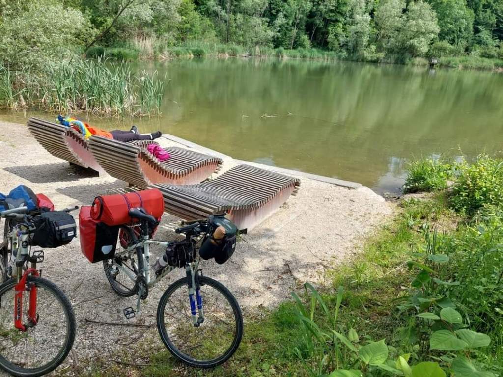 5月25日早上6點從林茲紮營地出發→沿著特勞恩河騎→三角小島Aussicht→沿著阿格爾河→12:30到阿特南小鎮China Restaurant Sensei午餐→29公里後到阿特湖Attersee岸邊的Camping Grabner露營地點是17:10。